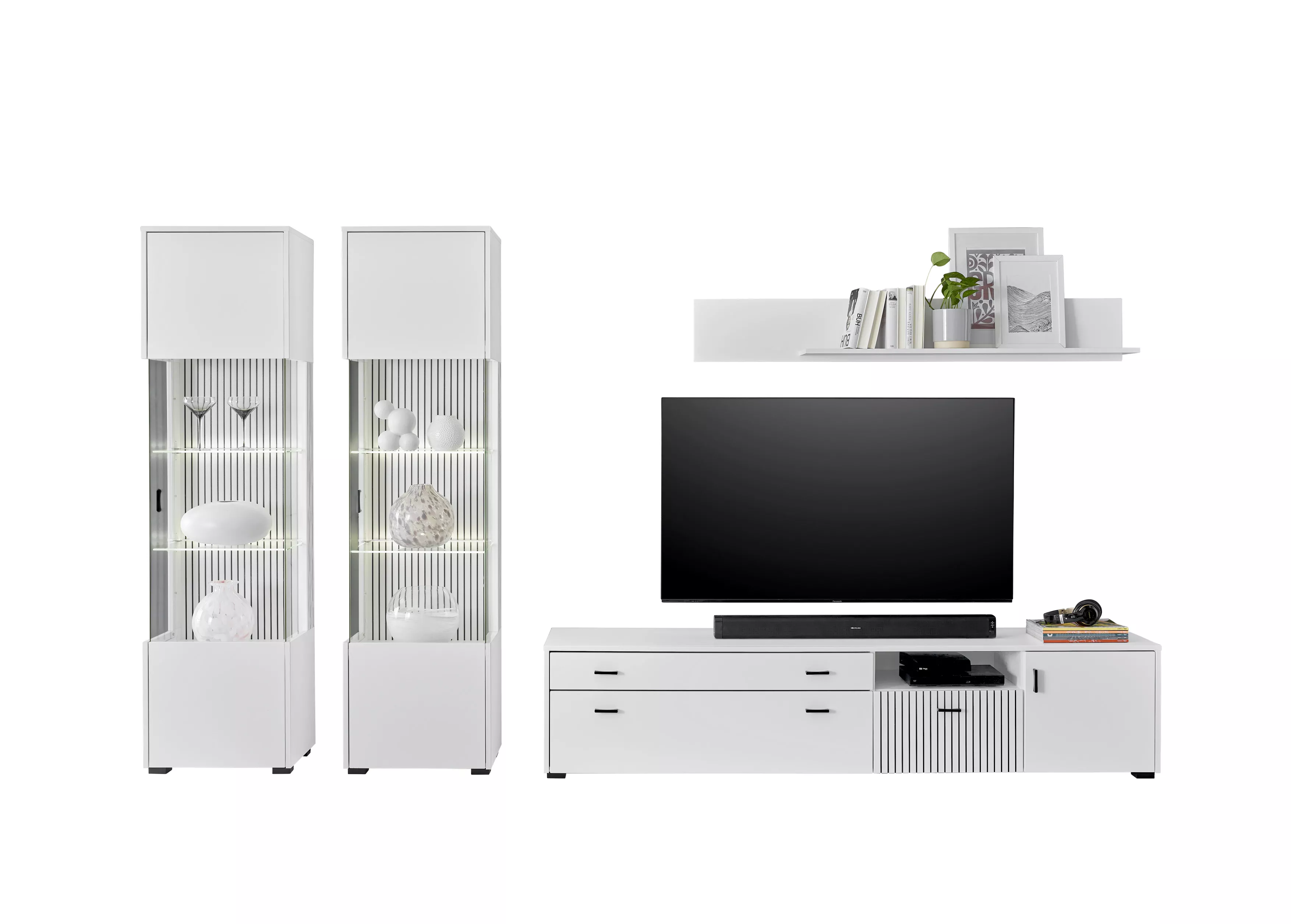 1 Lowboard mit 2 Türen, 1 Klappe, 1 Schubkasten und ein Gerätefach