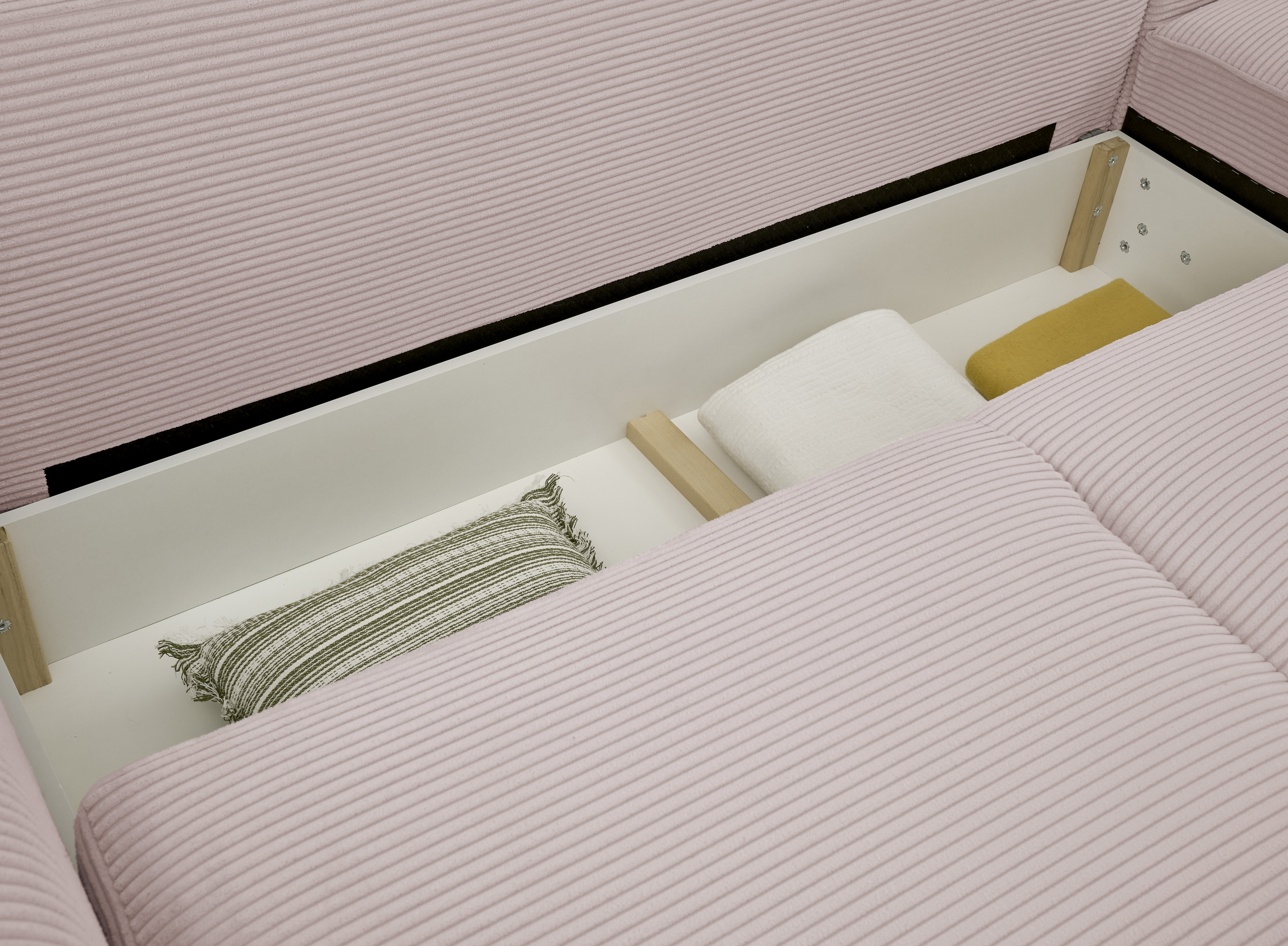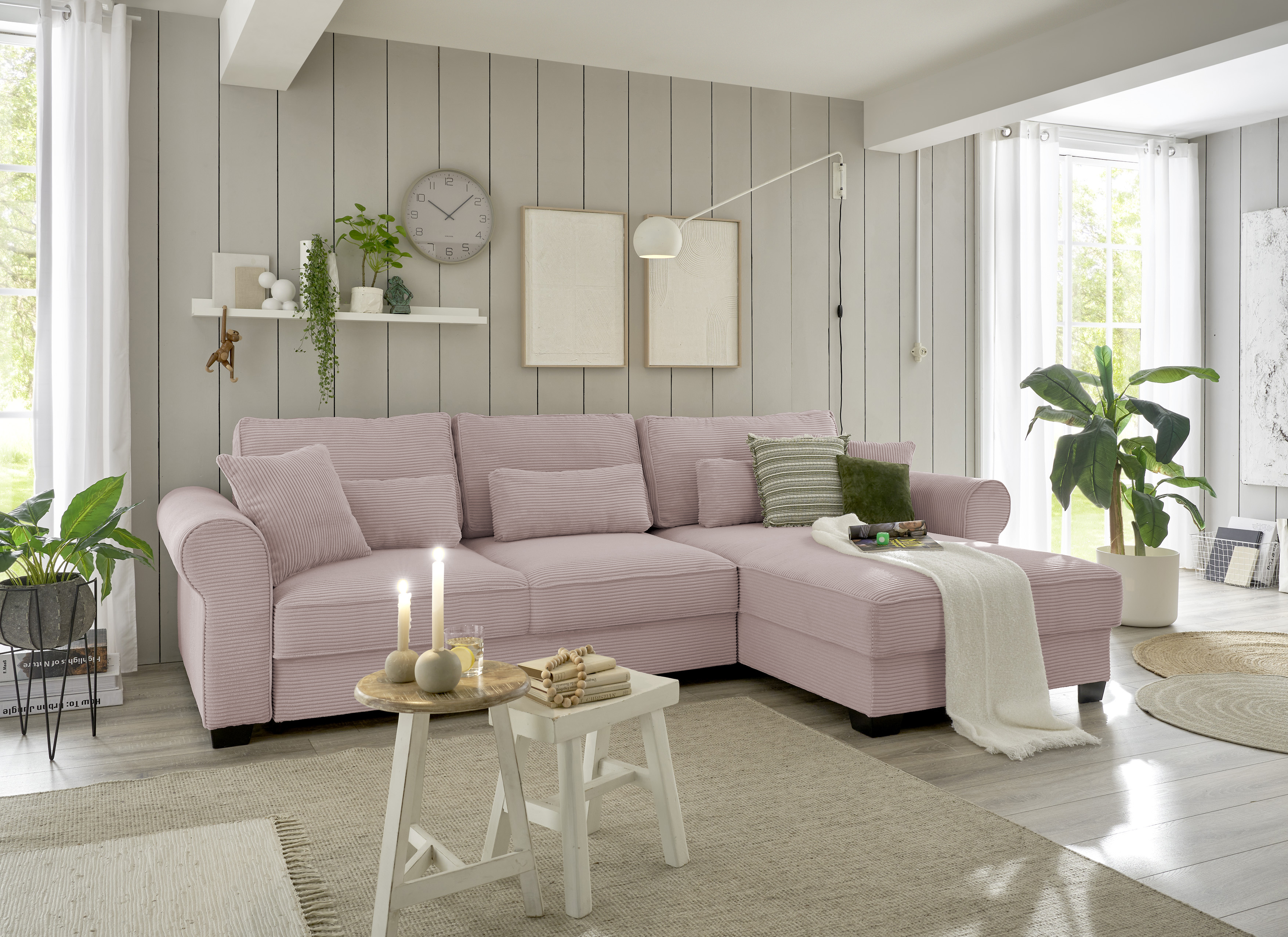 Ausstattung Polster: | Ottomane rechts links wählbar, Rücken echt, inkl. Bettkasten, inkl. Kissen |