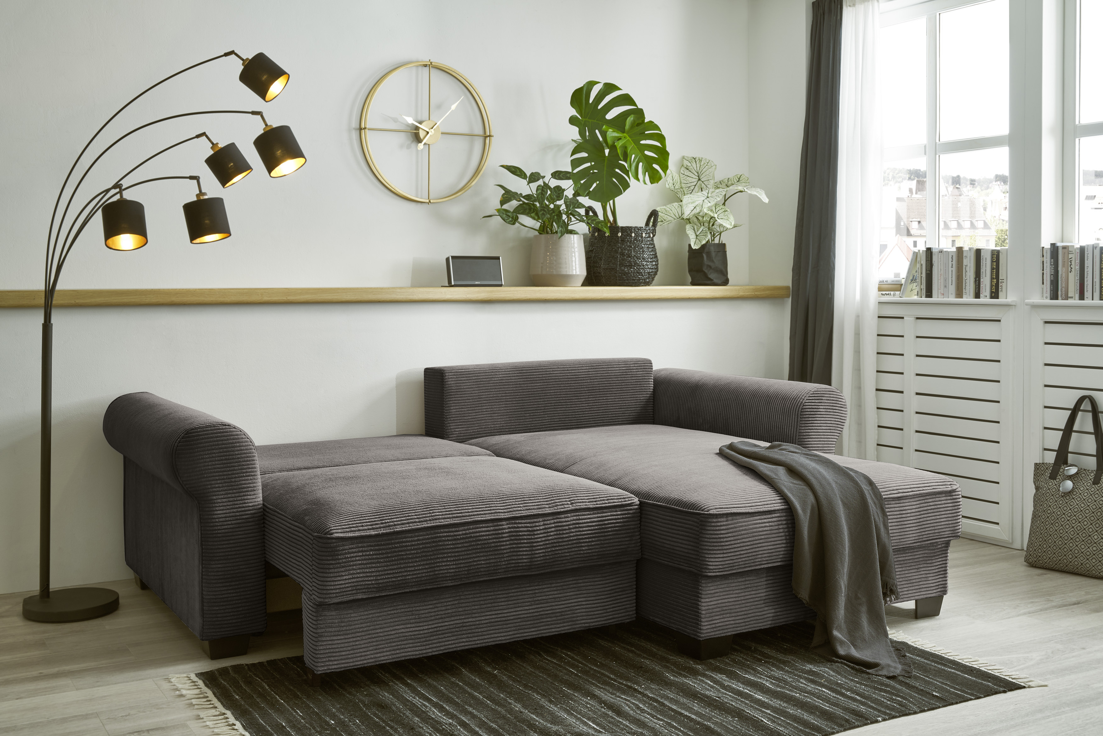 | Ausstattung Polster: | Ottomane rechts links wählbar, Rücken echt, inkl. Bettkasten, inkl. Kissen | ||