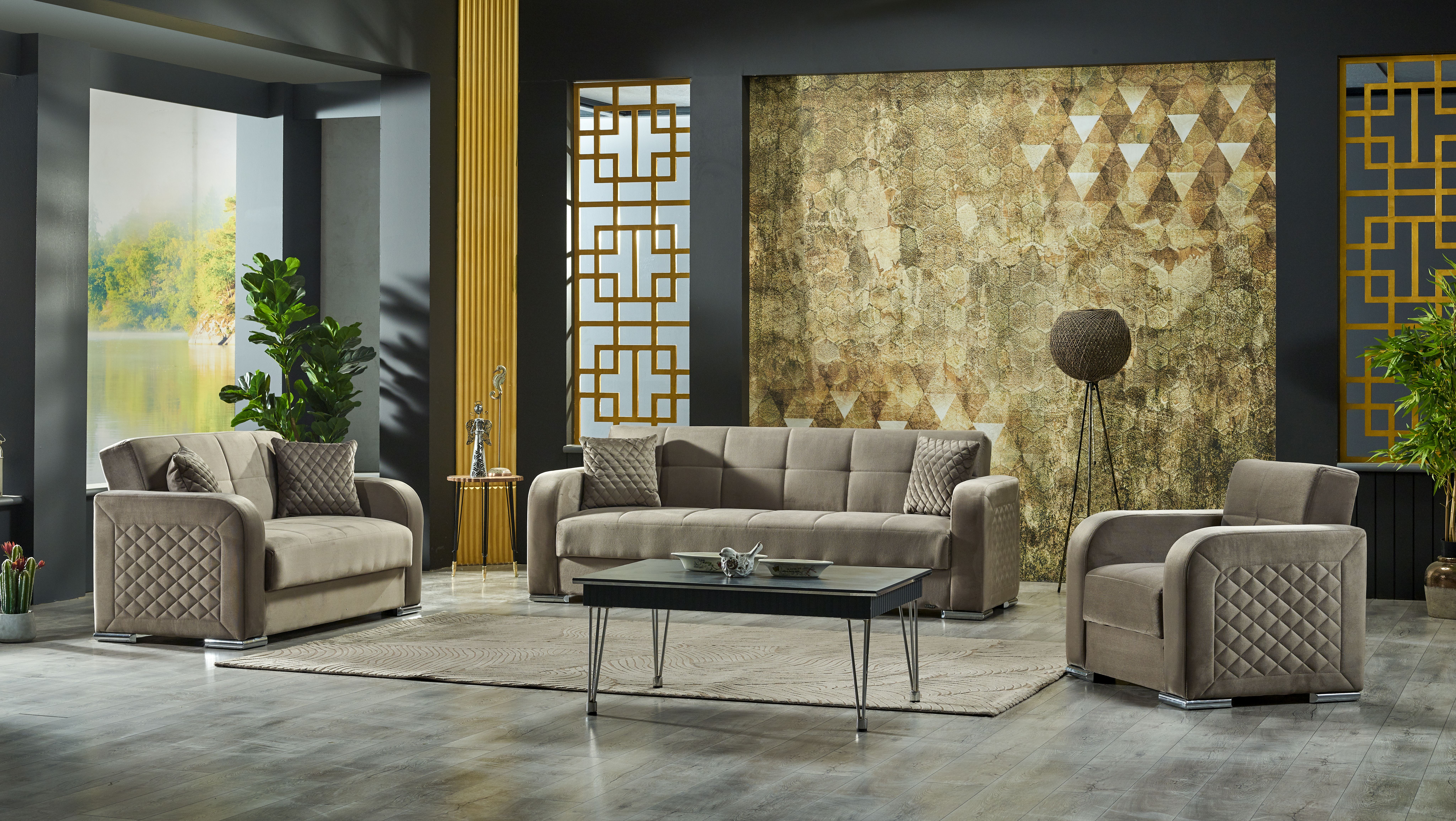 ohne Dekoration / 3-Sitzer / Sessel / Couchtisch