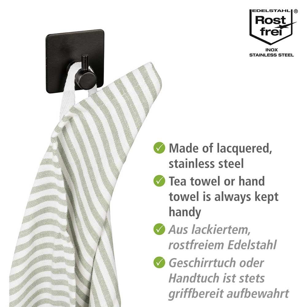 Schnelle und einfache Montage: Der Handtuchhalter ermöglicht eine Befestigung an der Wand ohne Schrauben, Bohren oder Dübeln. Einfach die Schutzfolie abziehen und die Haken mit Hilfe des doppelseitigen Klebebandes anbringen. Die Klebehaken sind sofort einsatzbereit und können bei Nichtbenutzung ohne unschöne Bohrlöcher zu hinterlassen, entfernt werden.