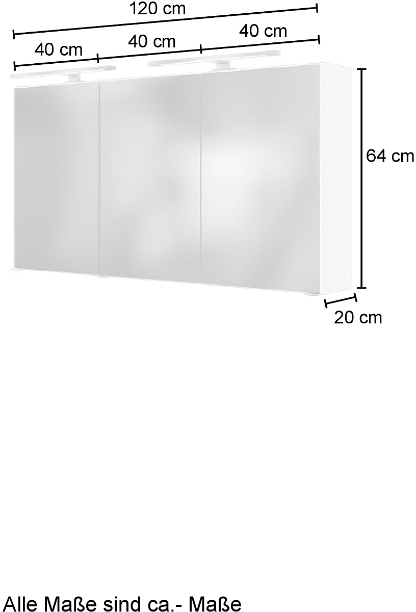 | Spiegelschrank (ohne Aufbauleuchte) | 120 | 64 | 20 |
