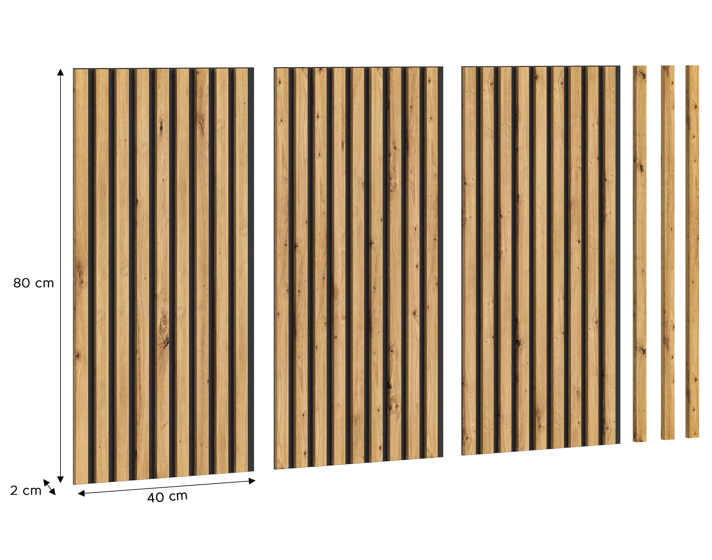 - Design/Stil: Das Akustikpaneel 3er Set in Anthrazit und Artisan Eiche Nachbildung präsentiert sich mit einem modernen und ansprechenden Design, das durch die Kombination von verschiedenen Farben und Texturen einen interessanten visuellen Effekt erzeugt und sich nahtlos in verschiedene Wohnbereiche einfügt.