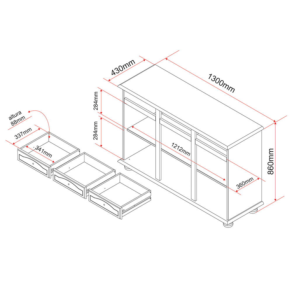 Sie bieten praktischen Stauraum und sorgen gleichzeitig für ein aufgeräumtes Ambiente. Dank ihrer durchdachten Konstruktion helfen sie, Utensilien ordentlich zu verstauen, ohne sie offen präsentieren zu müssen. Das Abaco Sideboard überzeugt mit seiner hochwertigen Verarbeitung und einem zeitlosen Design. Drei geräumige Schubladen auf langlebigen Metallschienen sowie drei Türen bieten reichlich Platz für Ihre Gegenstände.