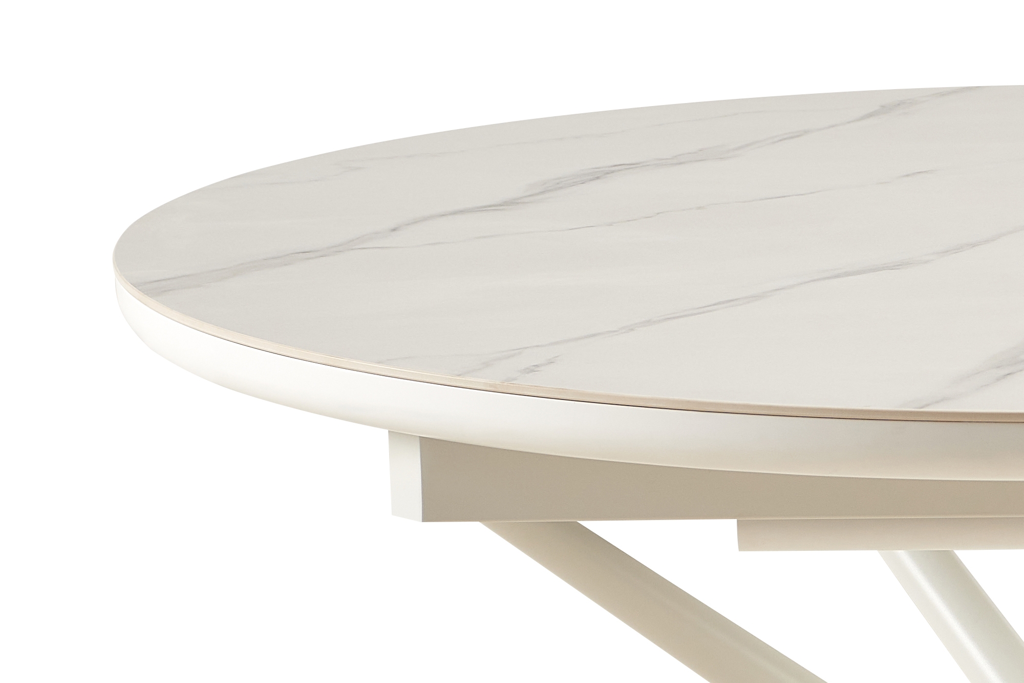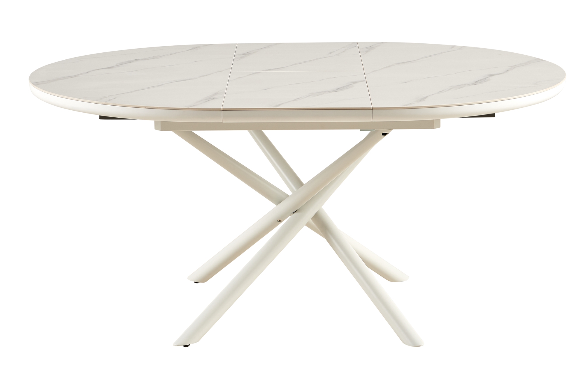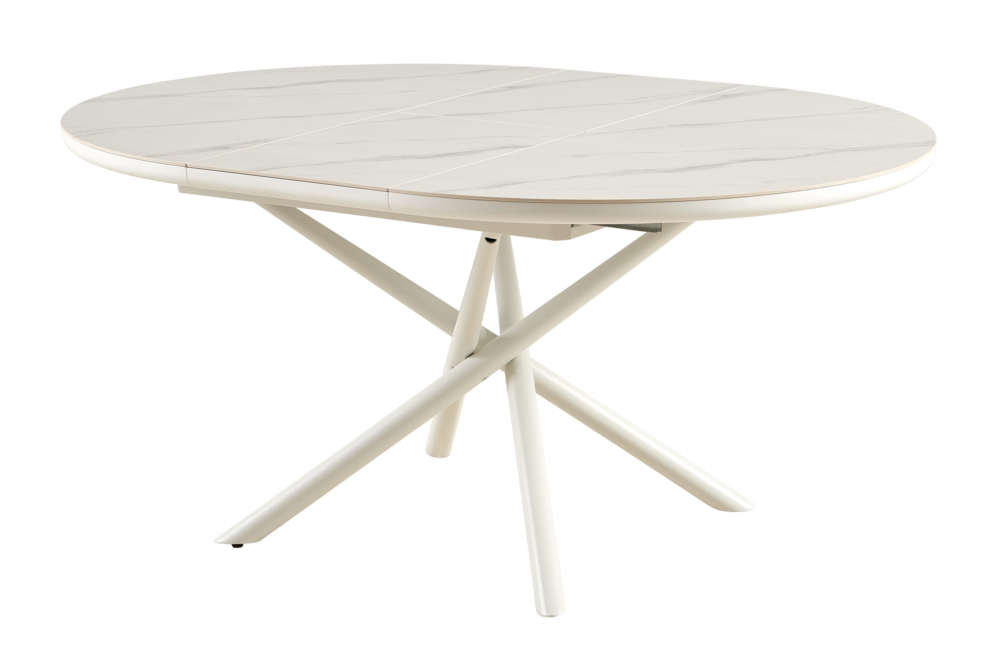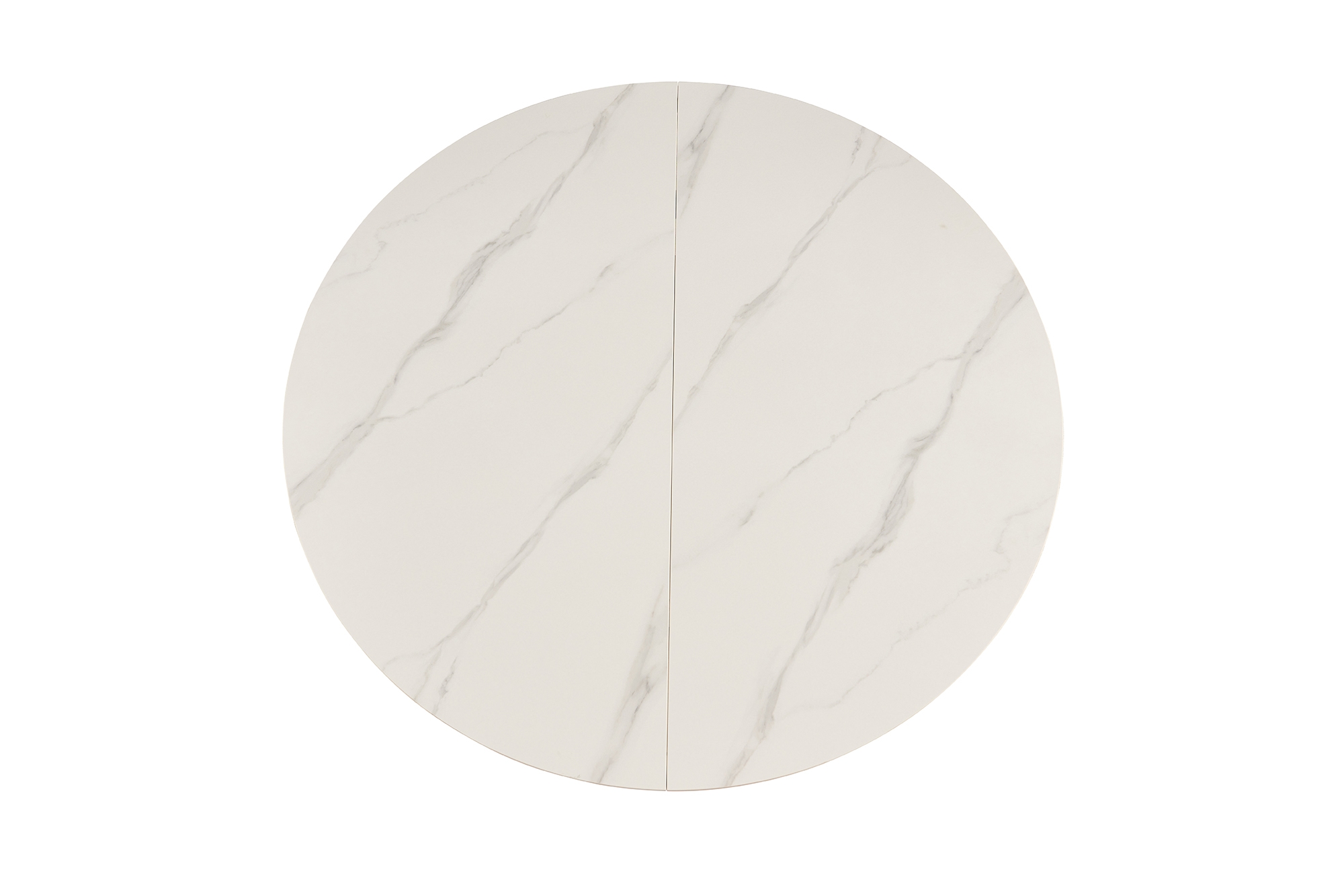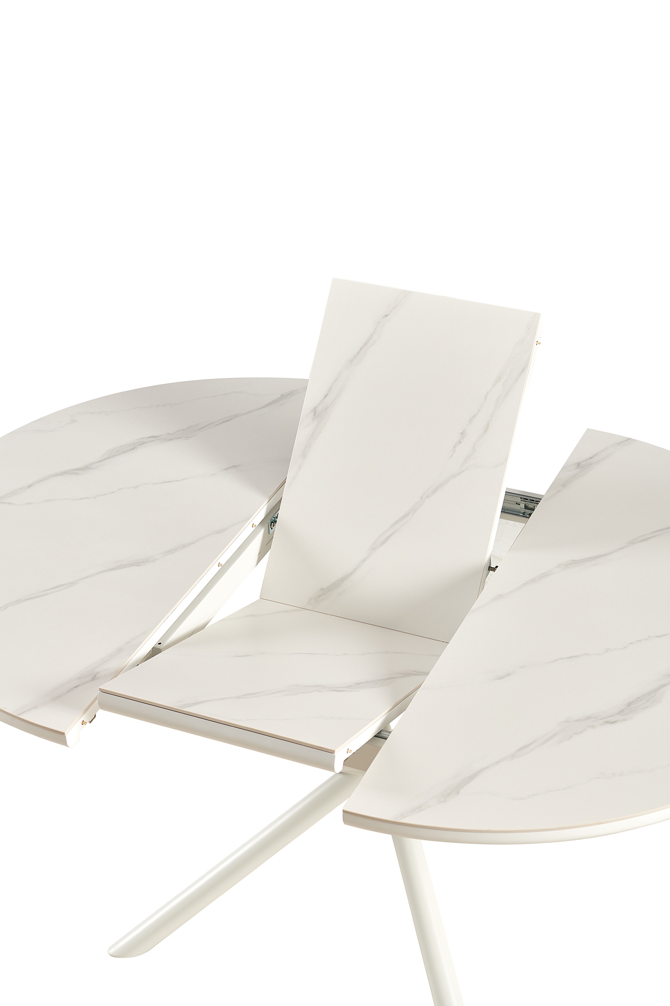 Top-modernes Design trifft auf praktischen Nutzen. Dieser Esstisch mit Auszugsfunktion ist nicht nur optisch ein Hingucker, in wenigen Handgriffen wird der Tisch auch problemlos vergrößert. Ob Familienfeste, Überraschungsgäste oder gesellige Runden mit Freunden - Der Tisch lässt sich durch die beiden Einlegeplatten spielend leicht auf eine Größe von 160x120 cm erweitern. Die Oberfläche in reduzierter Marmoroptik ist zeitlos chic und harmoniert optimal mit dem sternförmigen Design-Gestell. Die matte Optik ist das I-Tüpfelchen des modernen Designs. Ohne die Einlegeplatten hat der Tisch einen Durchmesser von 120 cm. Runde Tische sparen vor allem in kleineren Esszimmern Platz und Ermöglichen gemütliche Gespräche beim Beisammensitzen.