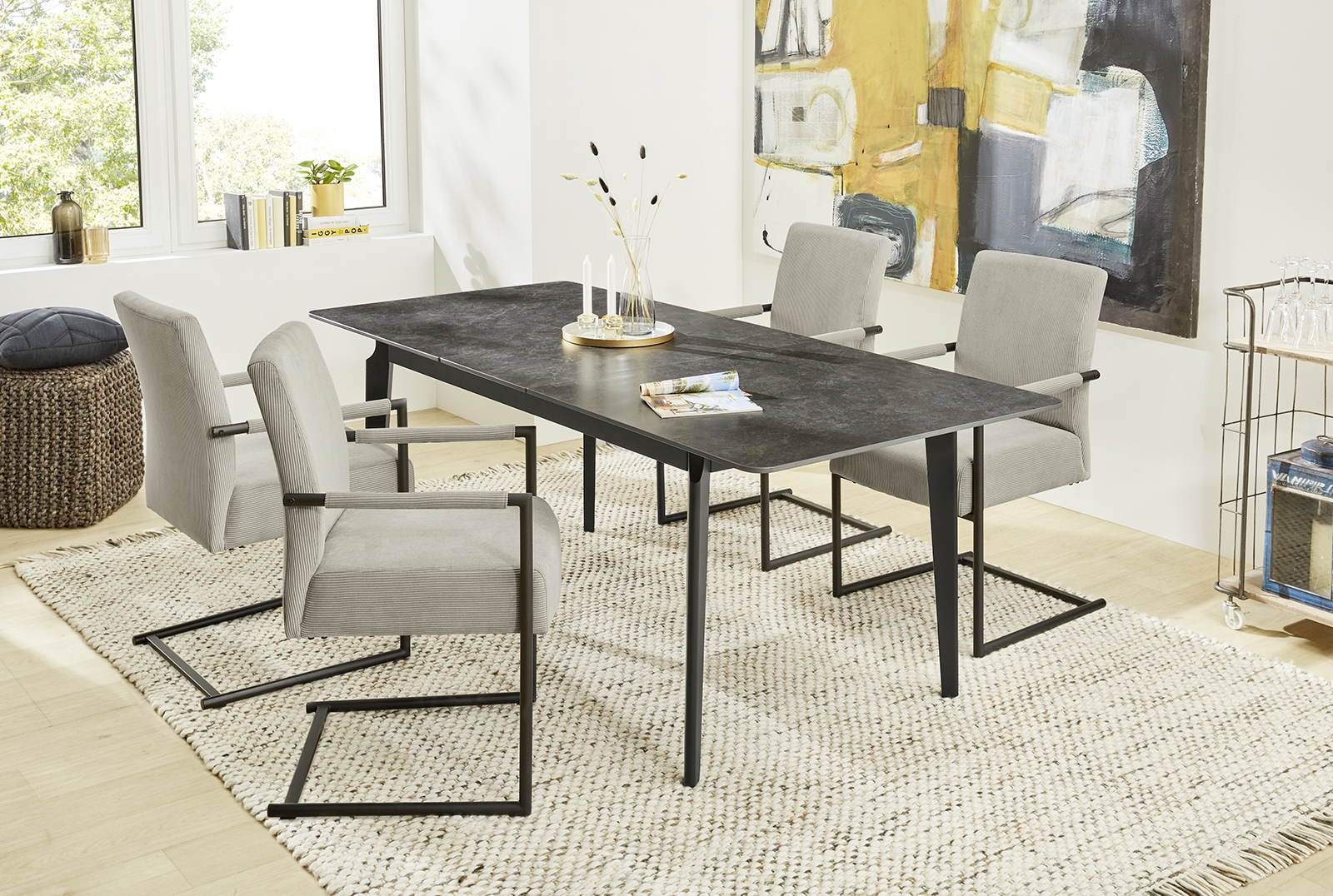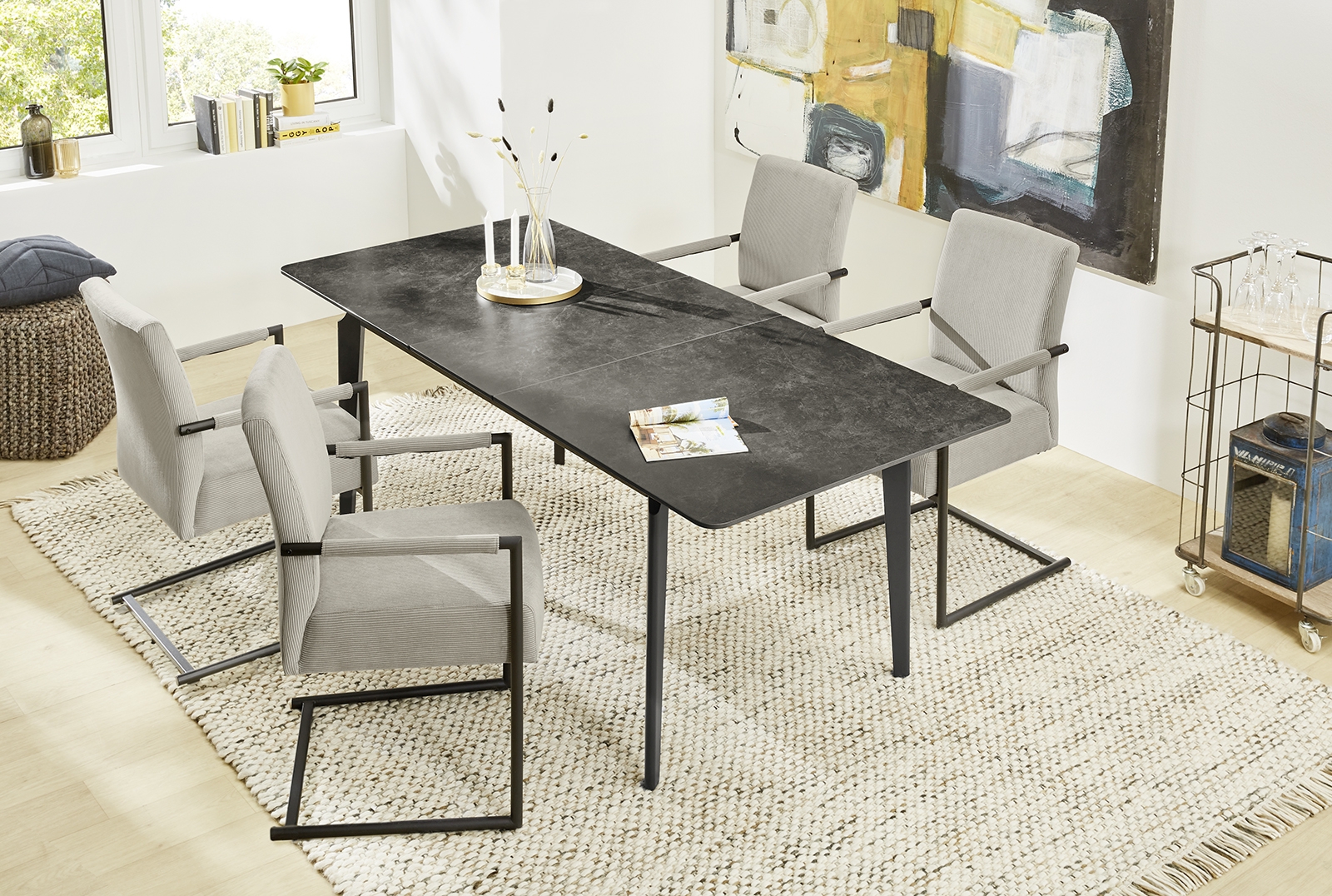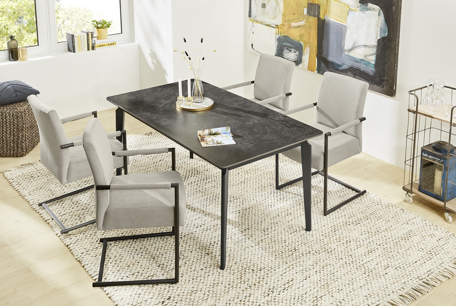Tischplatte: Keramikplatte auf Glas anthrazitfarben