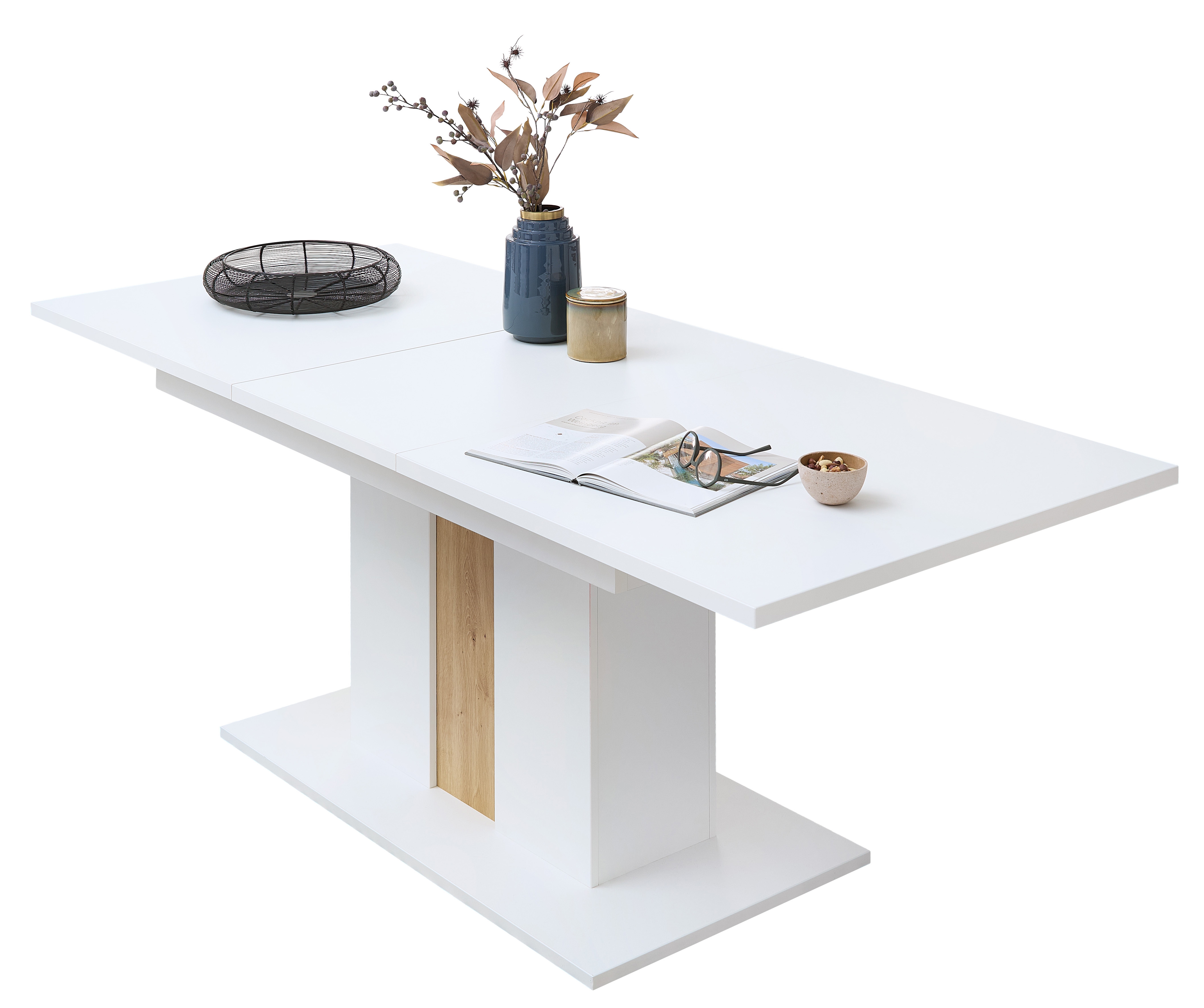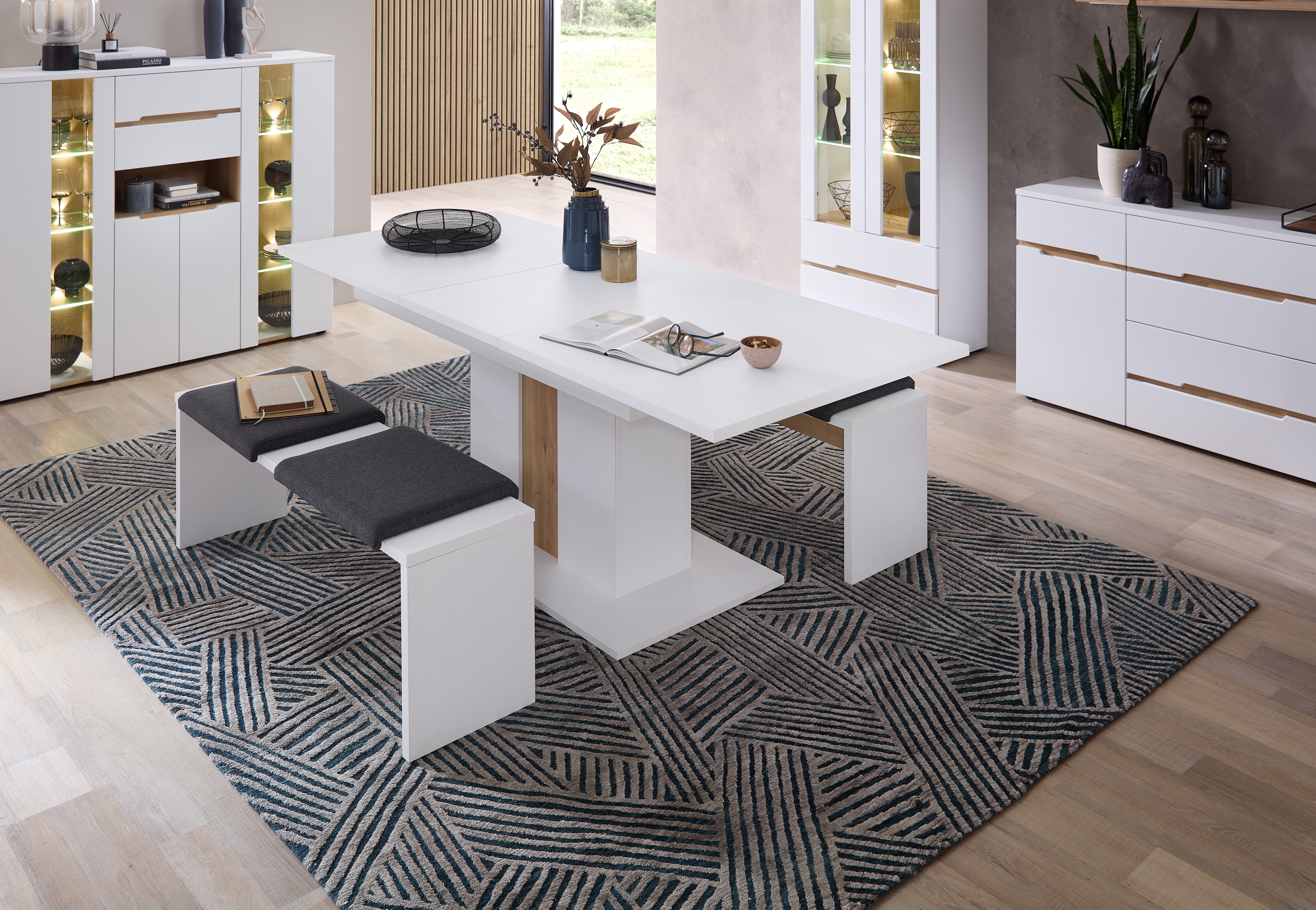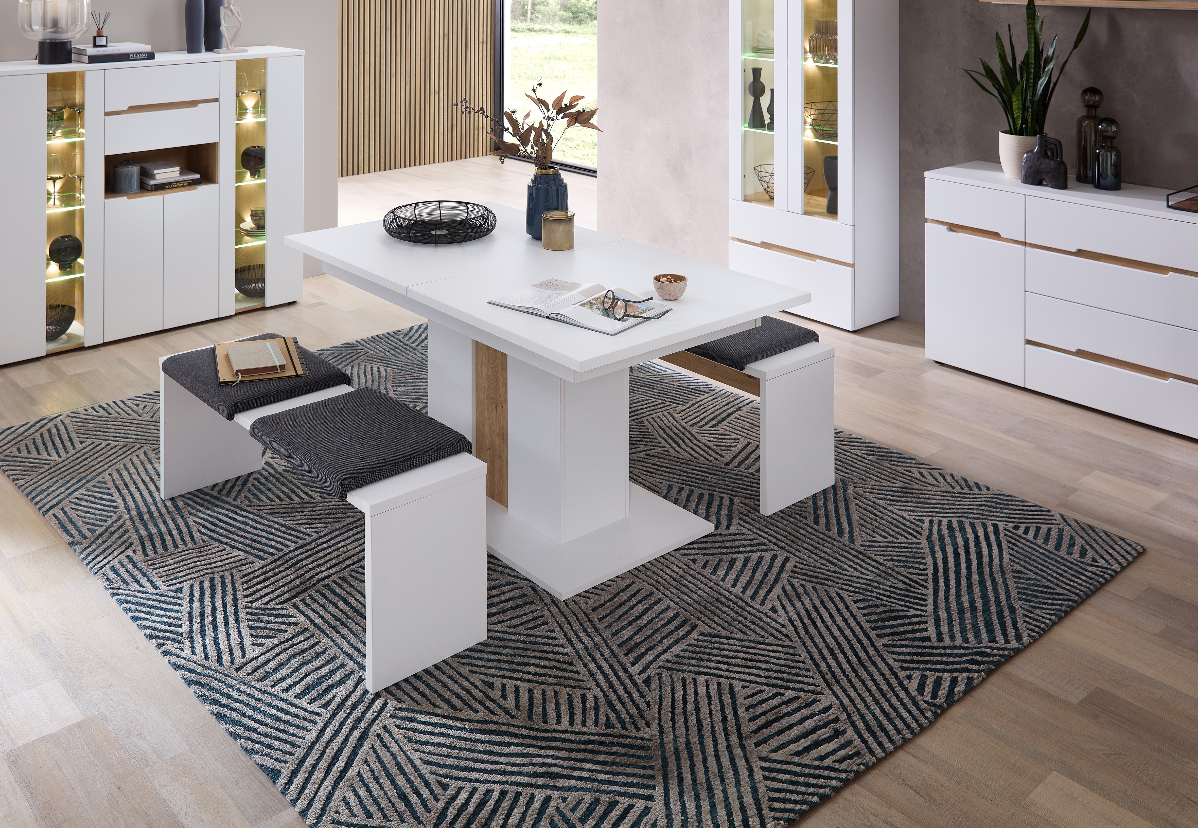 MDF (Mitteldichte Holzfaserplatte) in Weiß supermatt kombiniert mit Absetzungen in Artisan Eiche Holznachbildung