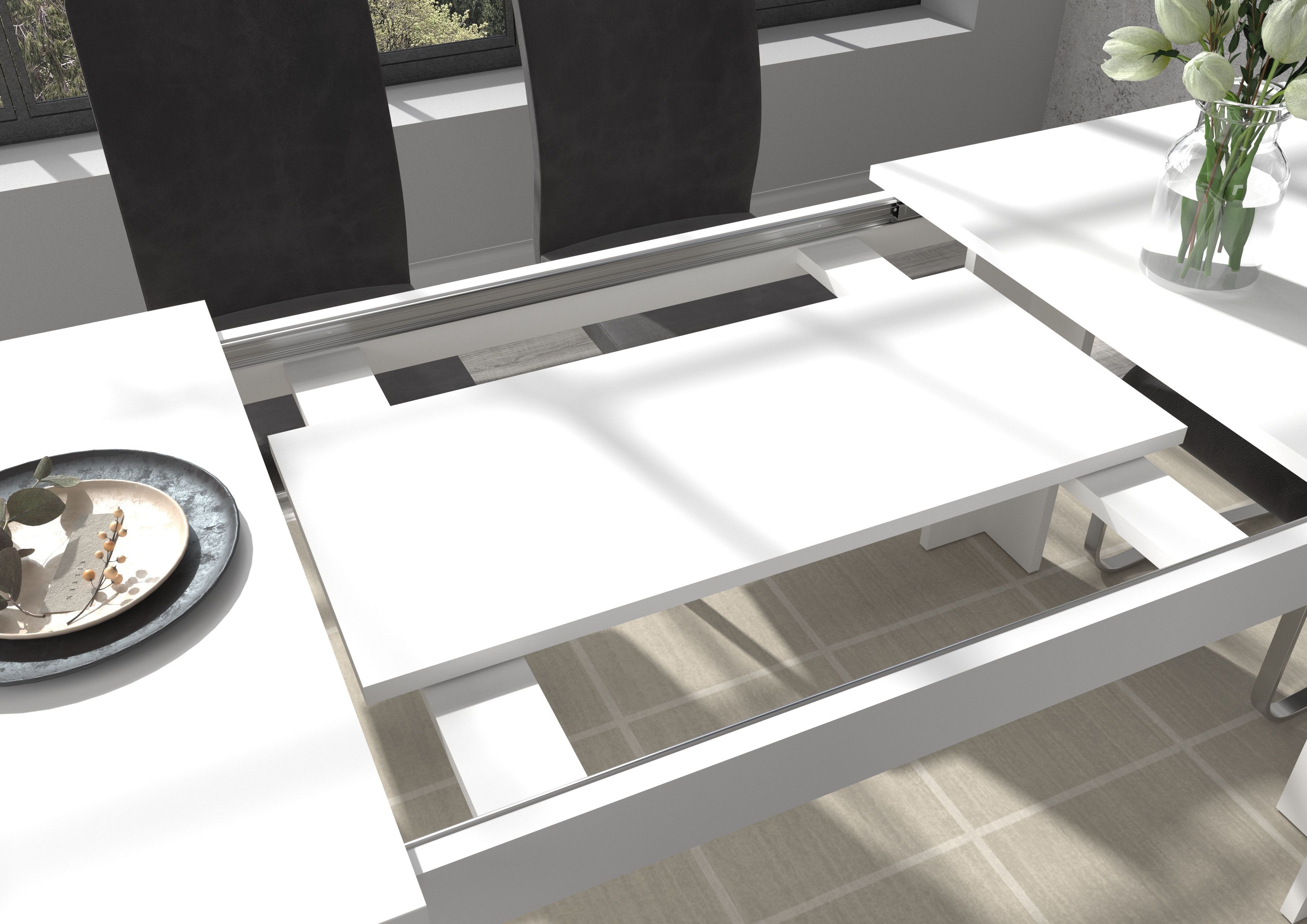 Verleihe deinem Esszimmer mit unserem trendigen weißen Esstisch eine moderne Note. Mit seiner ausziehbaren Funktion von 160 auf 200 cm bietet er genügend Platz für gesellige Abende mit Freunden und Familie. Erlebe Stil und Funktionalität vereint in diesem coolen Möbelstück für dein Zuhause.