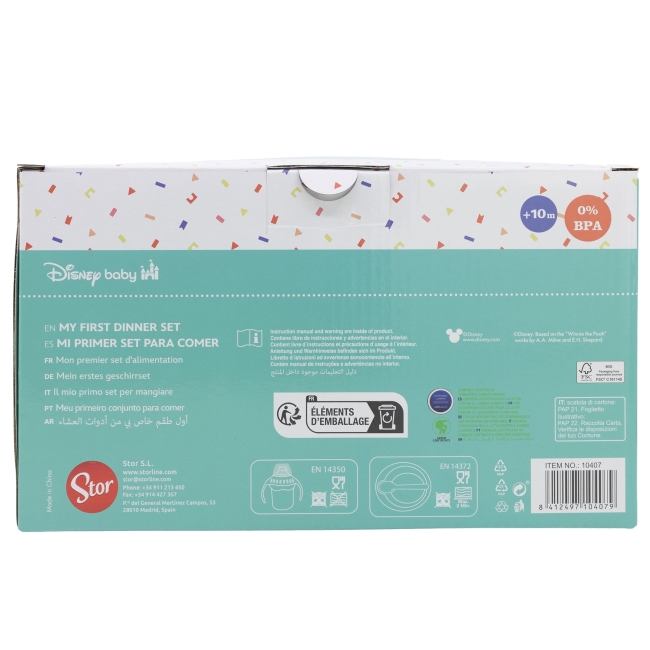 bestehend aus: Teller, Löffel, Trinkflasche mit Griffen