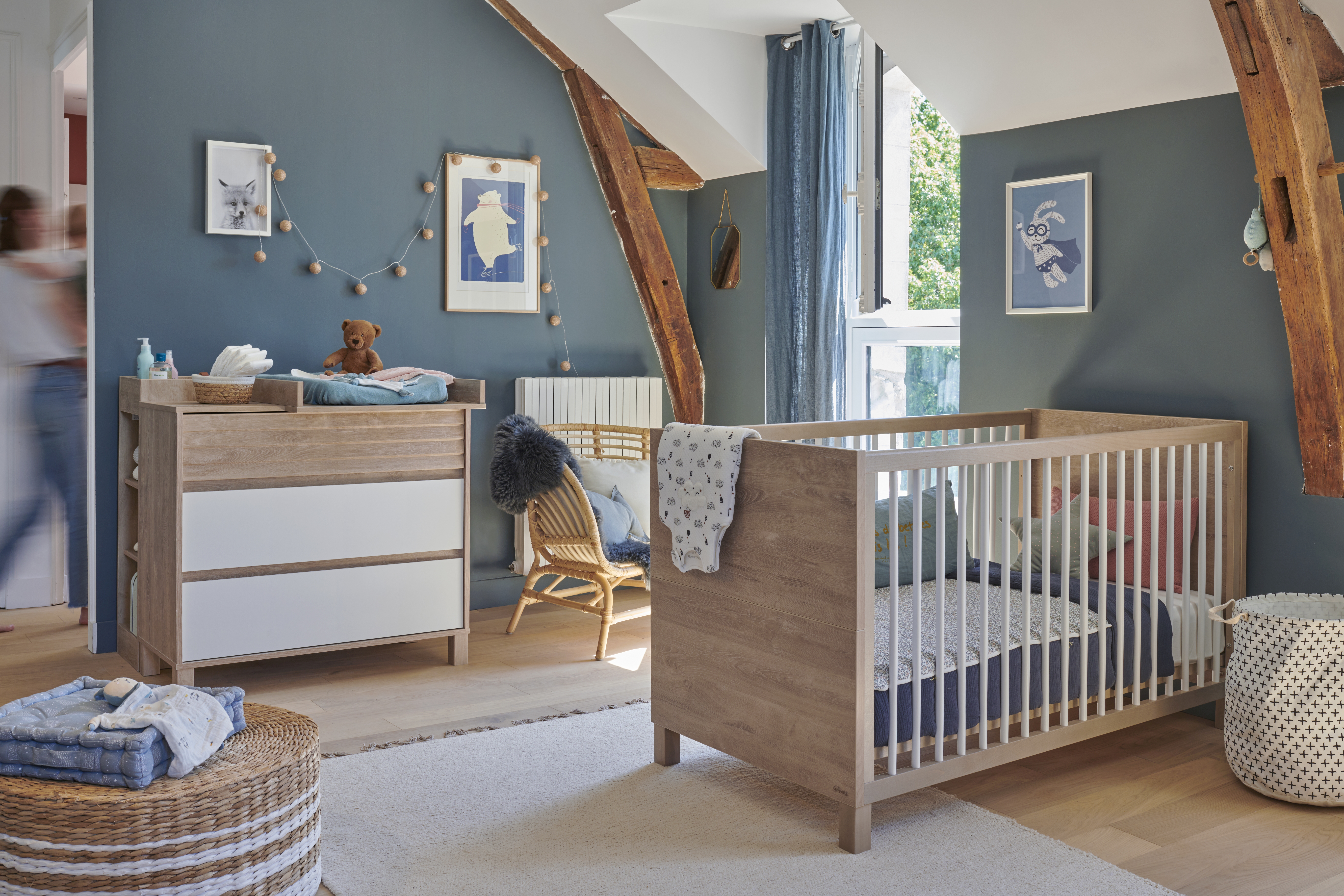 - Es ist mit einem echten Lattenrost ausgestattet. Wählen Sie die obere Position für Ihr Neugeborenes und die untere Position, sobald Ihr Kind in seinem Bett aufrecht stehen kann.