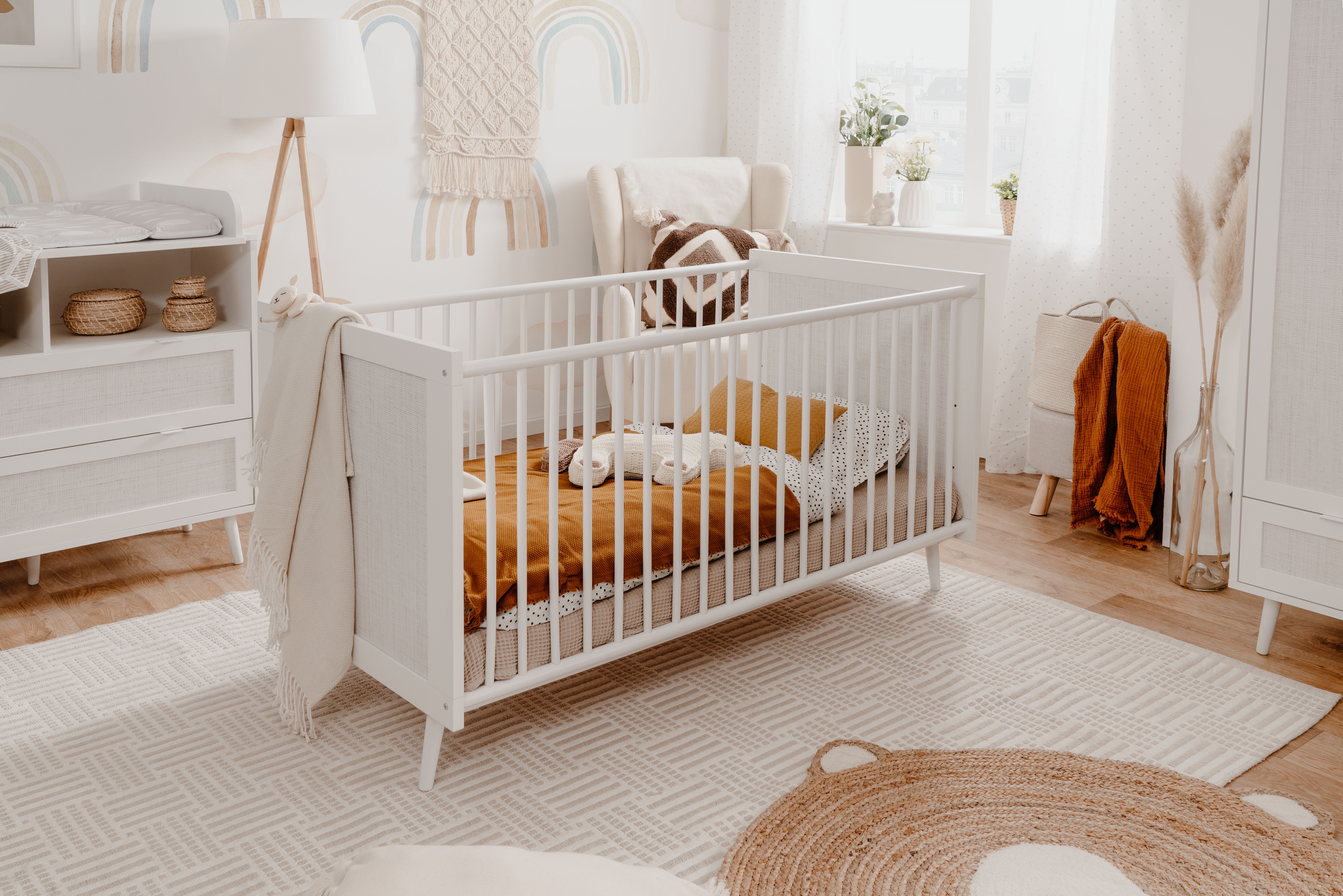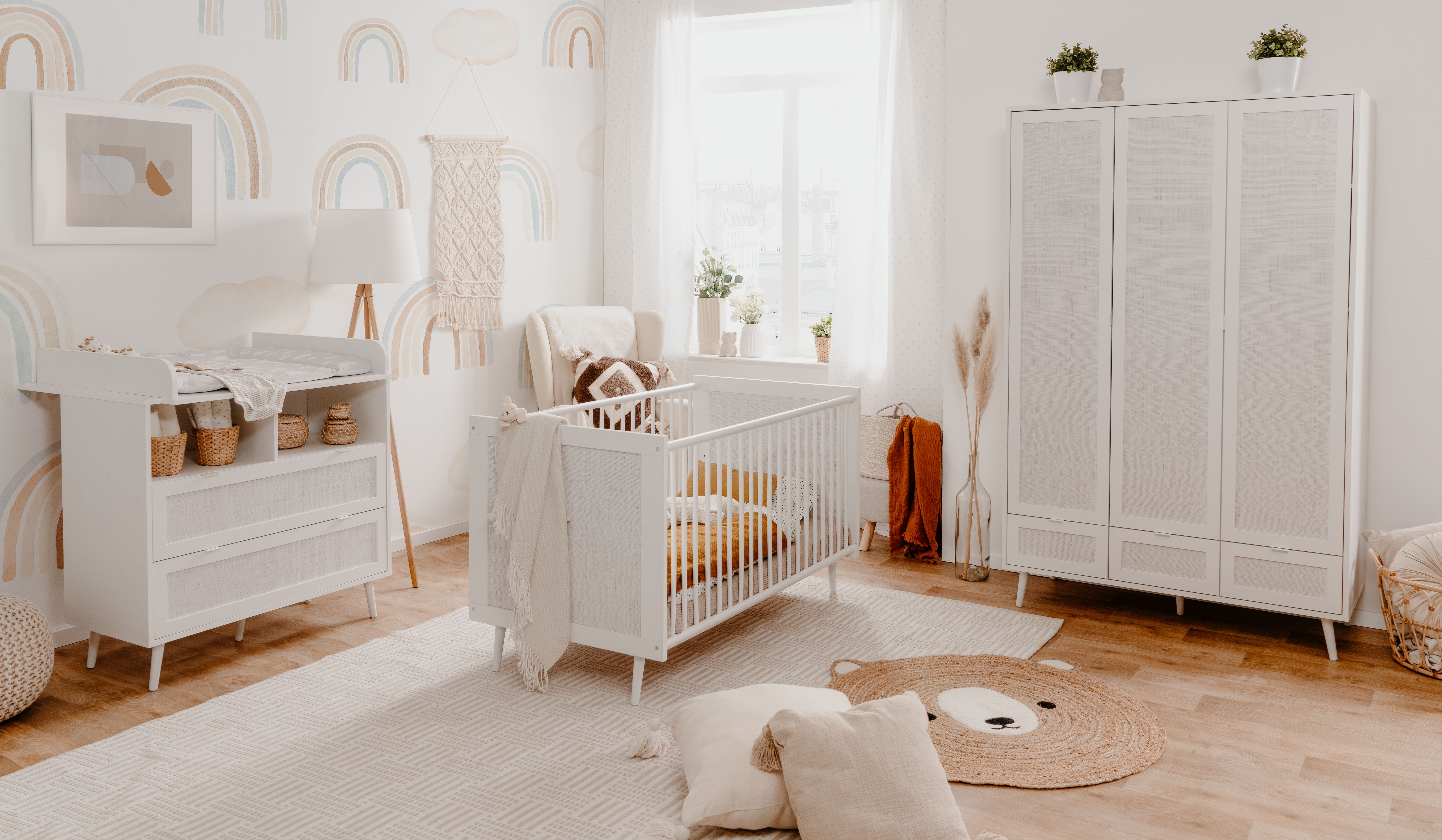 Weiß kombiniert mit einem Rafia-Geflecht in weiß