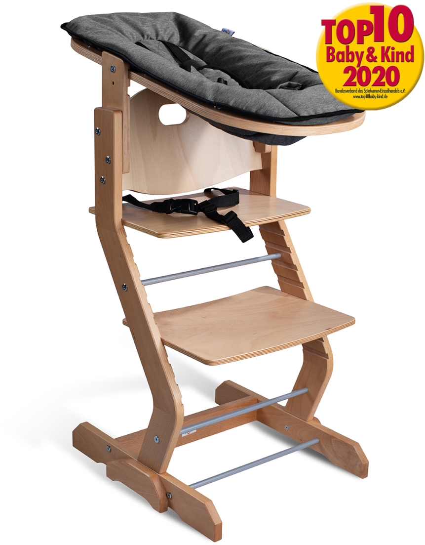 Der Newborn Aufsatz fördert von Geburt an die Interaktion, weil es Ihr Neugeborenes am Tisch auf Augenhöhe mit dem Rest der Familie zusammenbringt. Durch die 2-fache Neigungsverstellung haben Sie die Möglichkeit, wenn Ihr Kind anfängt Beikost zu bekommen, dieses bereits bequem, sicher und rückenschonend im Hochstuhl zu füttern.