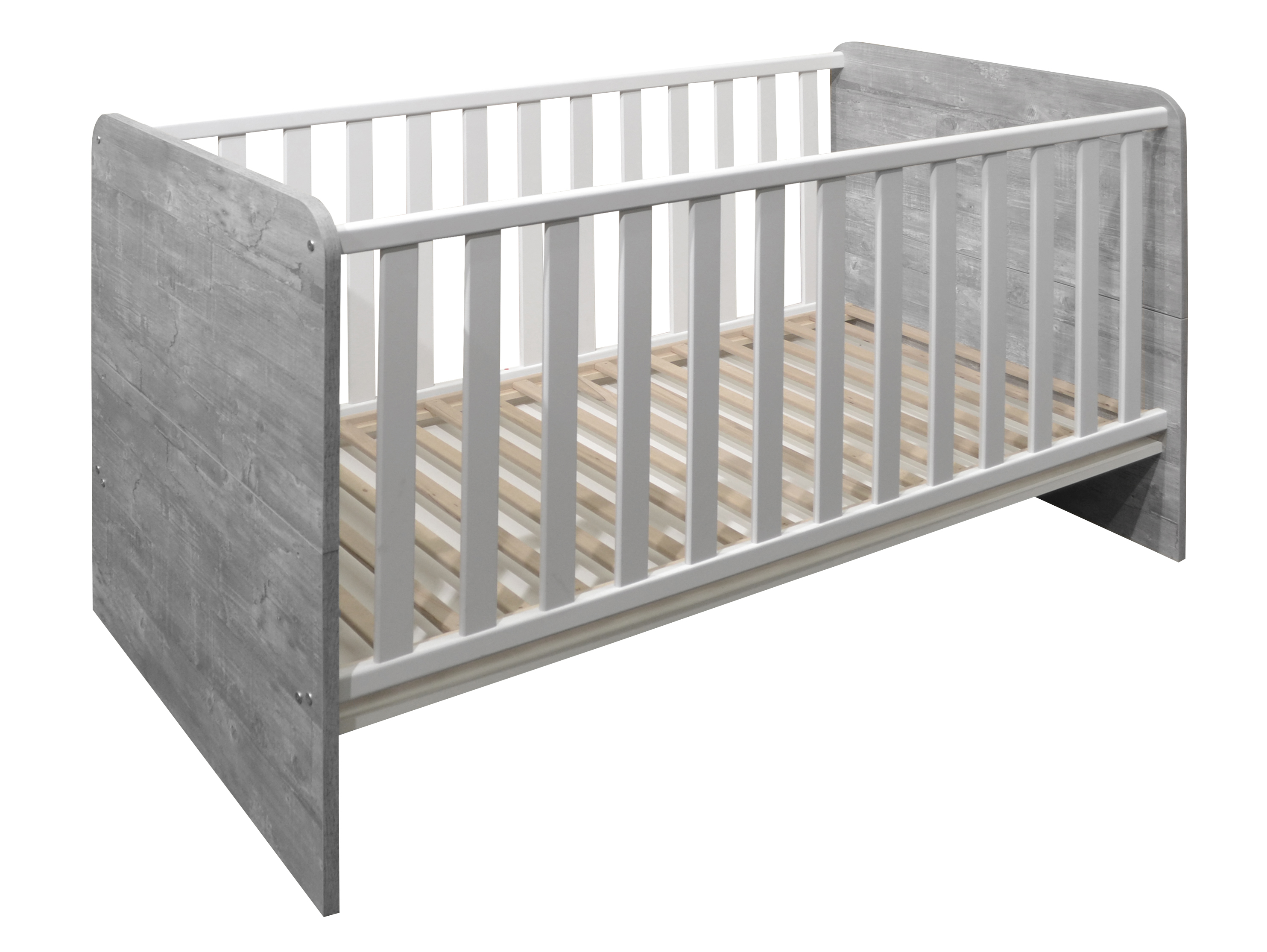 1 Babybett inklusive 3-fach höhenverstellbarer Lattenrost; Gitterseiten mit Flachstäben, davon eins mit 3 Schlupfsprossen