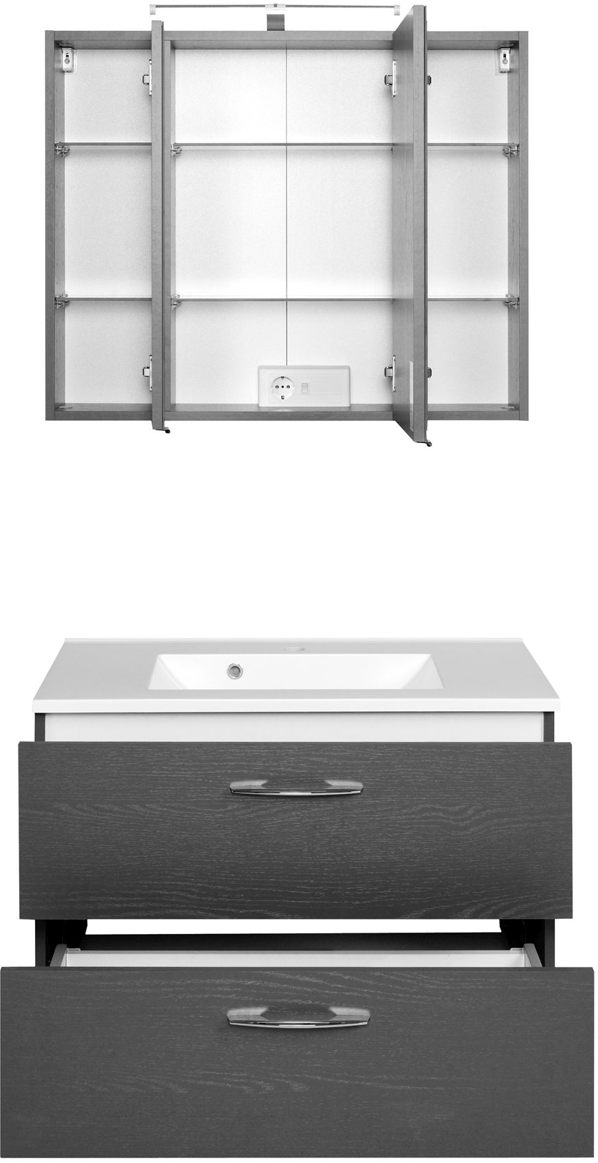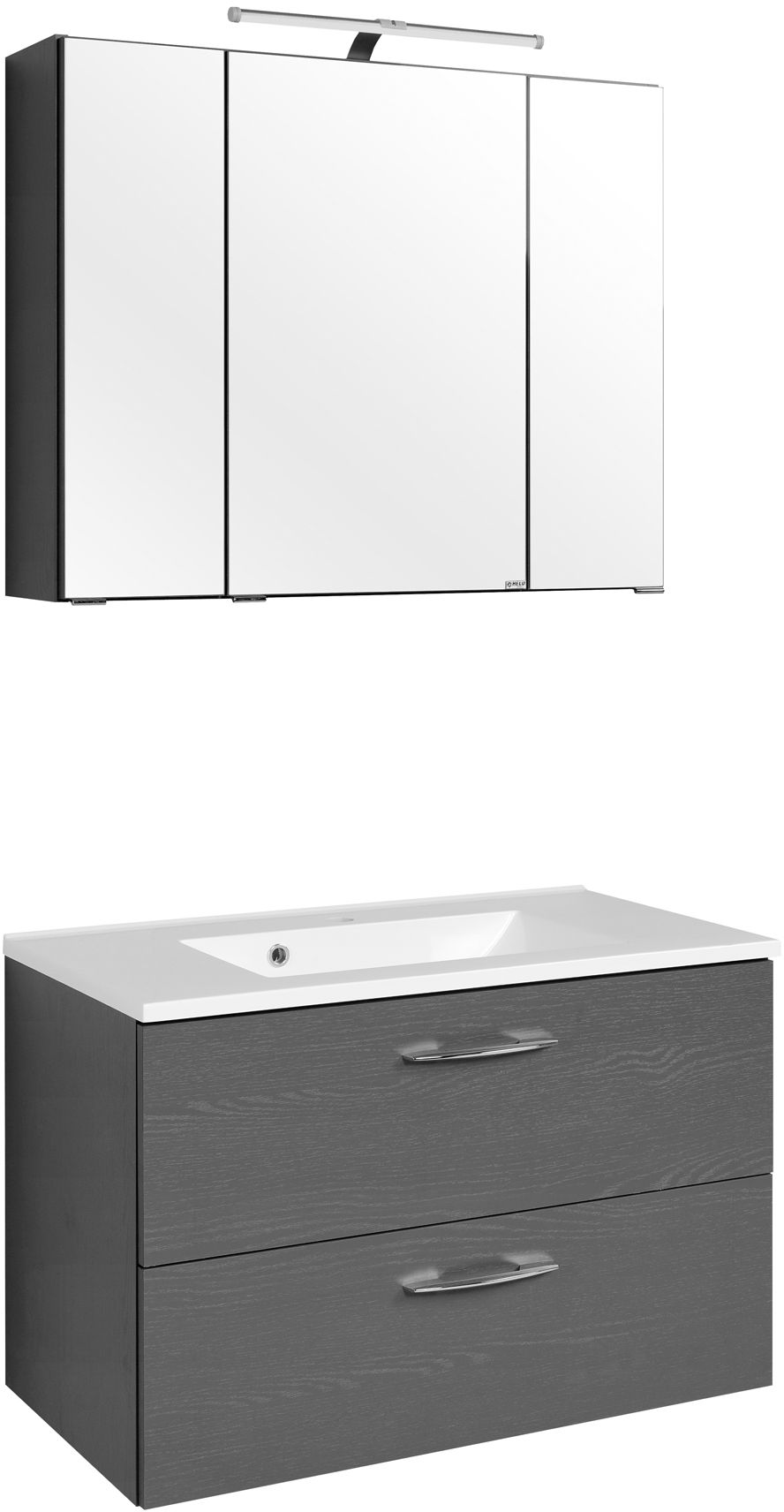 Front: Melamin Graphitgrau / Spiegel