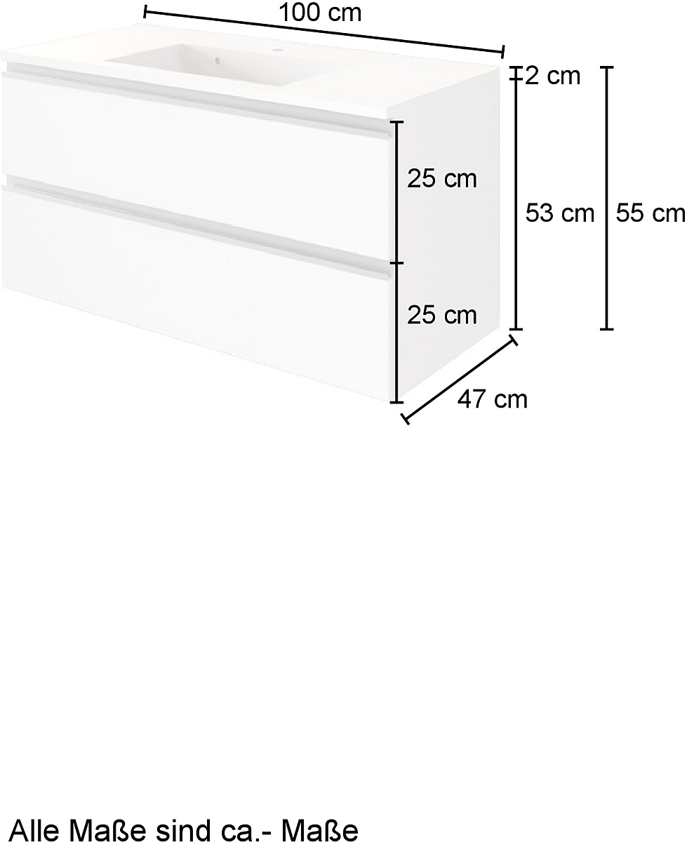 | Waschbeckenunterschrank mit Mineralgussbecken | 100 | 54 | 35 |