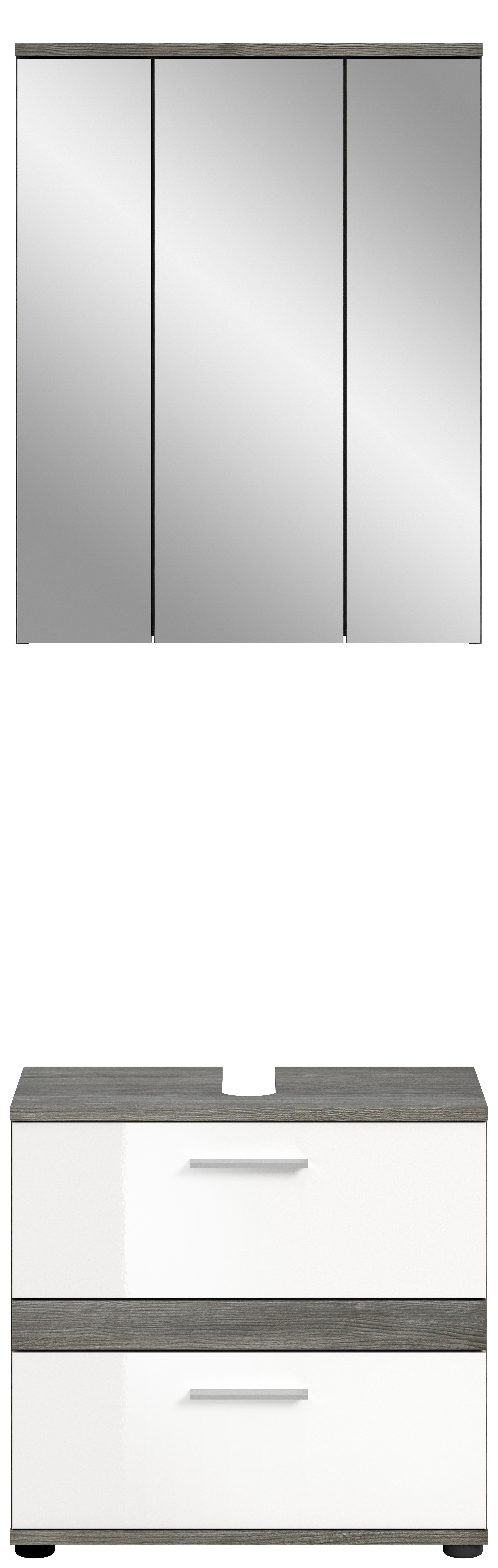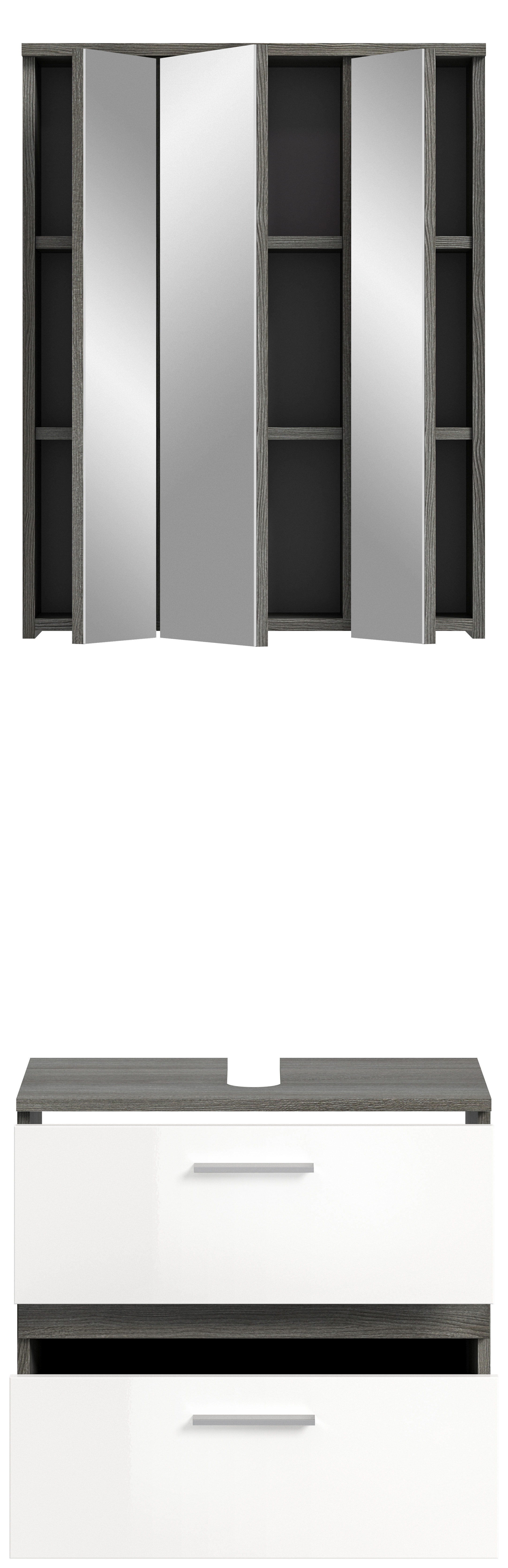 Unsere Badkombination vereint Stil und Funktionalität in einem eleganten Design. Die Rauchsilber-Nachbildung in Kombination mit dem strahlenden Weiß-Hochglanz verleiht Ihrem Badezimmer einen modernen und attraktiven Look. Entdecken Sie jetzt diese vielseitige Lösung für Ihr Bad und verwandeln Sie Ihren Raum in eine stilvolle Wohlfühloase.