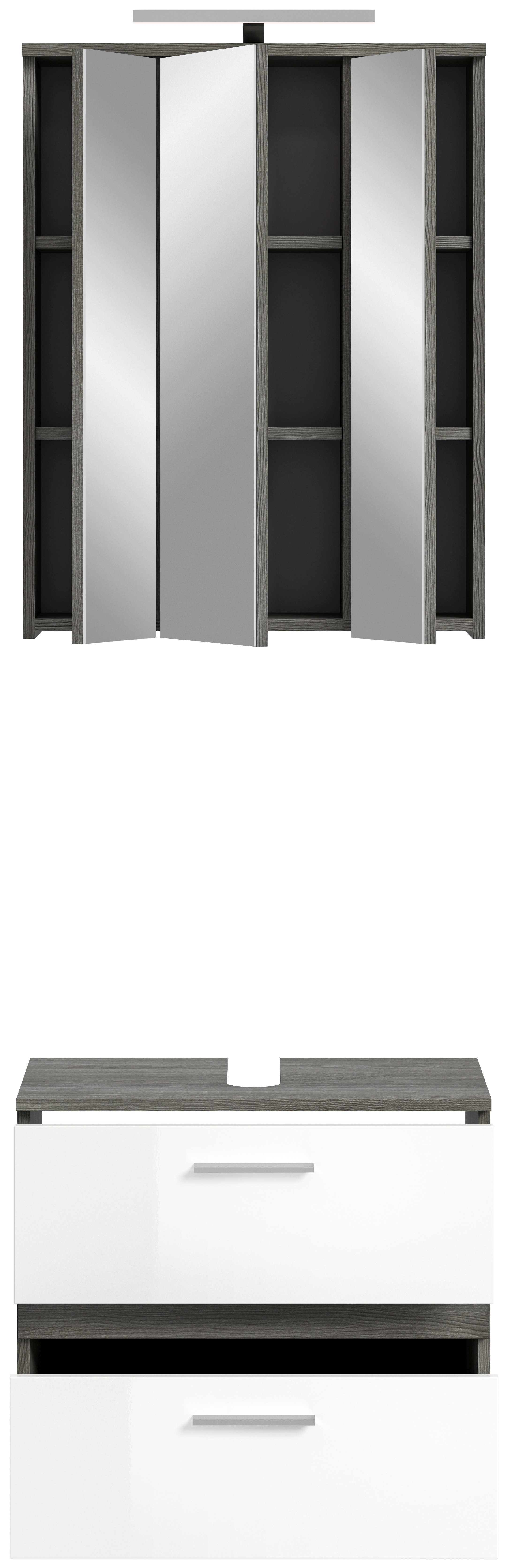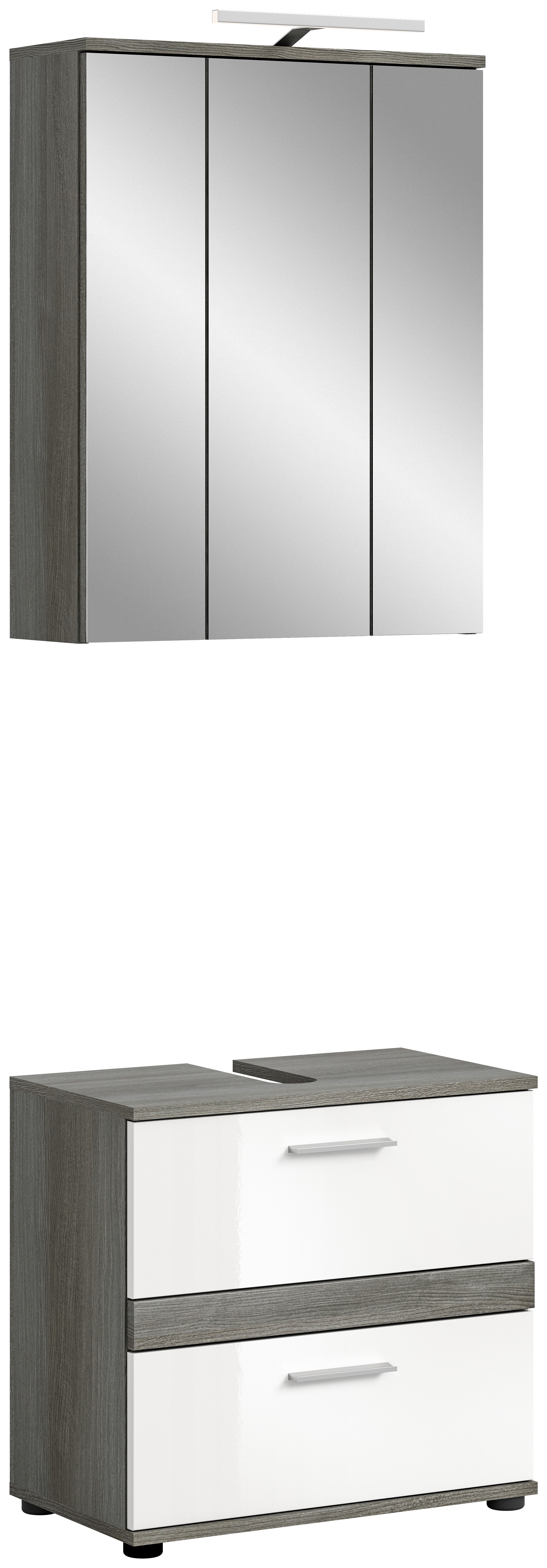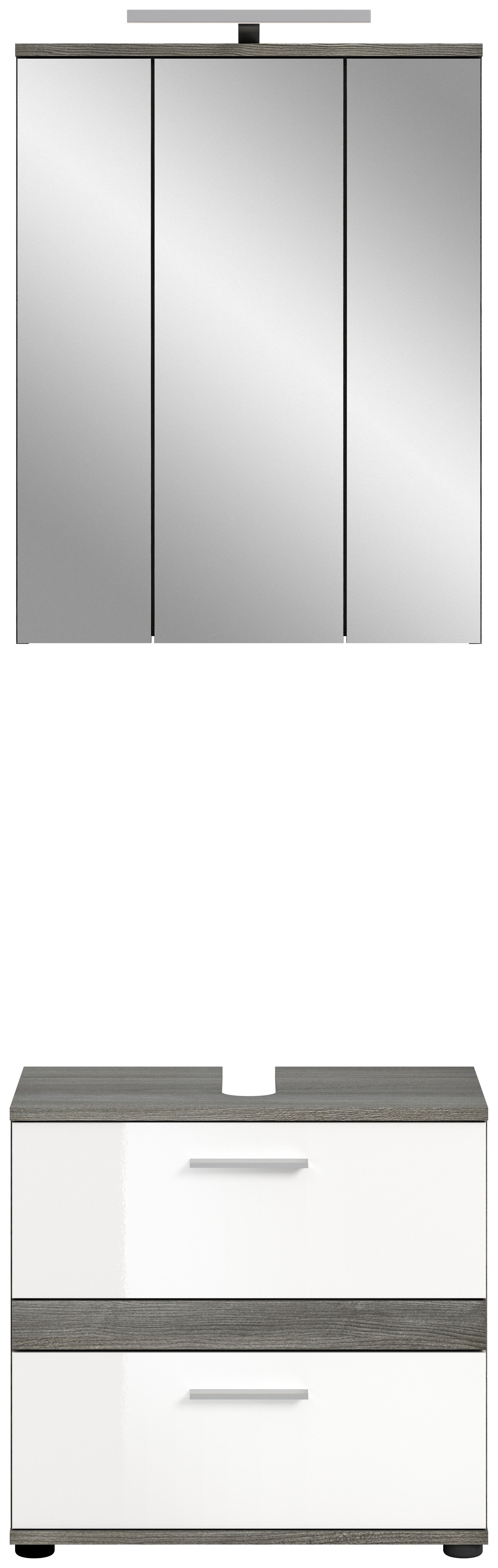Unsere Badkombination vereint Stil und Funktionalität in einem eleganten Design. Die Rauchsilber-Nachbildung in Kombination mit dem strahlenden Weiß-Hochglanz verleiht Ihrem Badezimmer einen modernen und attraktiven Look. Entdecken Sie jetzt diese vielseitige Lösung für Ihr Bad und verwandeln Sie Ihren Raum in eine stilvolle Wohlfühloase.