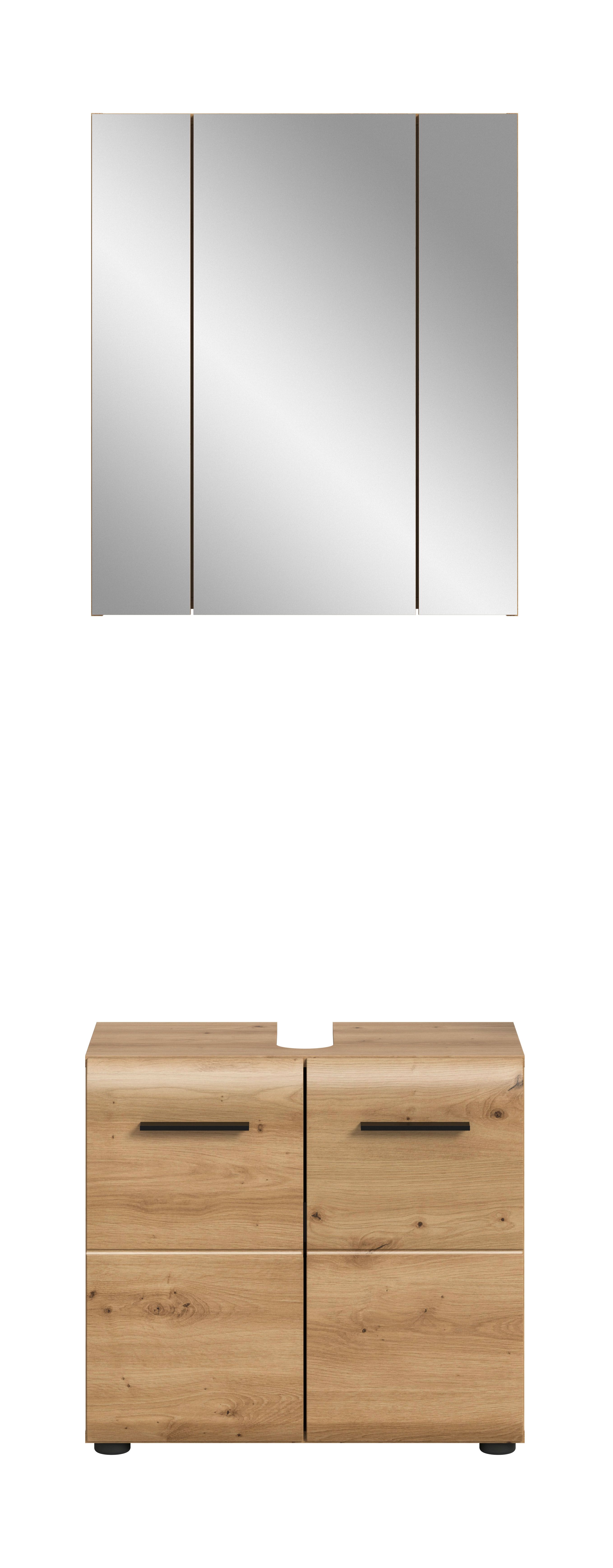Entdecken Sie unsere elegante Badezimmer Badkombination in Artisan Eiche Holznachbildung. Diese durchdachte Kombination aus verschiedenen Badmöbeln bietet nicht nur Stauraum für Ihre Badutensilien, sondern verleiht Ihrem Badezimmer auch einen modernen und aufgeräumten Look.