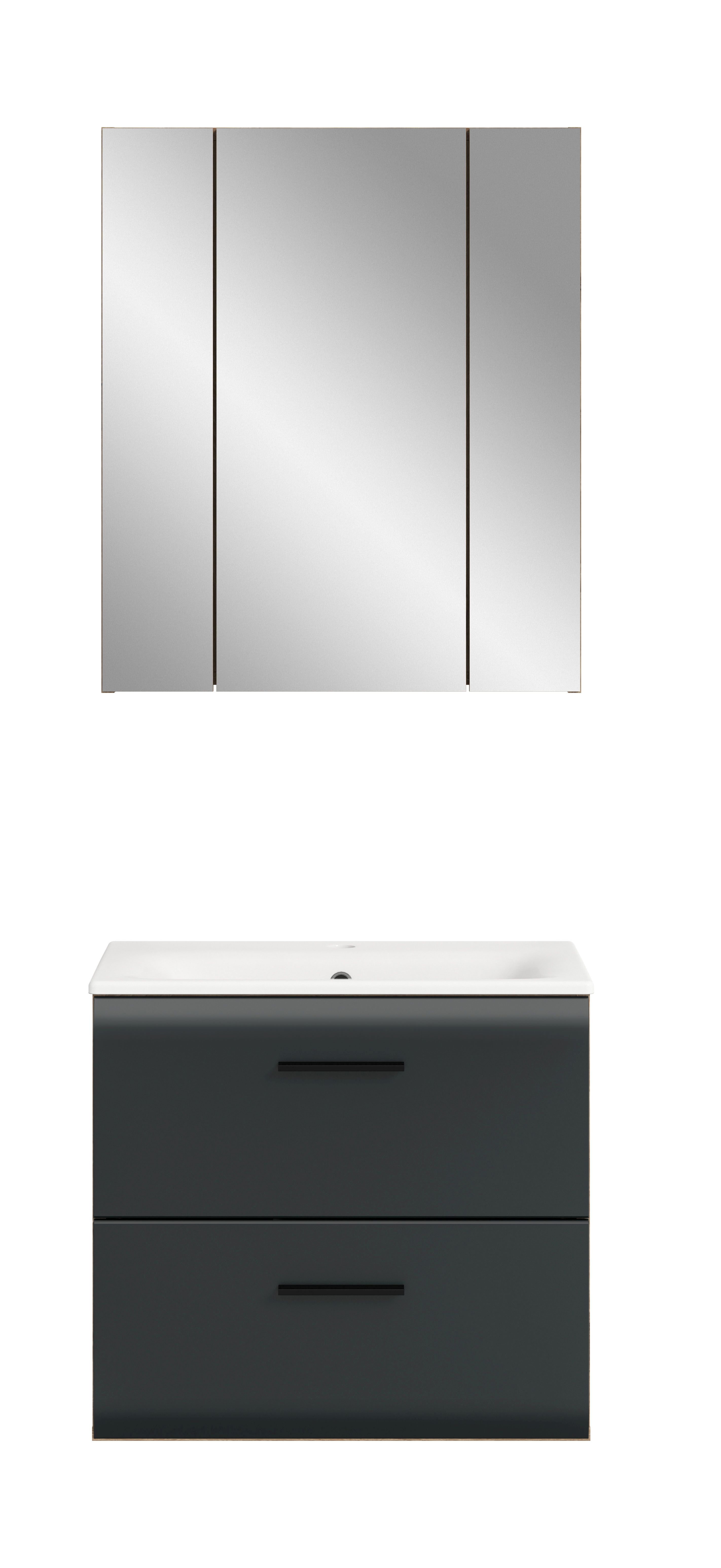 - 2-teilige Badkombination beteht aus 1x Waschtisch inkl. Waschbecken, 1x Spiegelschrank