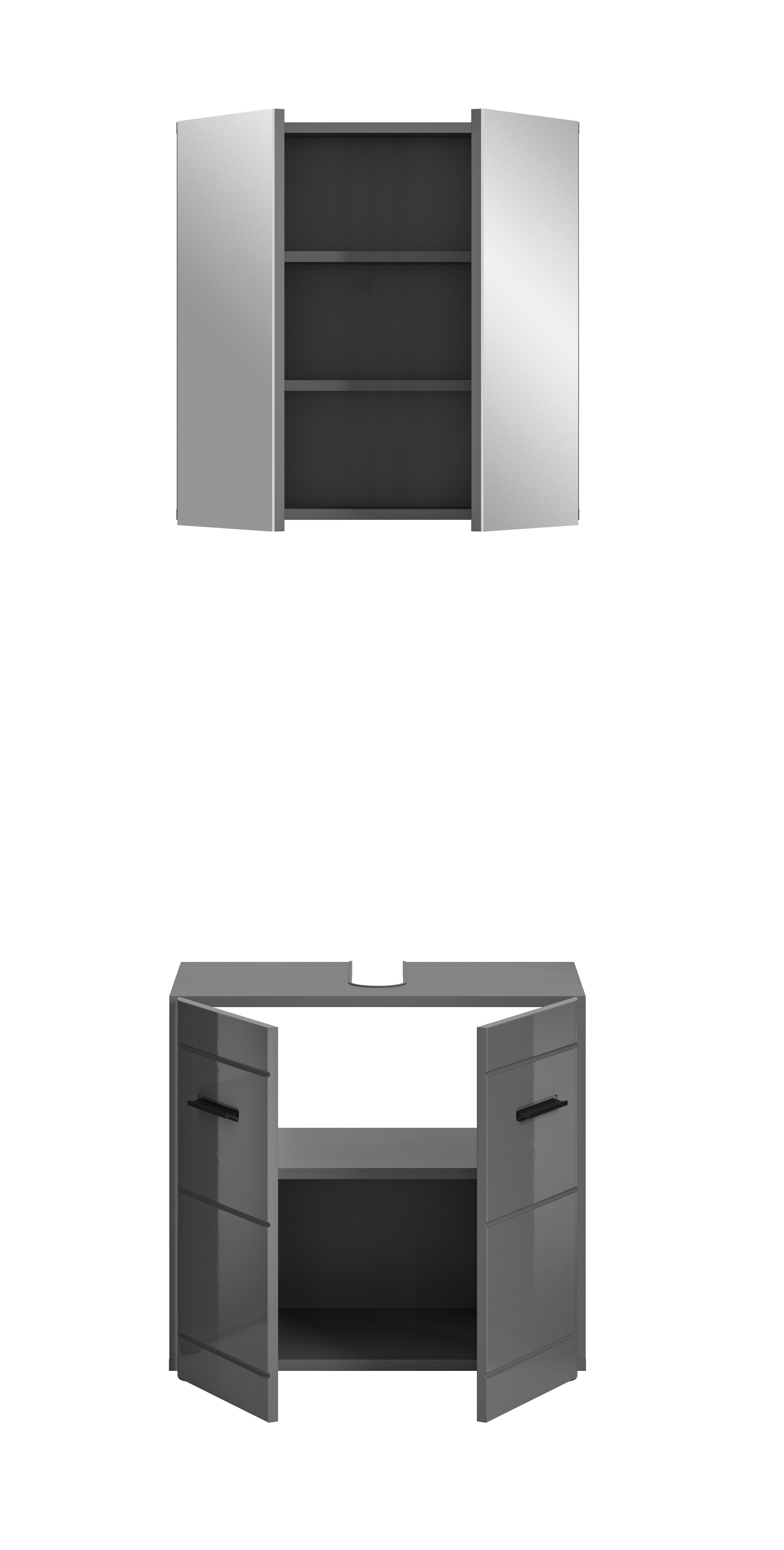 Front: Grau Hochglanz MDF (Mitteldichte Holzfaserplatte) Tiefzieh / Spiegel