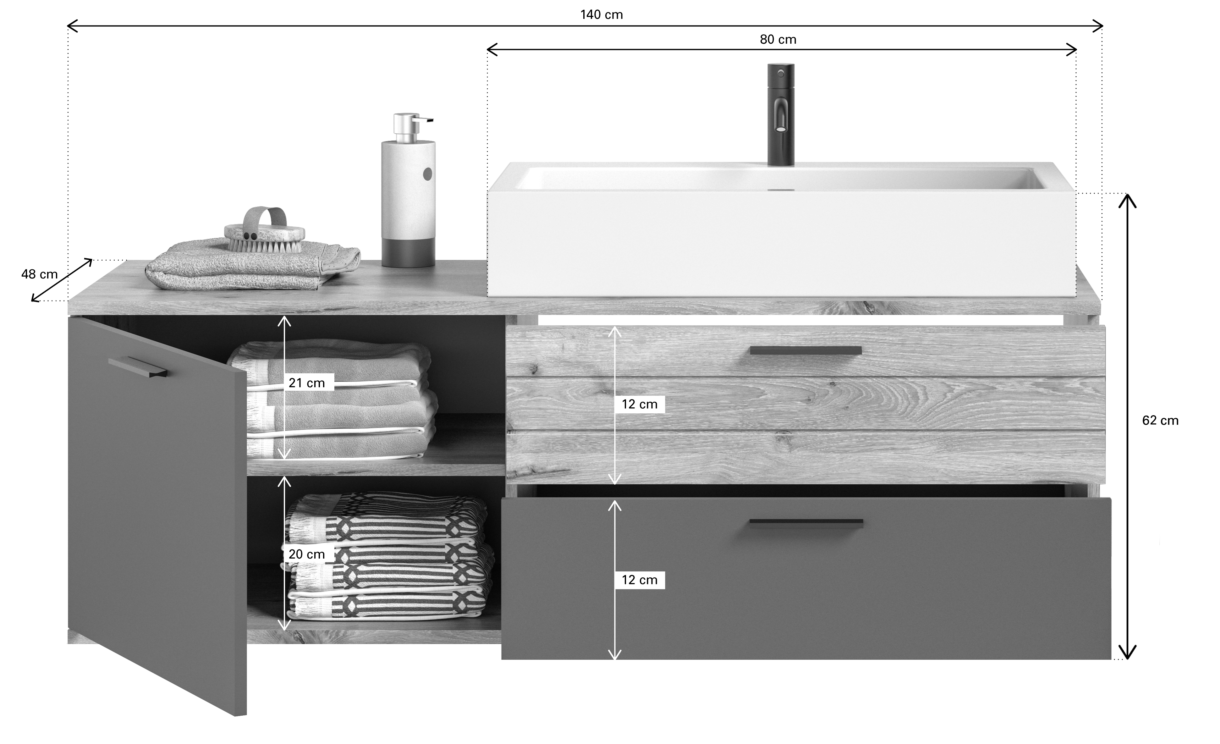 | Waschbeckenunterschrank mit Waschbecken | 140 | 62 | 48 |