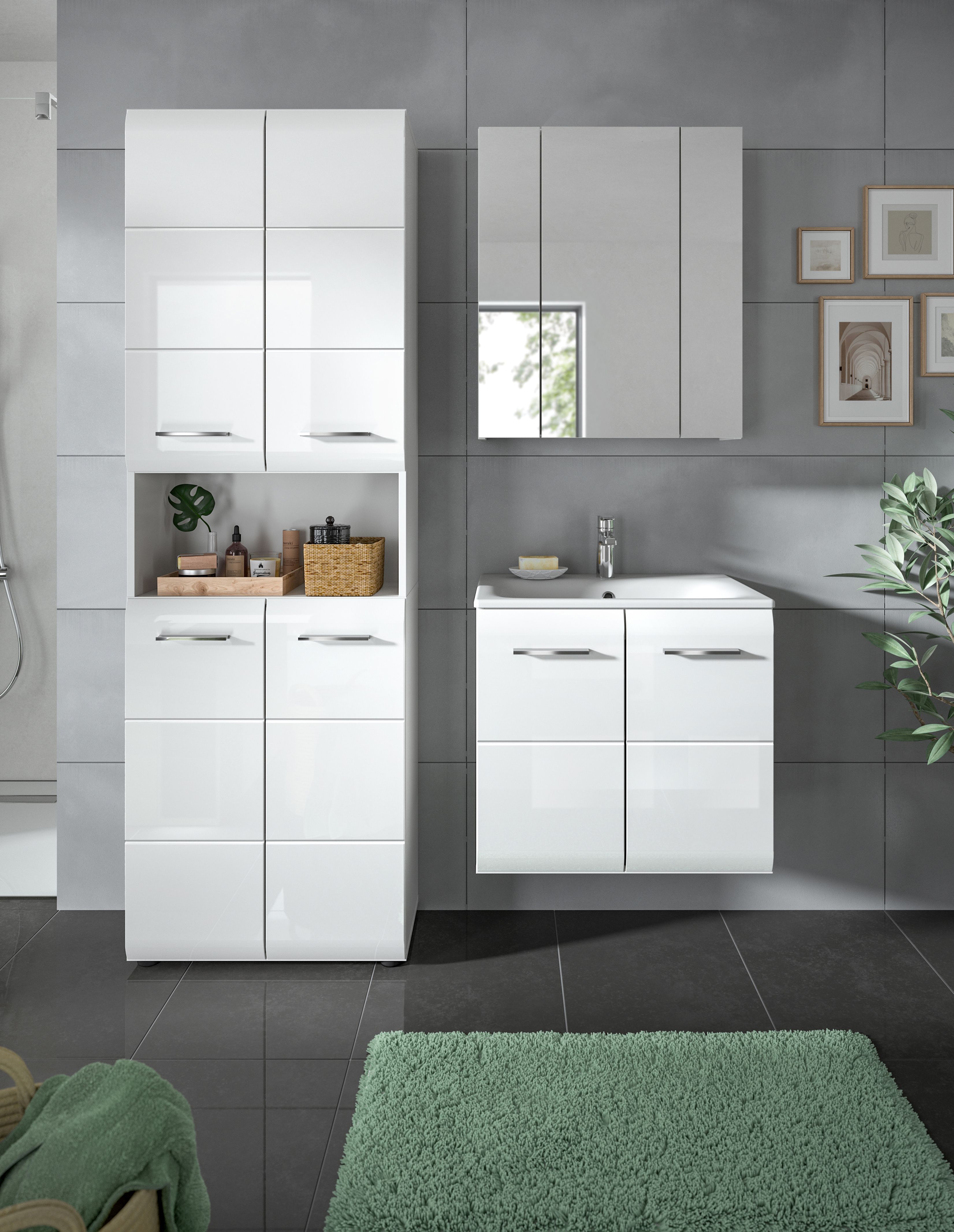 - Einsatzbereich: Perfekt geeignet als komplette Badkombination für Badezimmer zur Optimierung des Stauraums und der Funktionalität in einem begrenzten Raum.