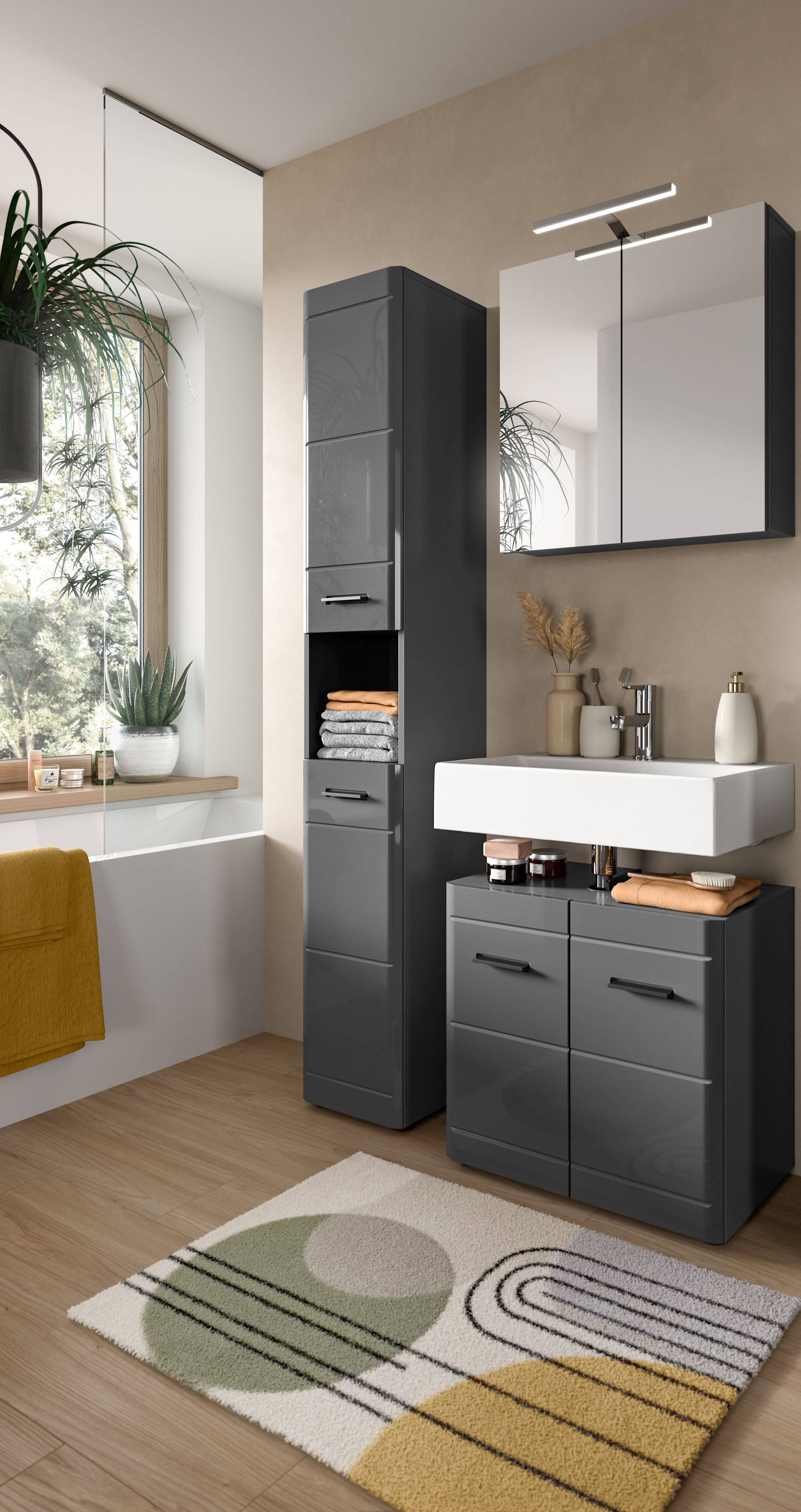 - Qualität/Pflege: Hergestellt aus hochwertigen Materialien gewährleistet die Badkombination eine hohe Qualität und Langlebigkeit. Die graue Nachbildung mit grauem Hochglanz tiefzieh ist pflegeleicht und kann leicht mit einem feuchten Tuch gereinigt werden, um ihr attraktives Aussehen zu bewahren.