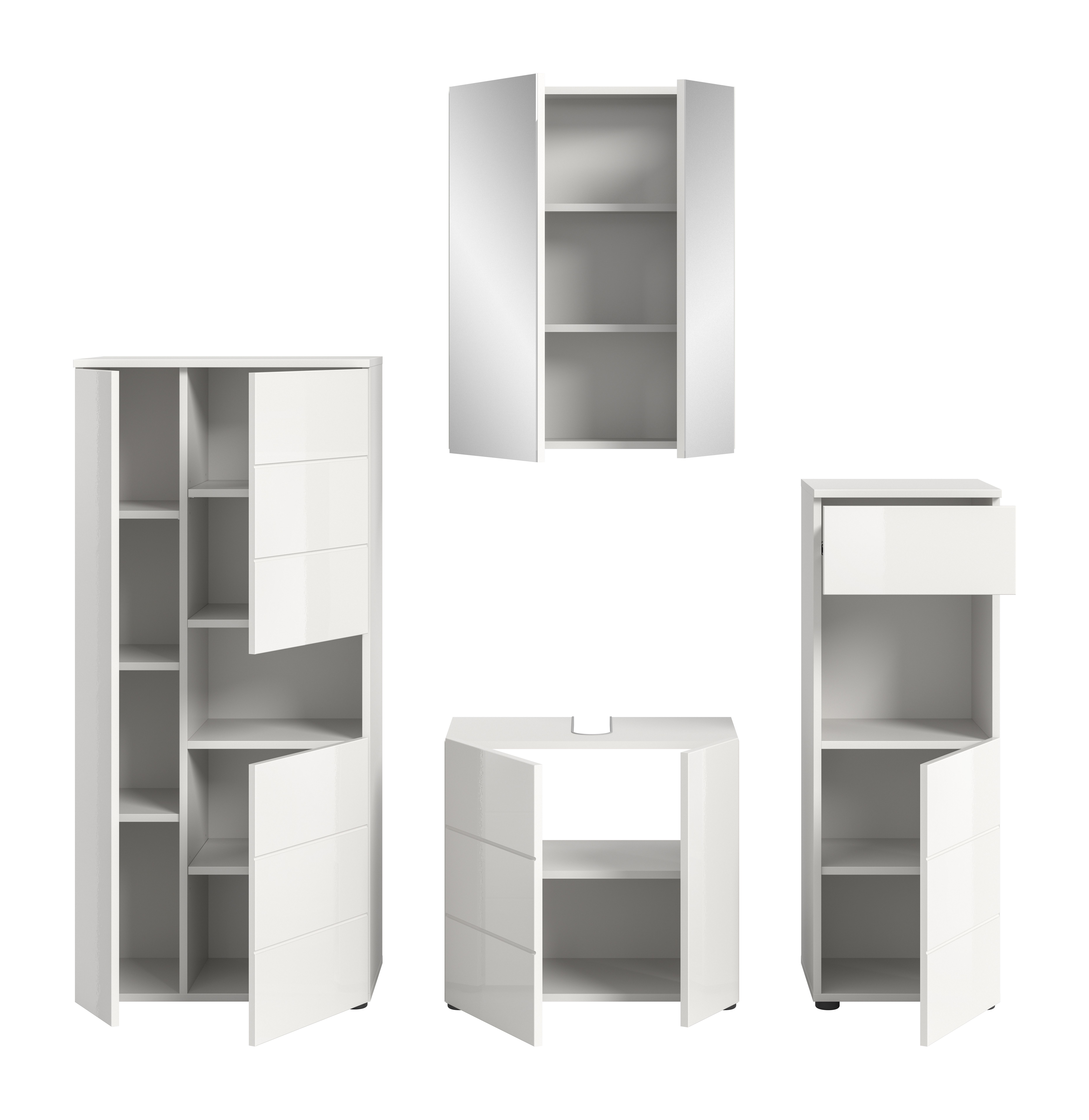 - 4 tlg. Set besteht aus: 1x Midischrank, 1x Waschbeckenunterschrank, 1x Spiegelschrank, 1x Badkommode