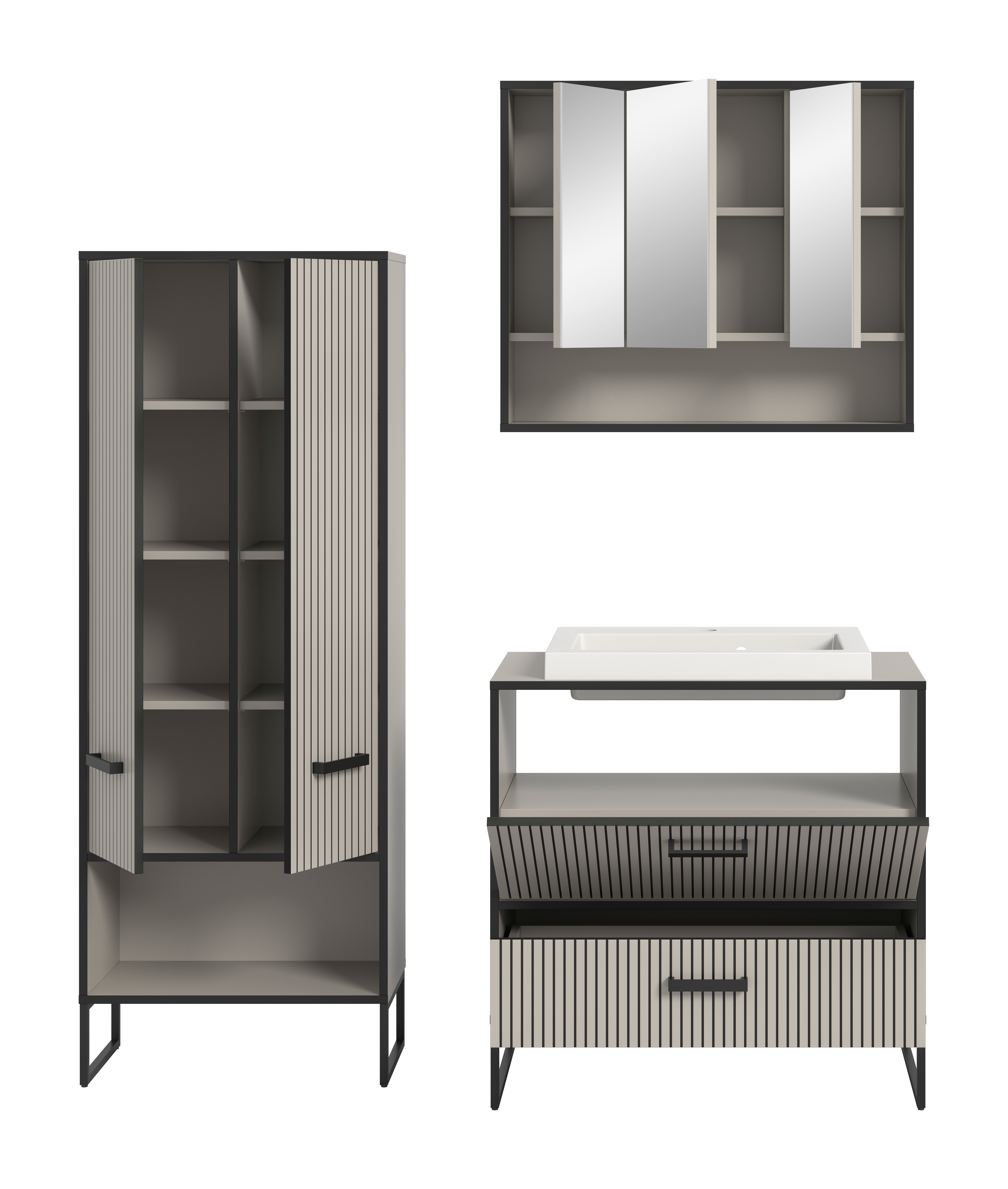 - hochwertig verarbeitete, pflegeleichte Oberfläche, mit Front in trendiger Rillenoptik