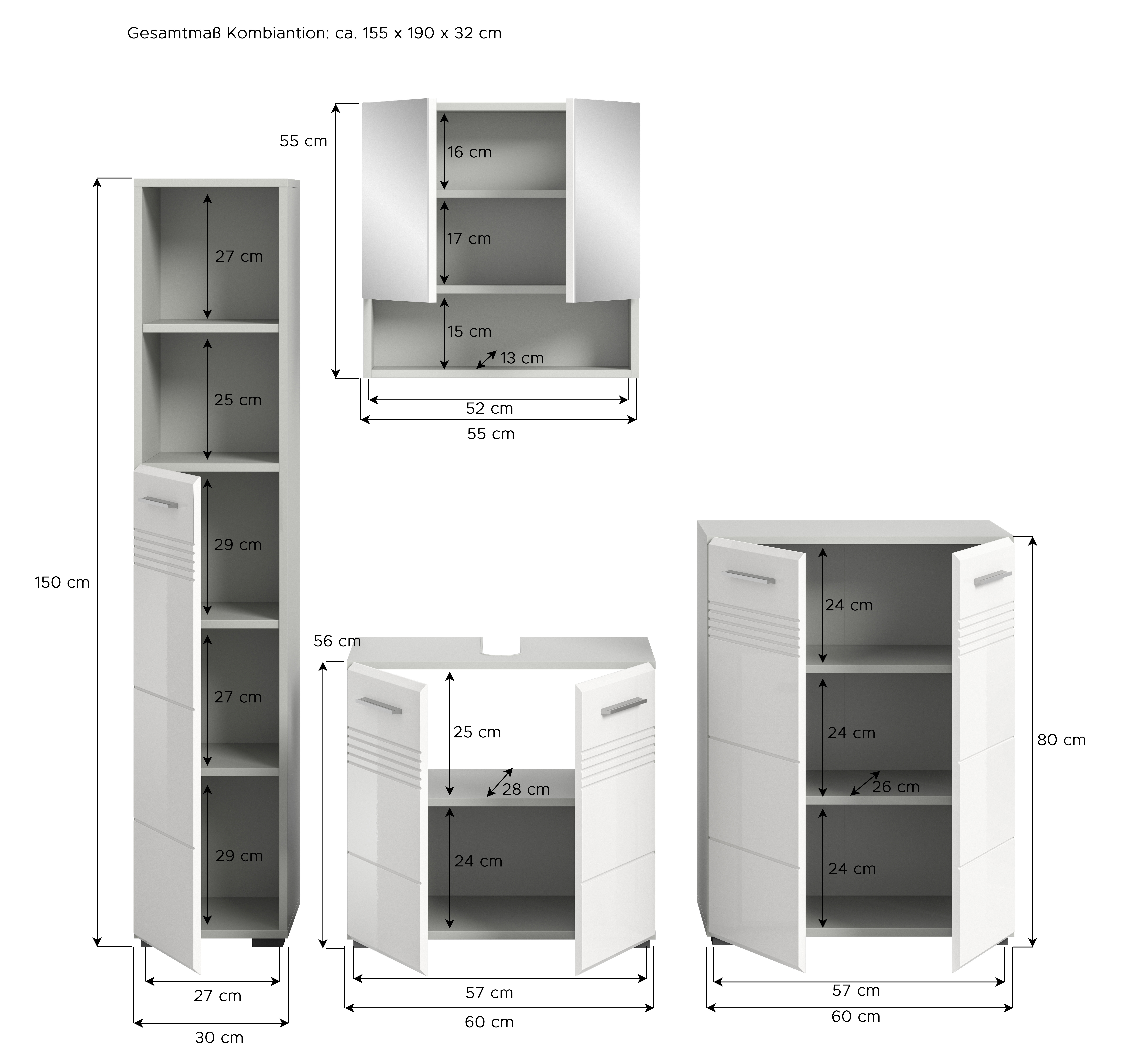 | Waschbeckenunterschrank | 60 | 56 | 32 |