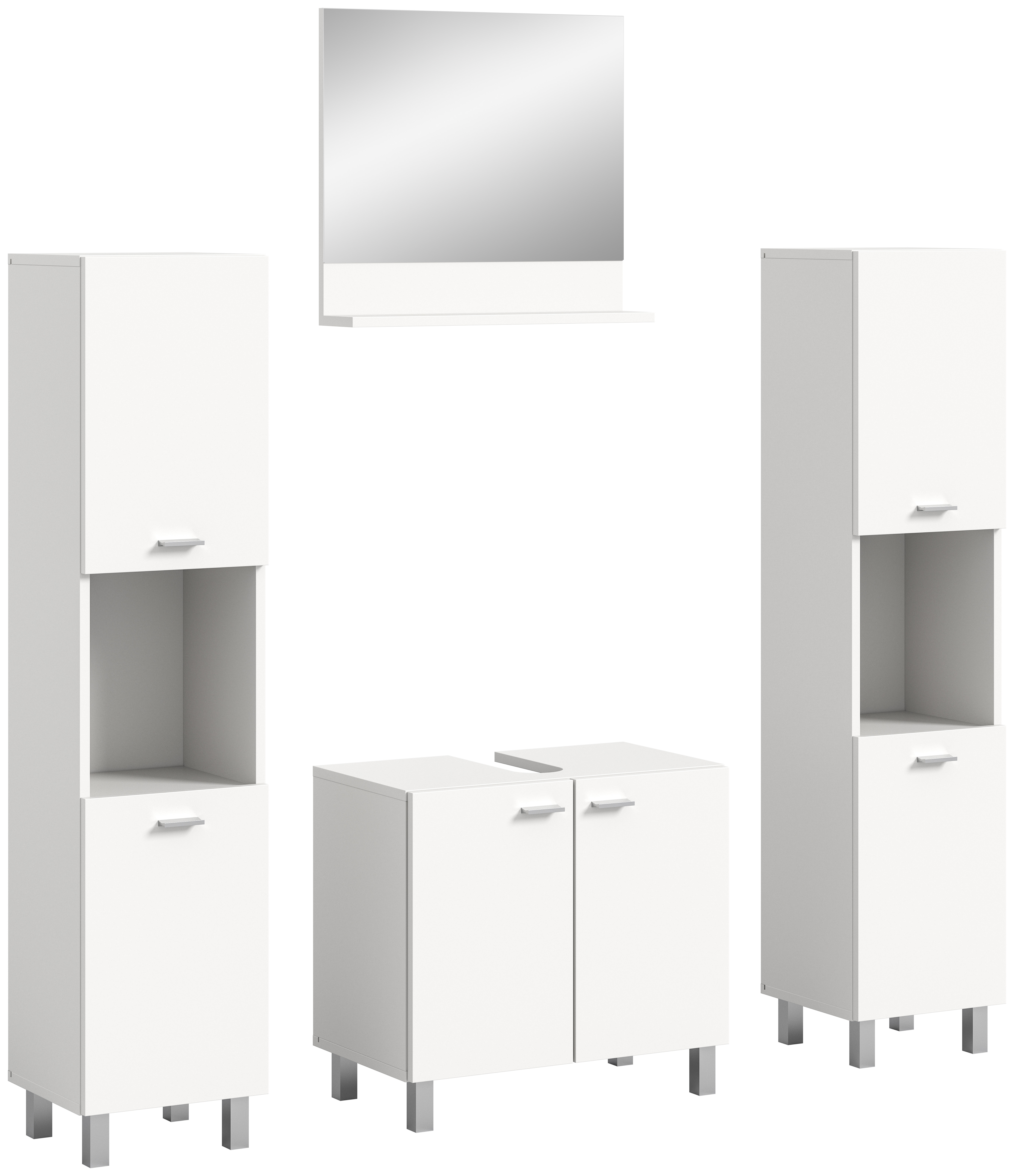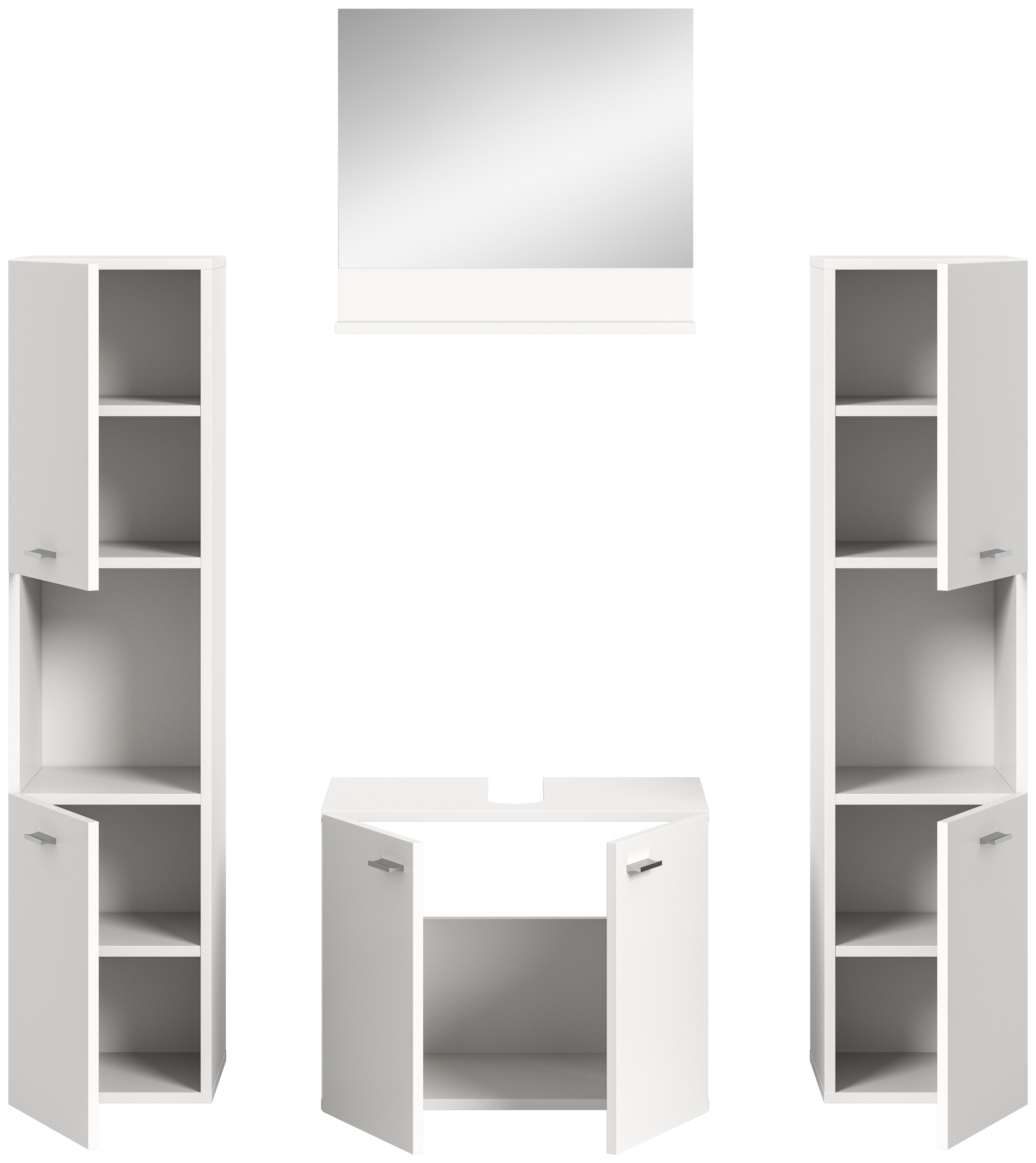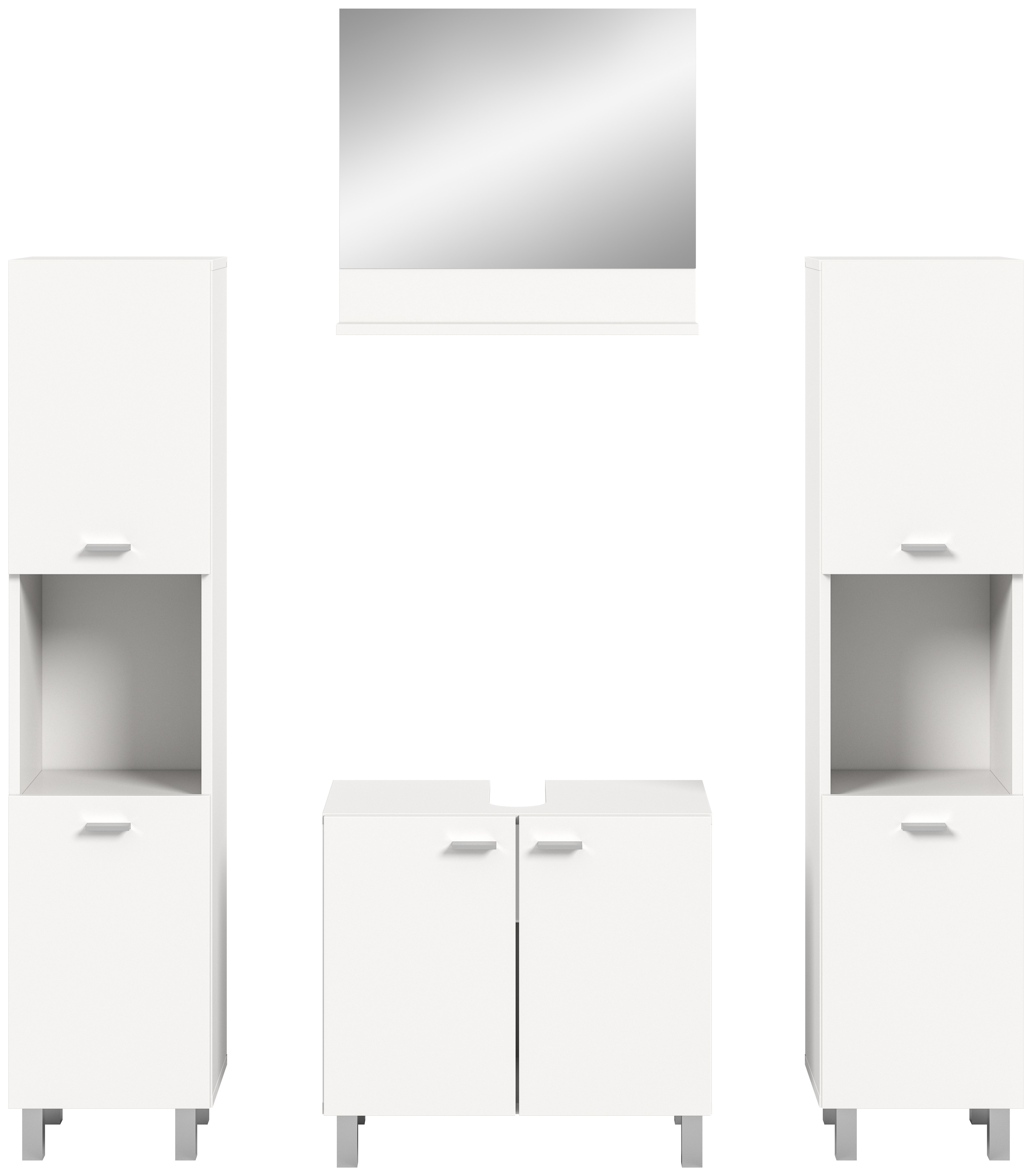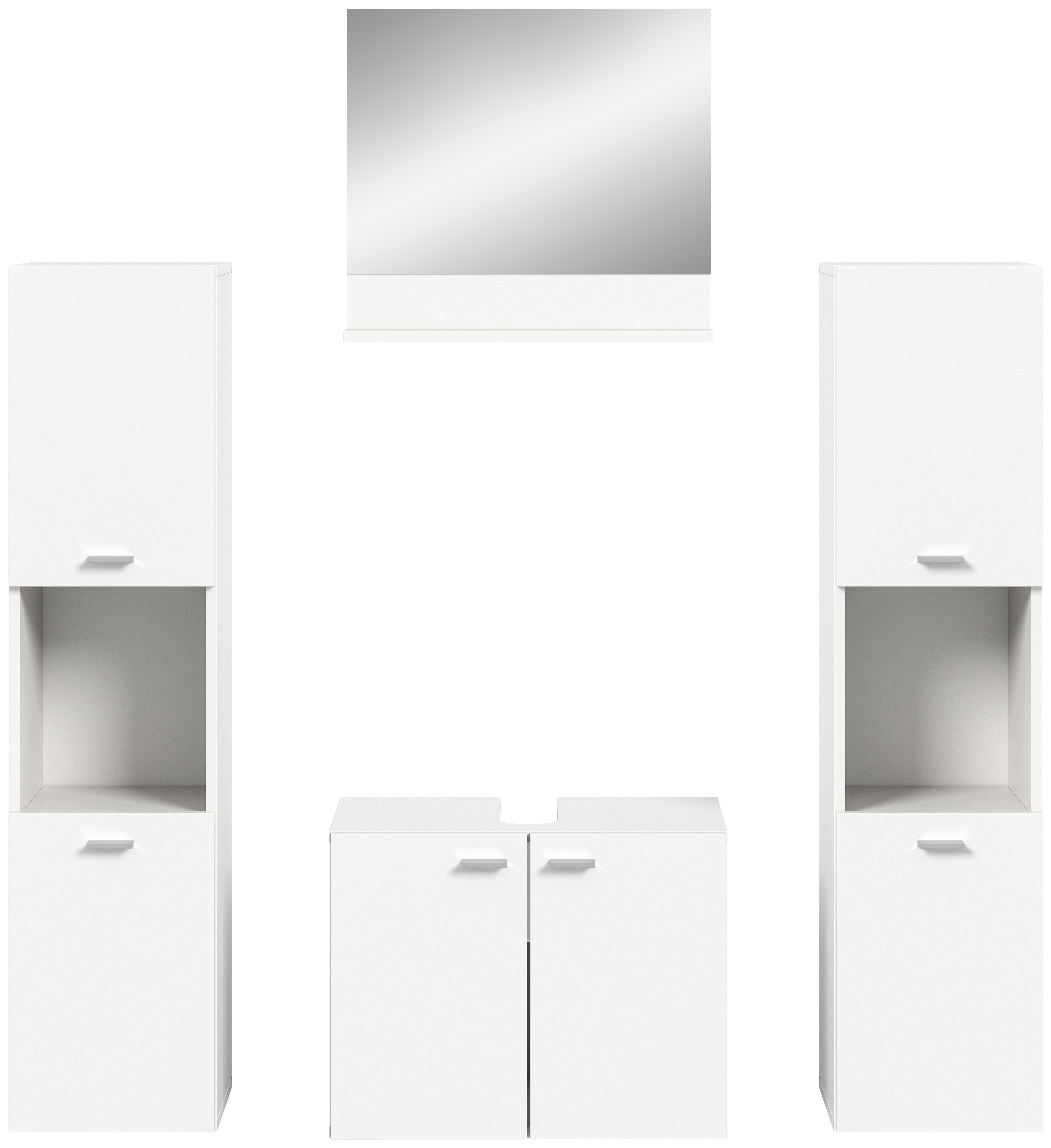 - Design/Stil: Schlichte und moderne Badkombination in strahlendem Weiß für ein helles und zeitgemäßes Erscheinungsbild im Badezimmer.