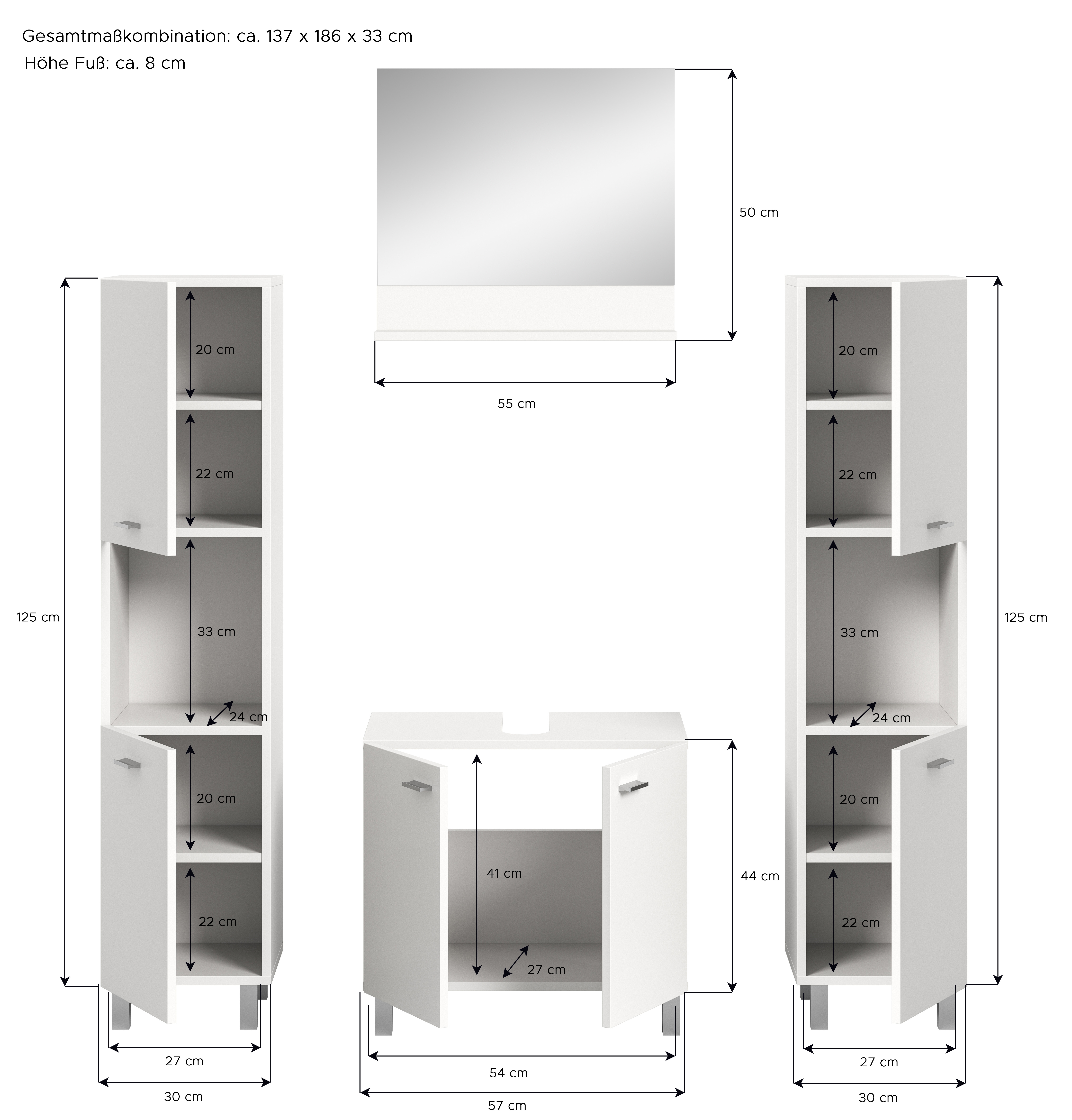 | Waschbeckenunterschrank | 57 | 44 | 33 |