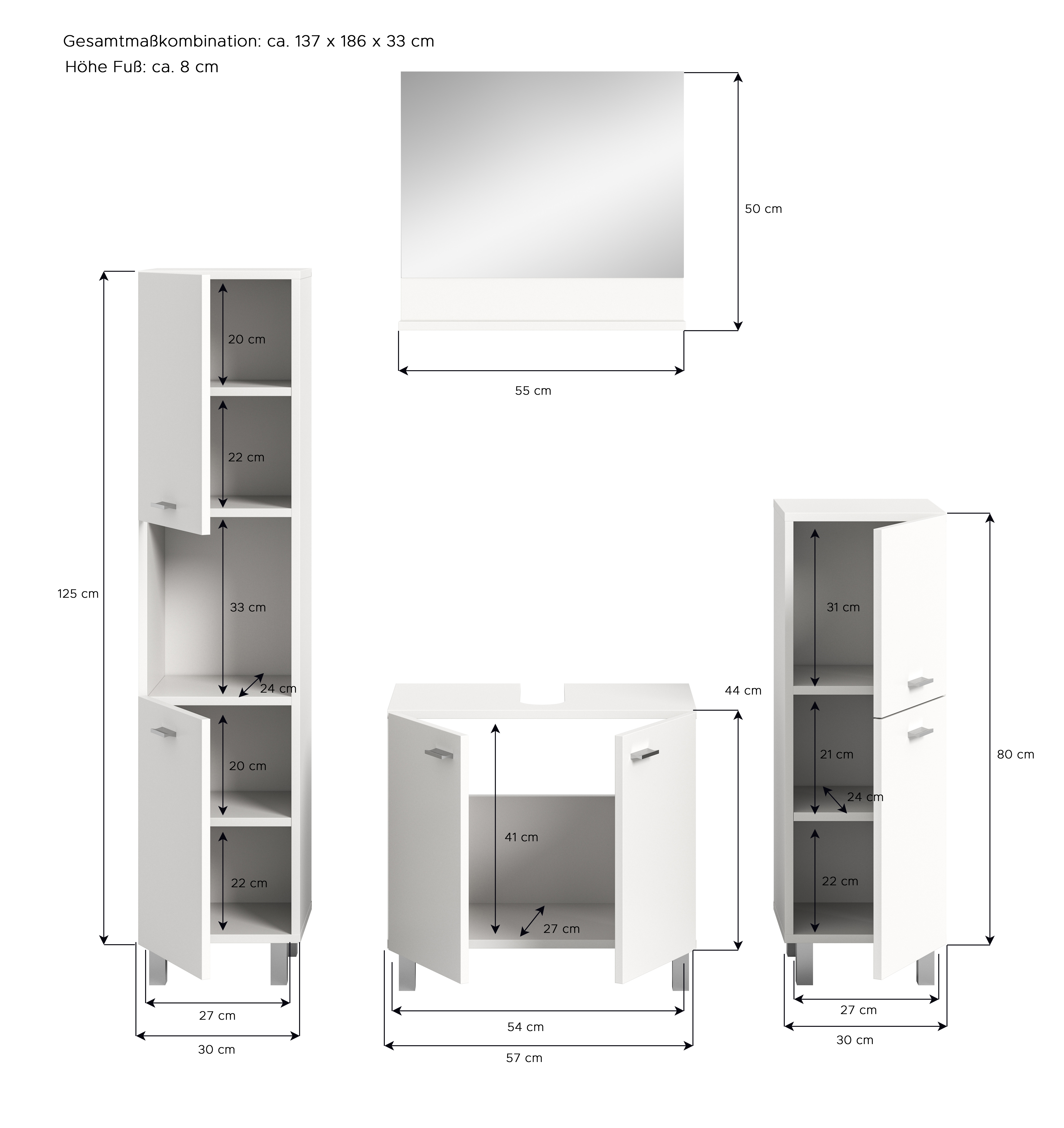 | Waschbeckenunterschrank | 57 | 44 | 33 |