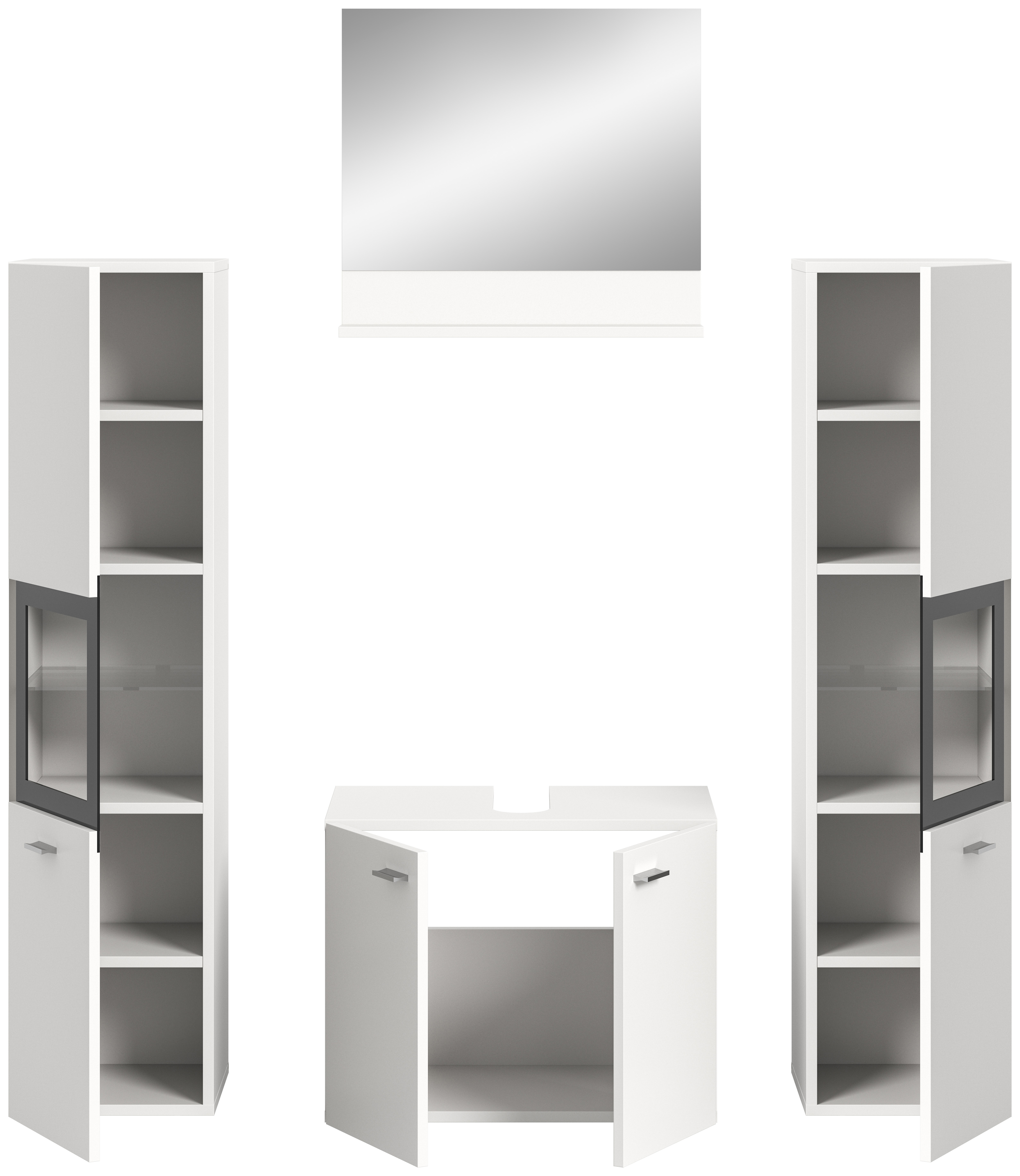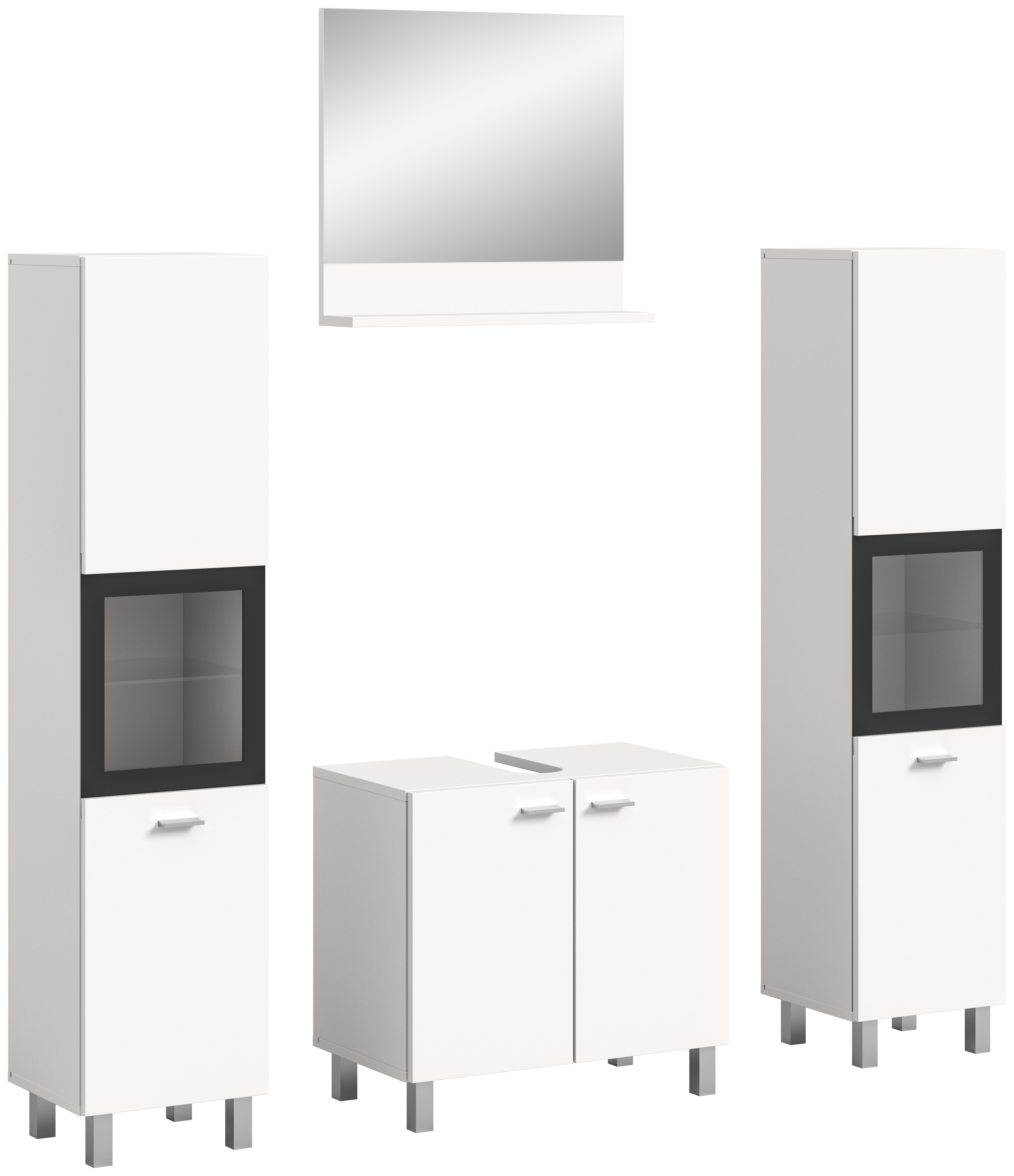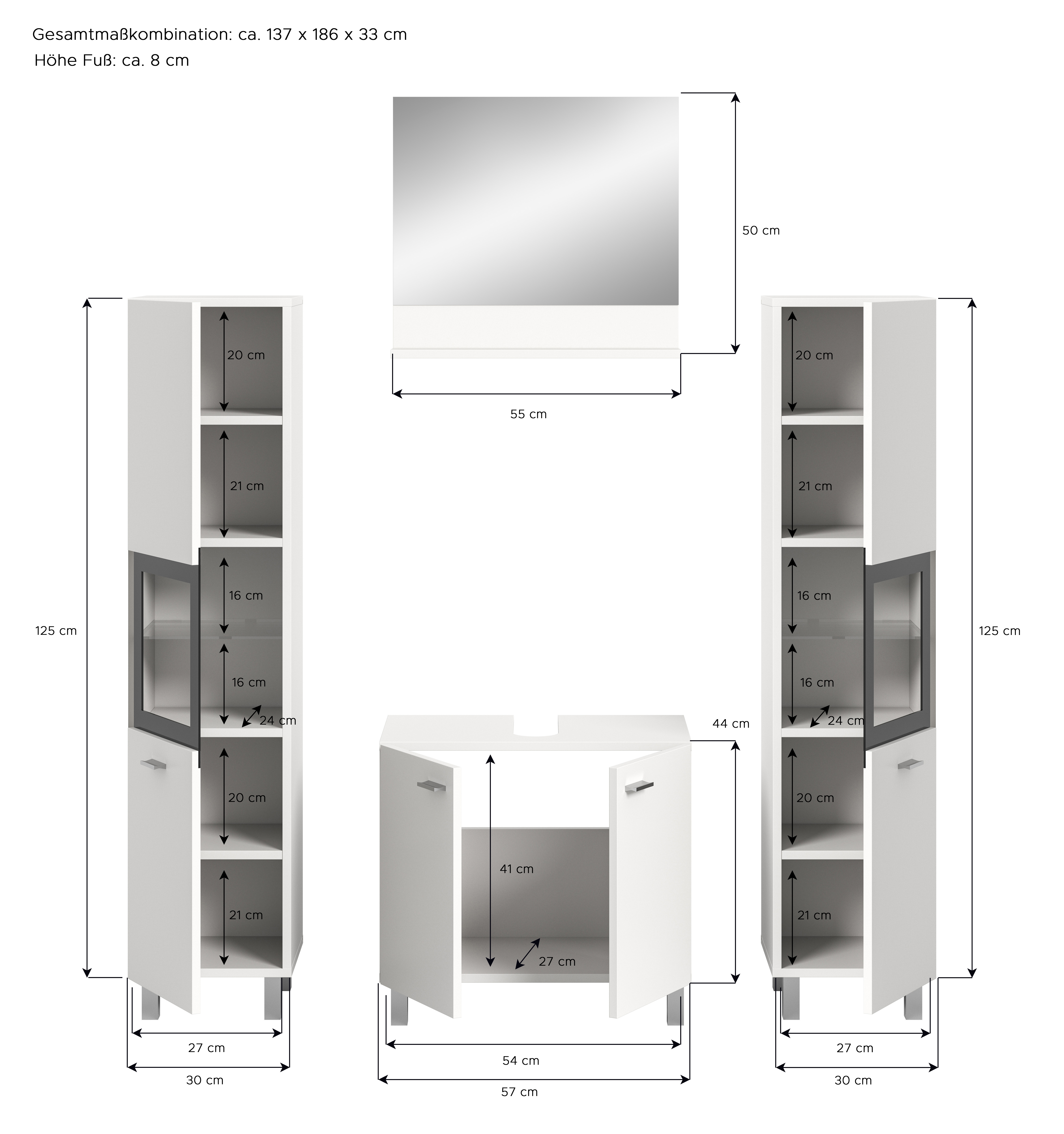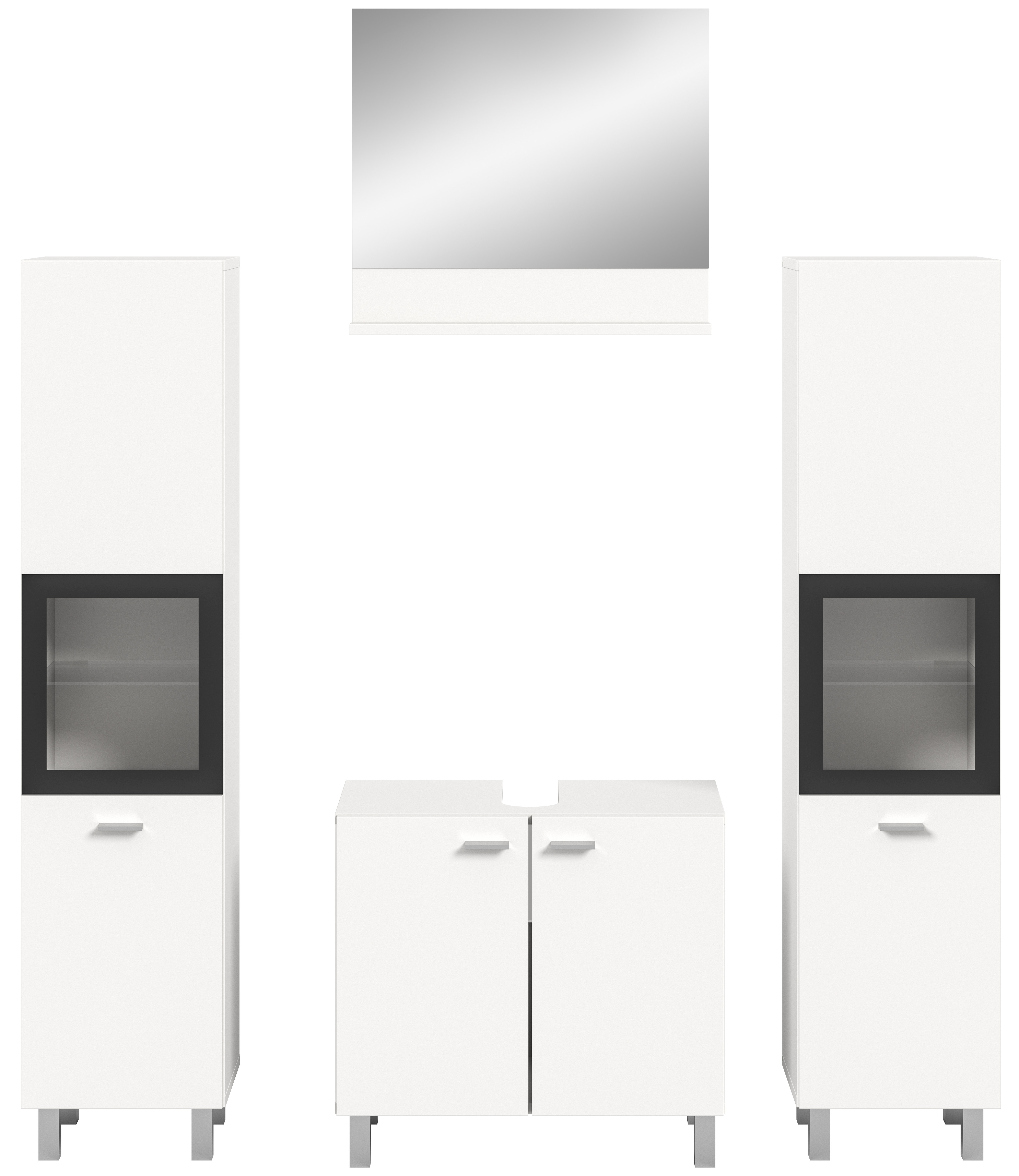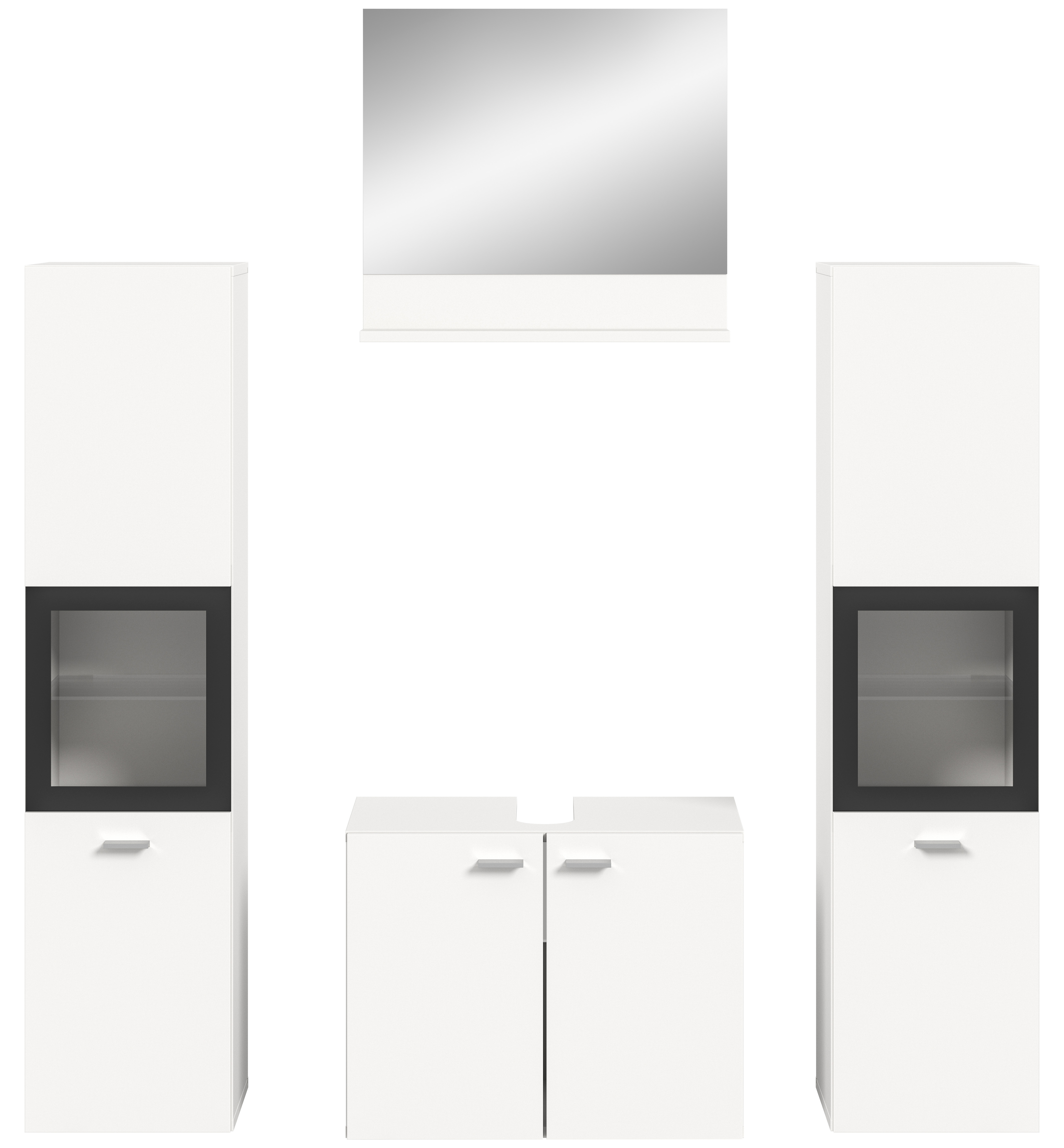• Design/Stil: Schlichte und moderne Badkombination in strahlendem Weiß  für ein helles und zeitgemäßes Erscheinungsbild im Badezimmer.