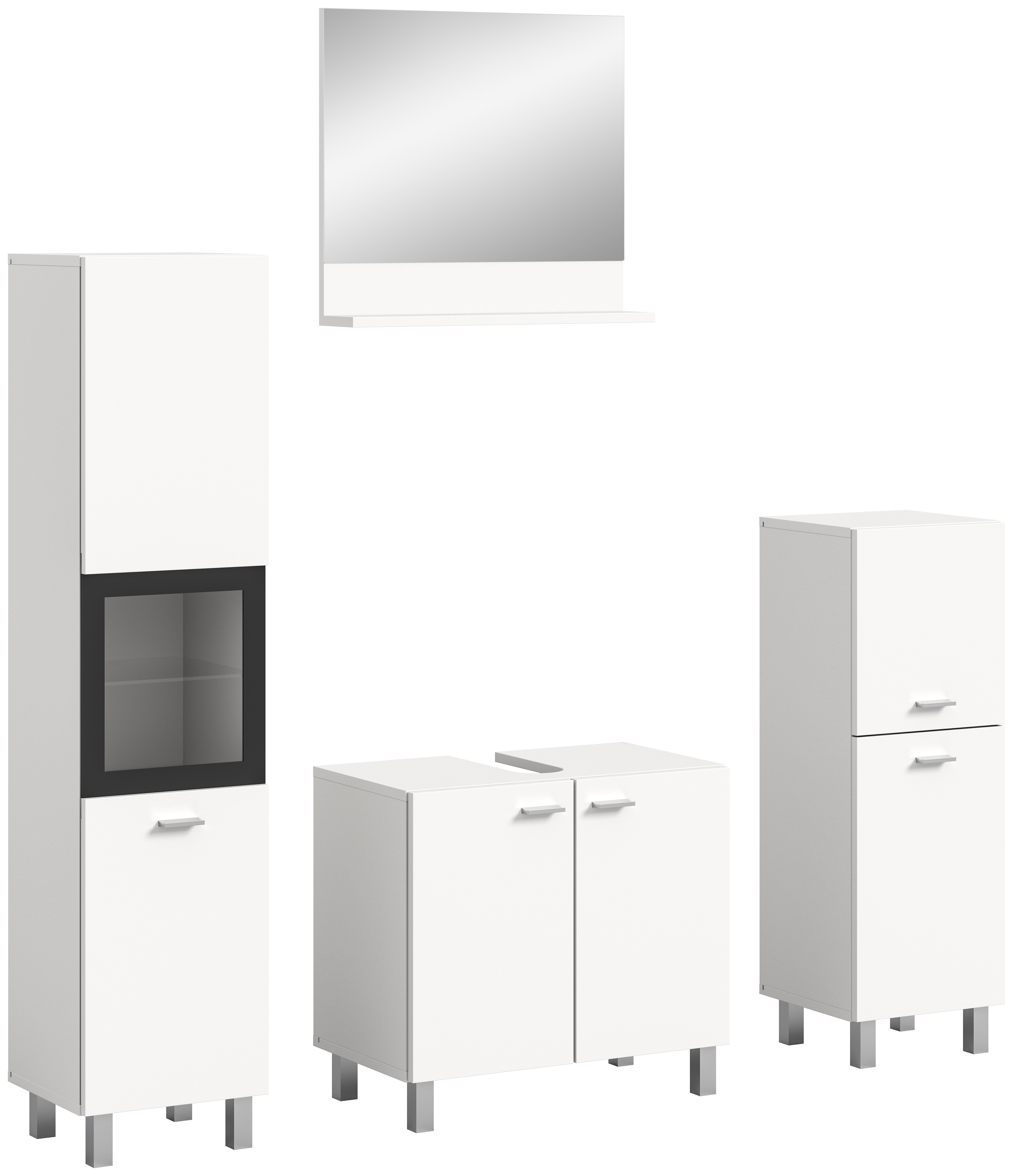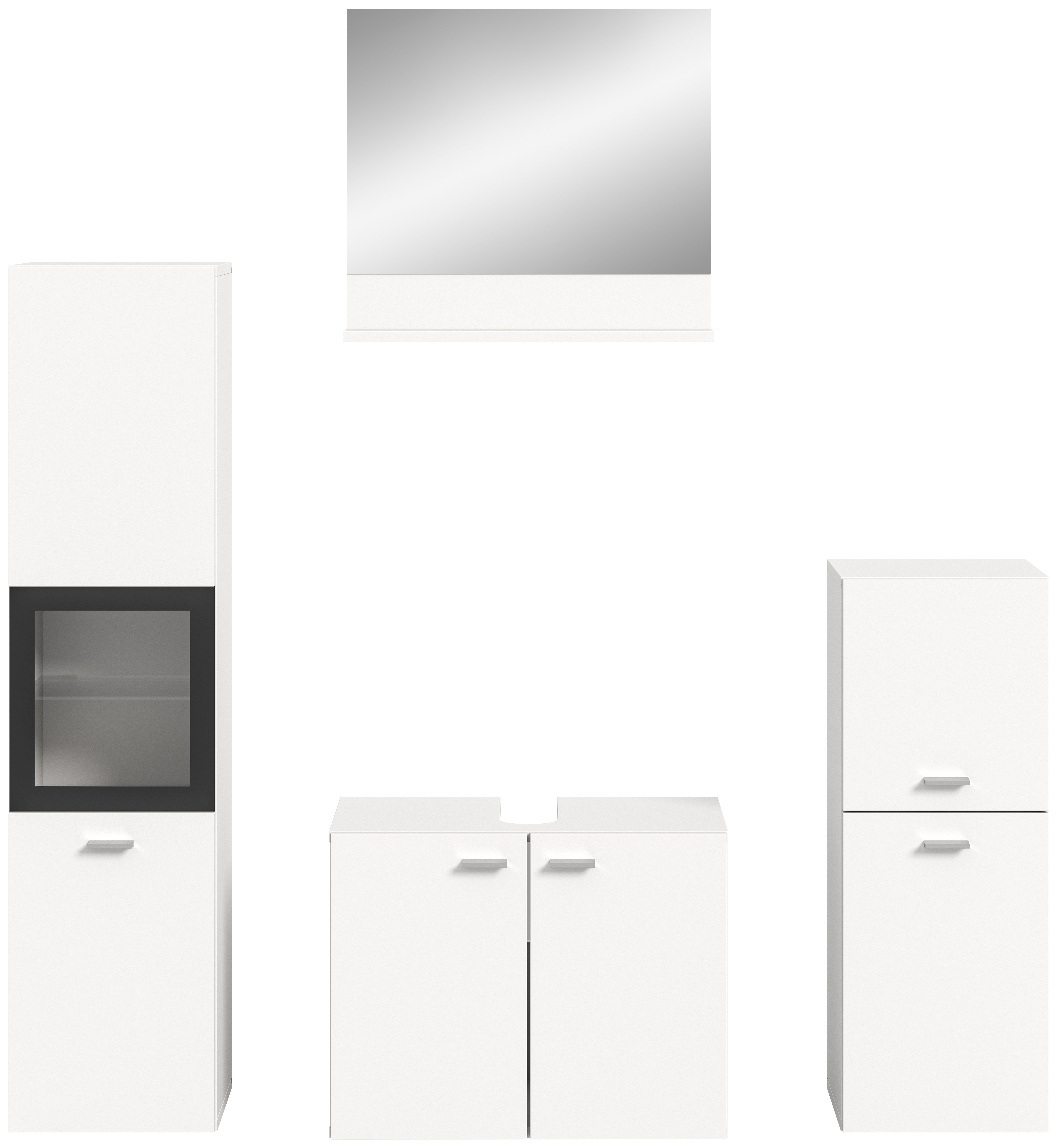 - Design/Stil: Schlichte und moderne Badkombination in strahlendem Weiß für ein helles und zeitgemäßes Erscheinungsbild im Badezimmer.
