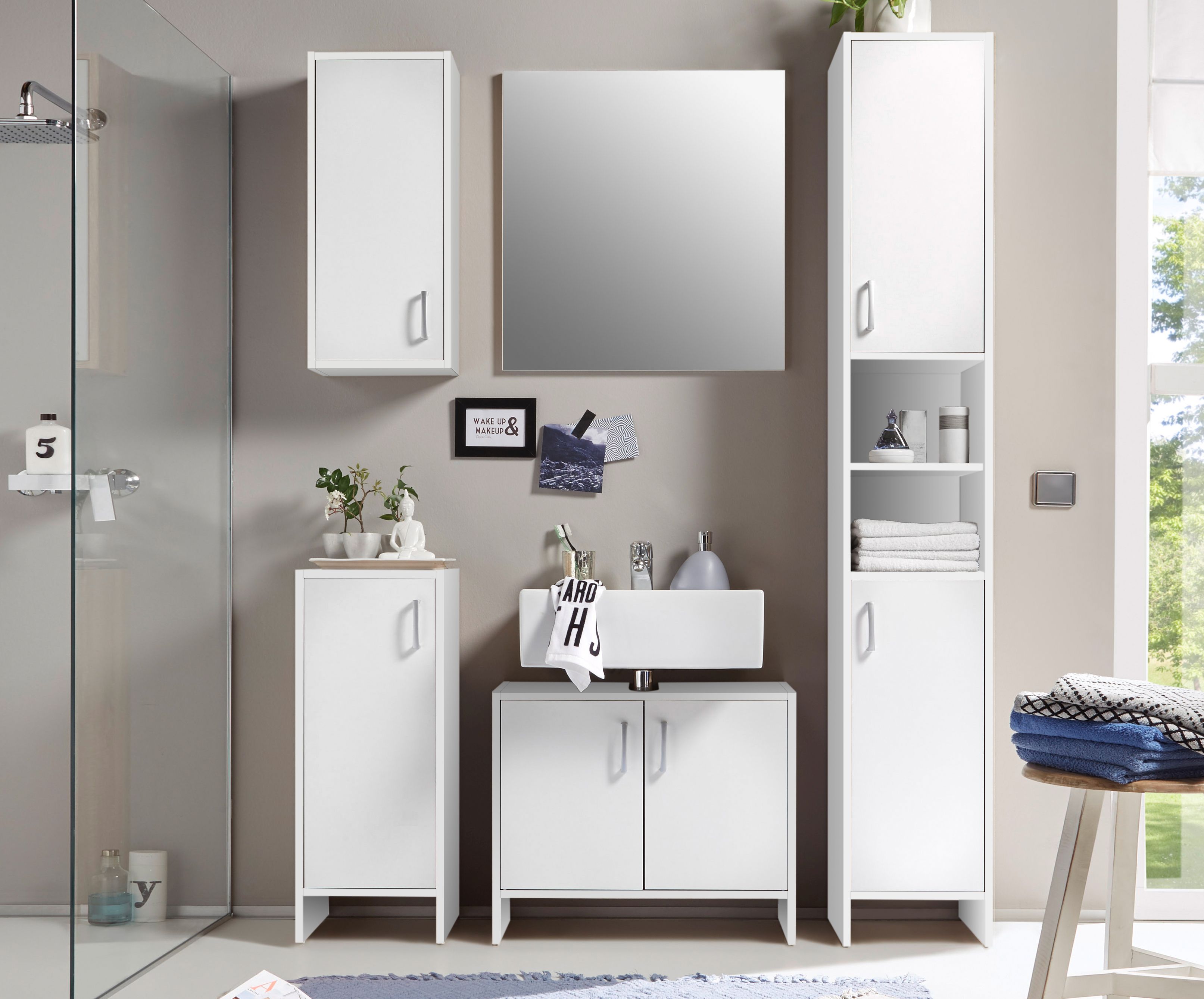 Front: Weiß, Spanplatte Melaminbeschichtung / Spiegel