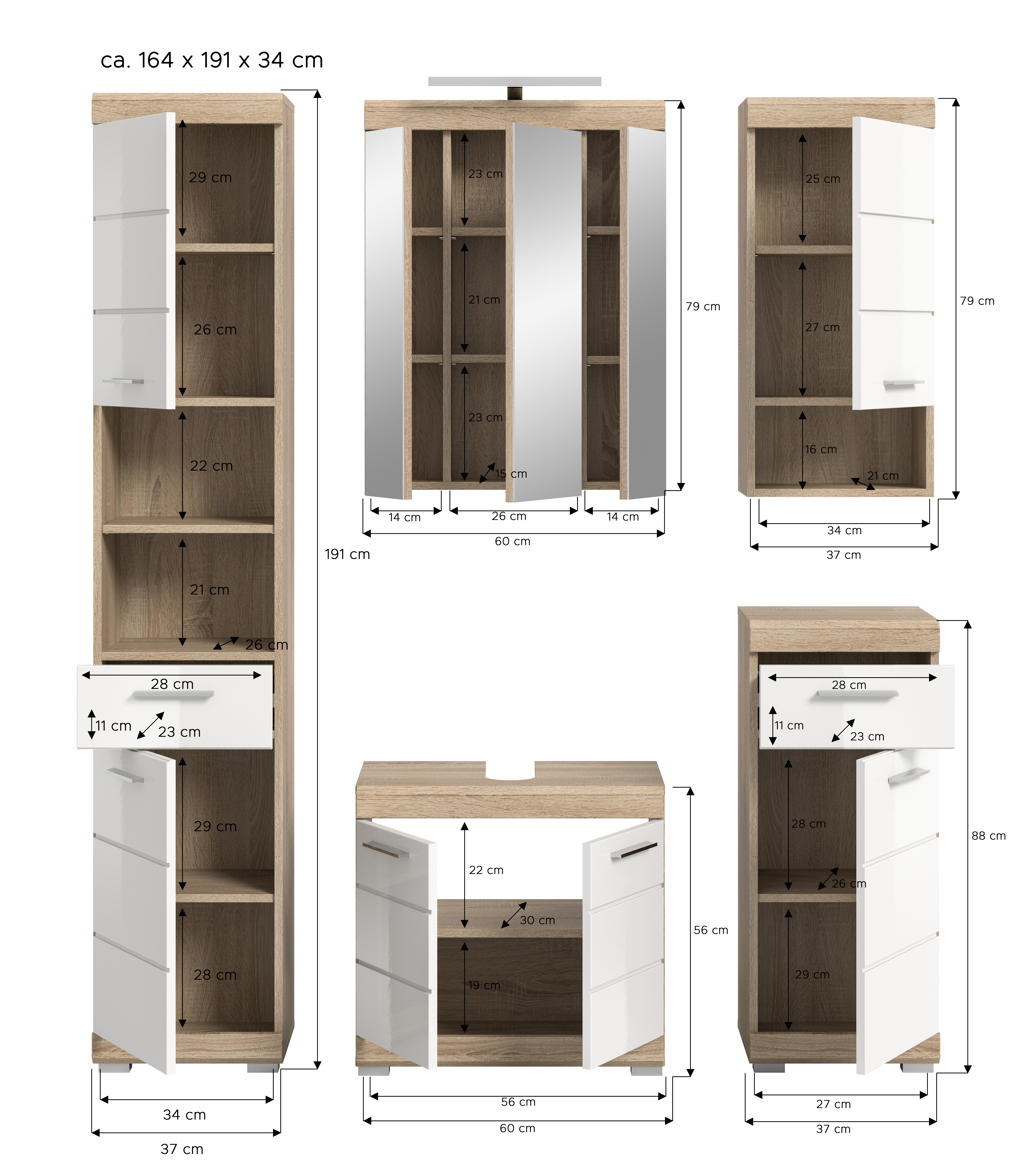 - Design/Stil: Die Kombination aus Sonoma Eiche hell und weißem Hochglanz tiefgezogenem Finish sorgt für ein modernes und ansprechendes Erscheinungsbild im Badezimmer oder Hauswirtschaftsraum.