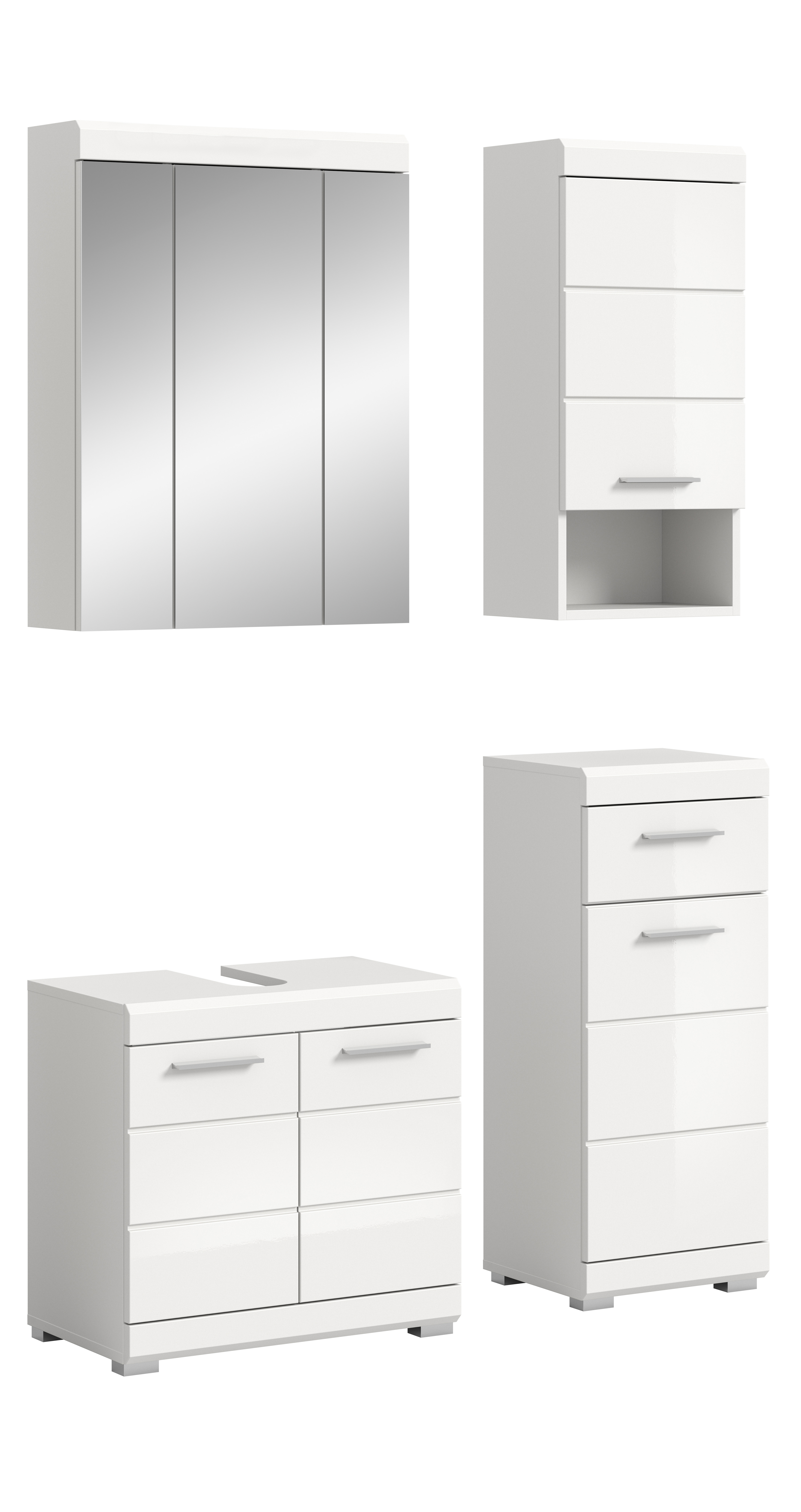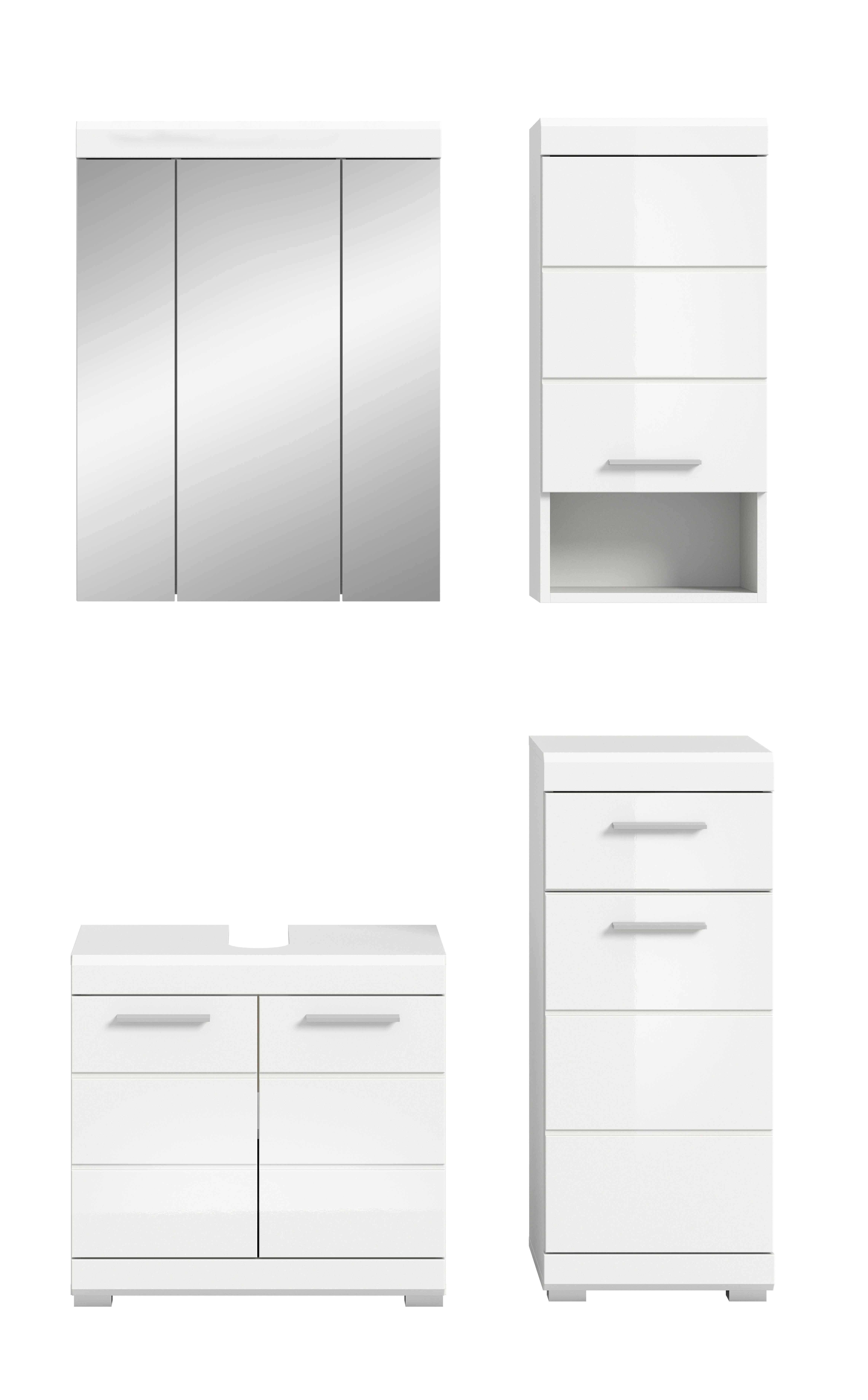 Verleihe deinem Badezimmer den ultimativen Style mit unserer Badkombination in angesagtem weiß Nachbildung und weißem Hochglanz tiefgezogenem Finish. Mit ihrem trendigen Design und der hochwertigen Verarbeitung setzt sie ein modernes Statement in deinem Zuhause. Entdecke jetzt die perfekte Verbindung von Coolness und Funktionalität für dein Badezimmer!