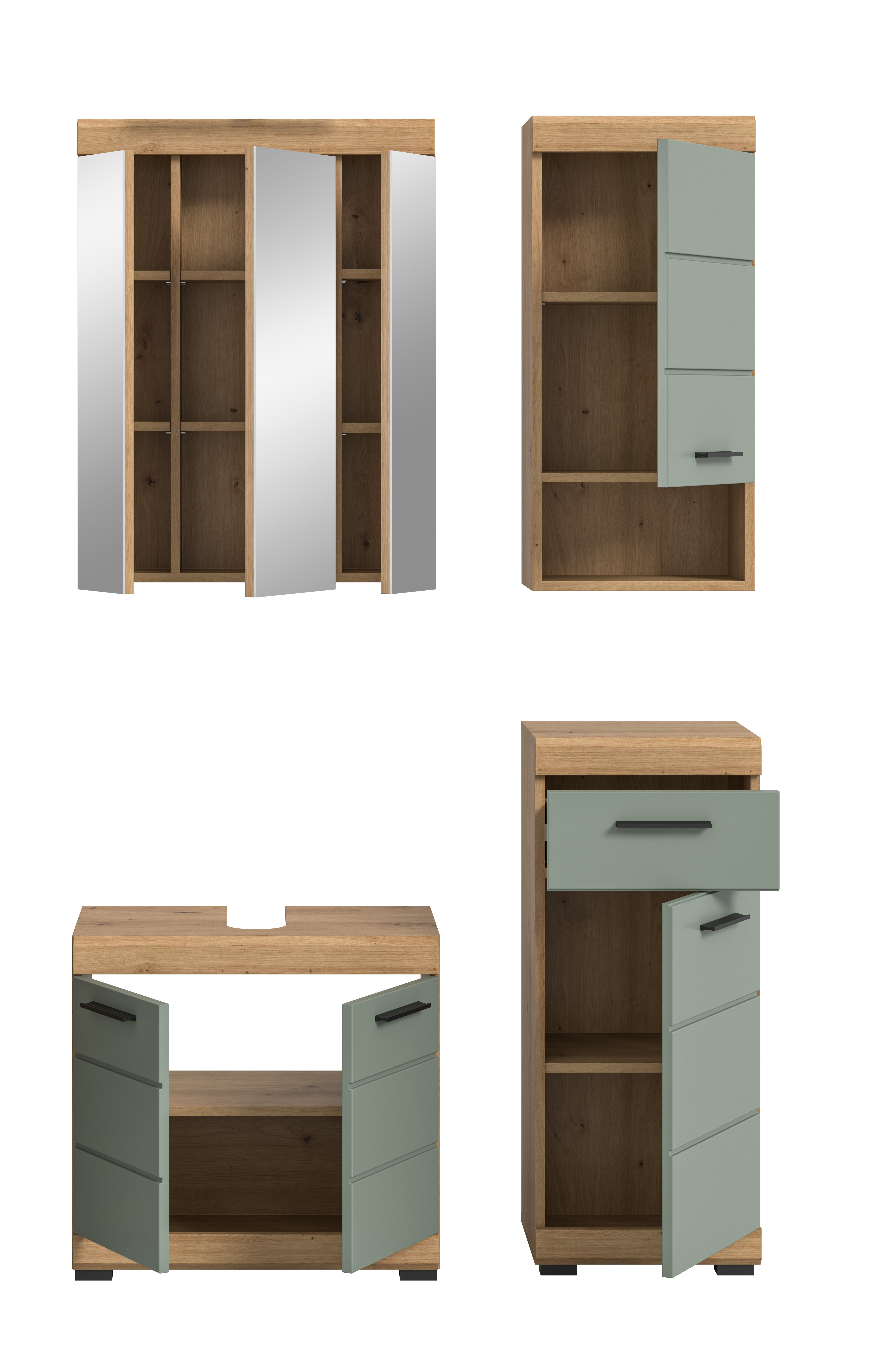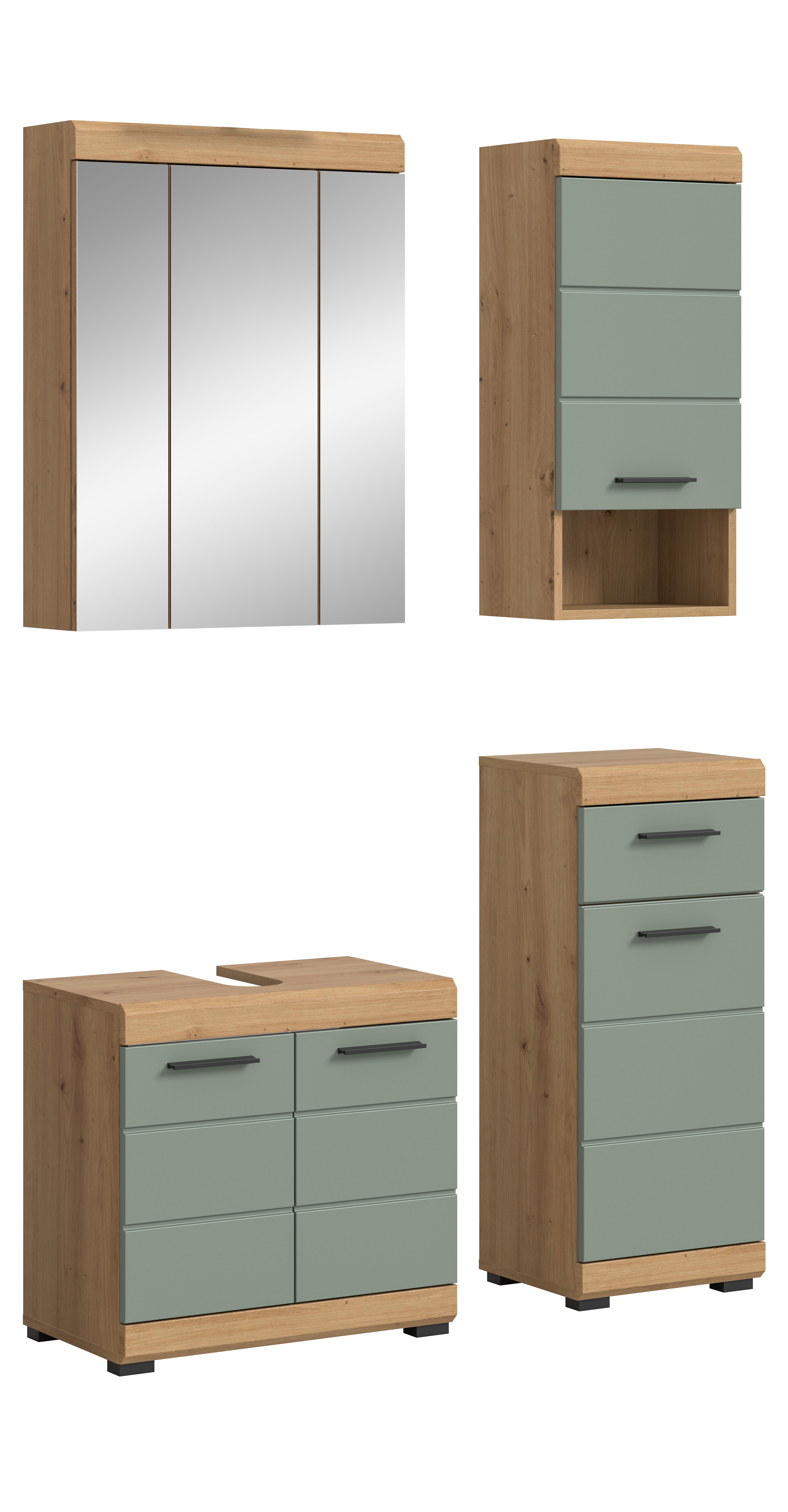 Verleihe deinem Badezimmer den ultimativen Style mit unserer Badkombination in angesagtem Salbei Nachbildung und Artisan Eiche Finish. Mit ihrem trendigen Design und der hochwertigen Verarbeitung setzt sie ein modernes Statement in deinem Zuhause. Entdecke jetzt die perfekte Verbindung von Coolness und Funktionalität für dein Badezimmer!