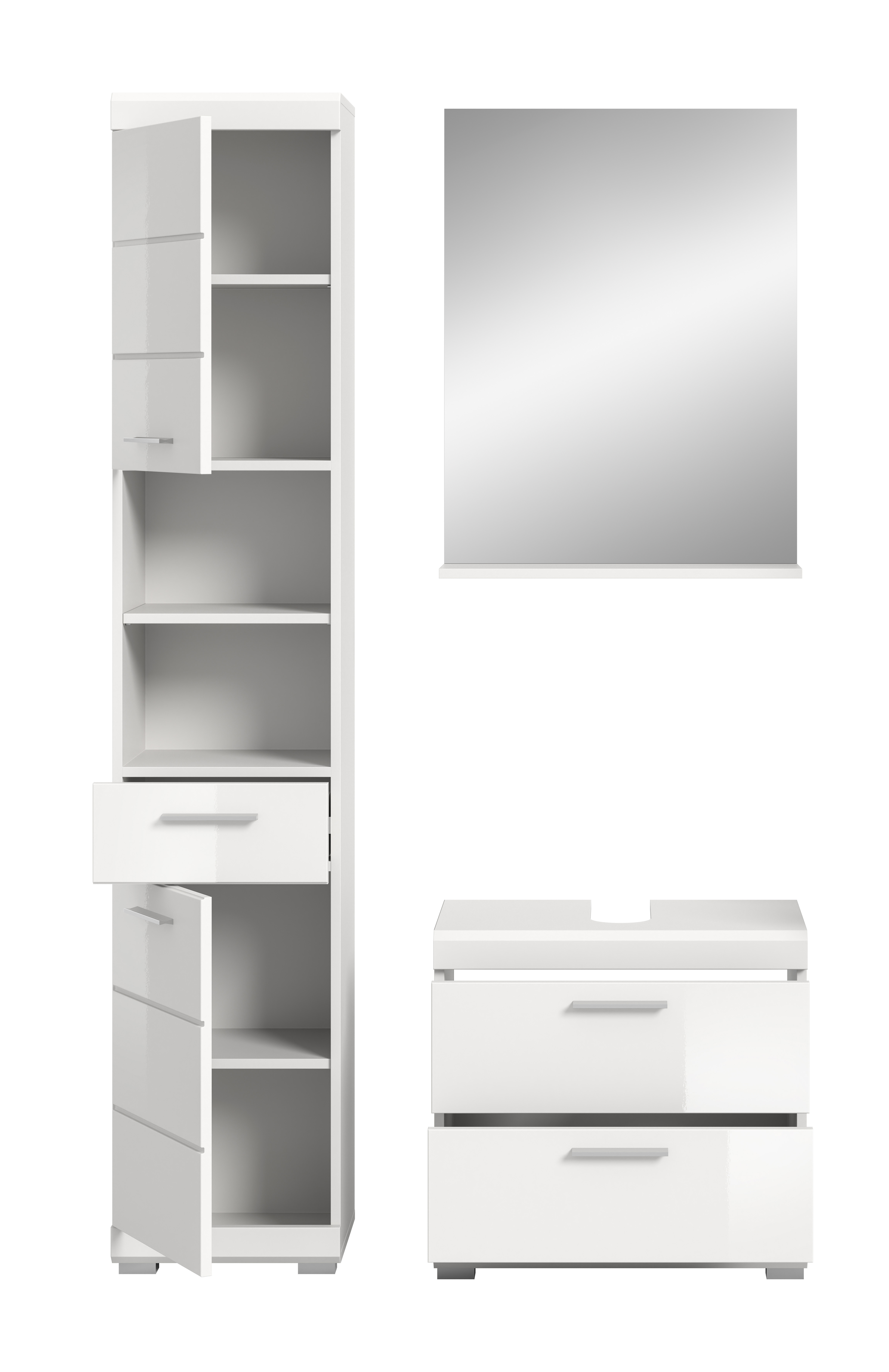 Verleihe deinem Badezimmer den ultimativen Style mit unserer Badkombination in angesagtem weiß Nachbildung und weißem Hochglanz tiefgezogenem Finish. Mit ihrem trendigen Design und der hochwertigen Verarbeitung setzt sie ein modernes Statement in deinem Zuhause. Entdecke jetzt die perfekte Verbindung von Coolness und Funktionalität für dein Badezimmer!