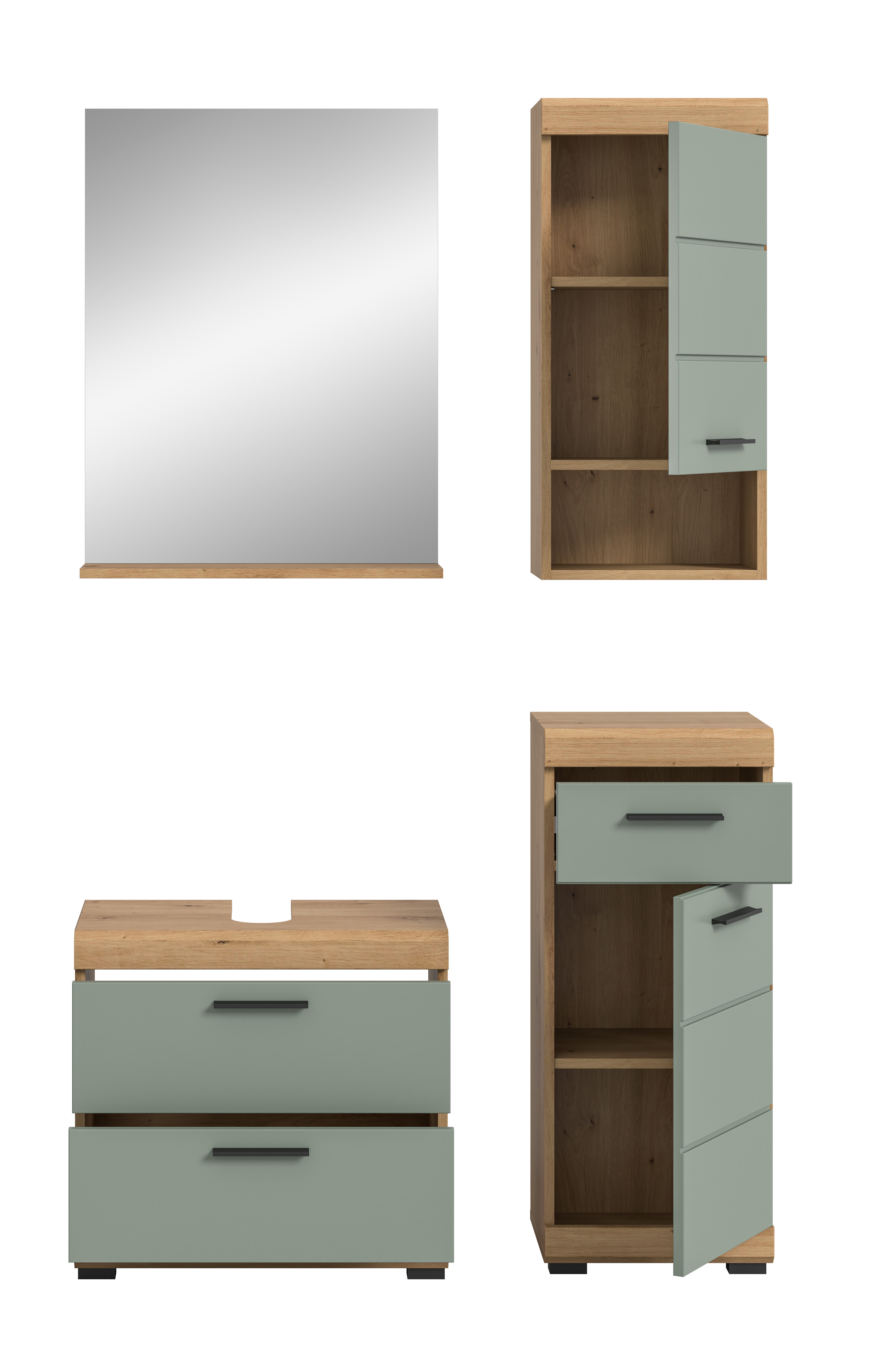 Verleihe deinem Badezimmer den ultimativen Style mit unserer Badkombination in angesagtem salbei Nachbildung und Artisan Eiche Nachbildung. Mit ihrem trendigen Design und der hochwertigen Verarbeitung setzt sie ein modernes Statement in deinem Zuhause. Entdecke jetzt die perfekte Verbindung von Coolness und Funktionalität für dein Badezimmer!