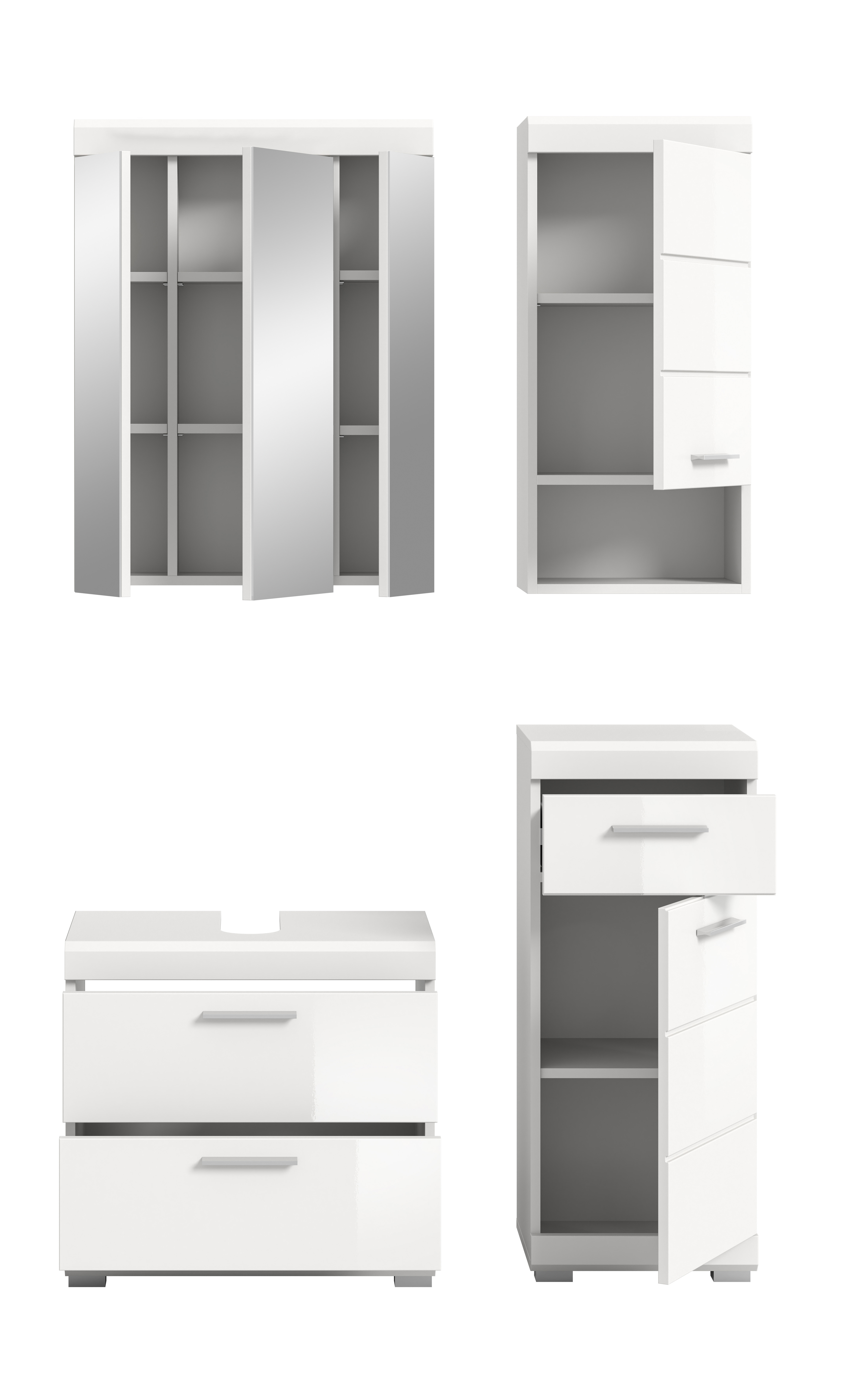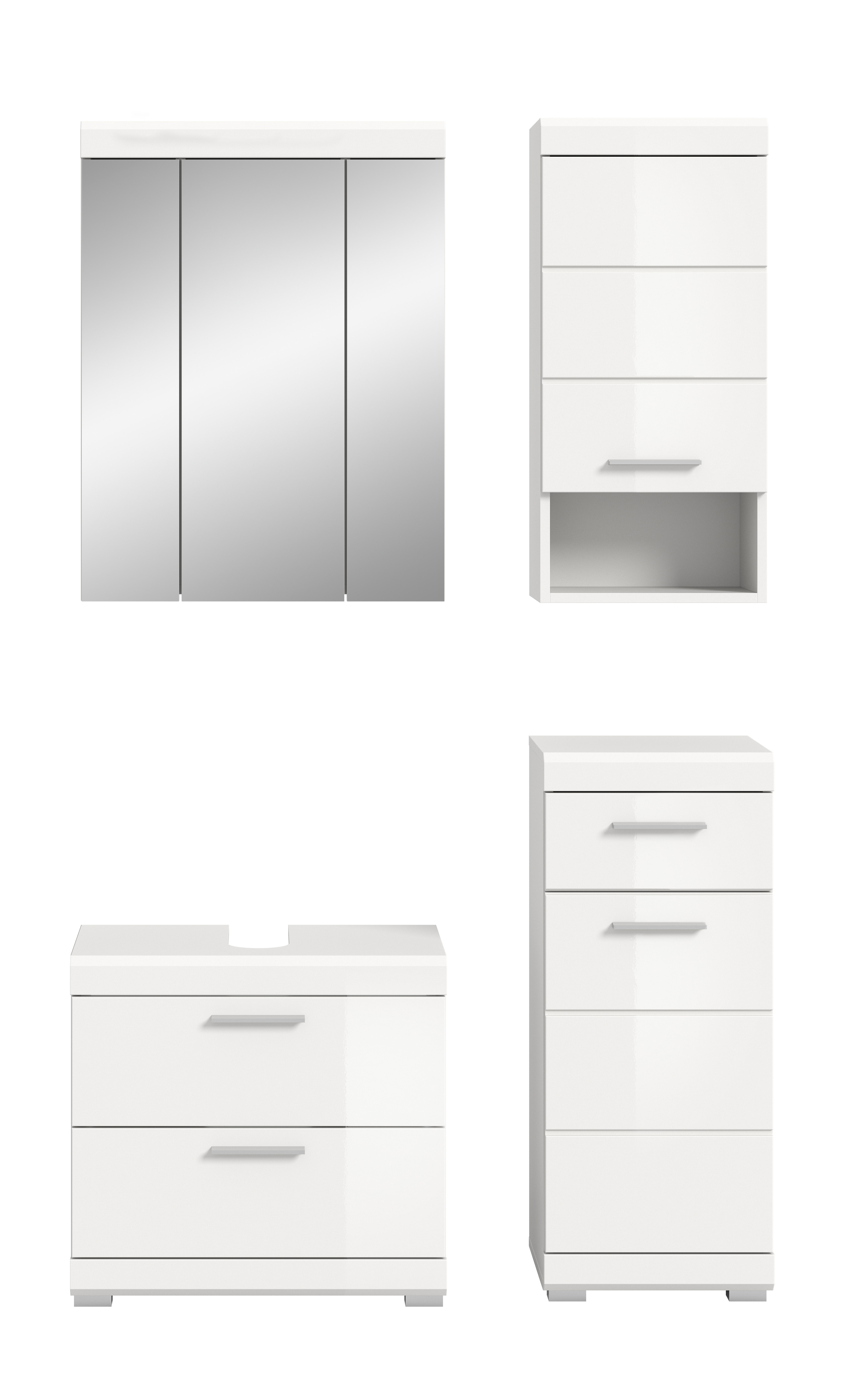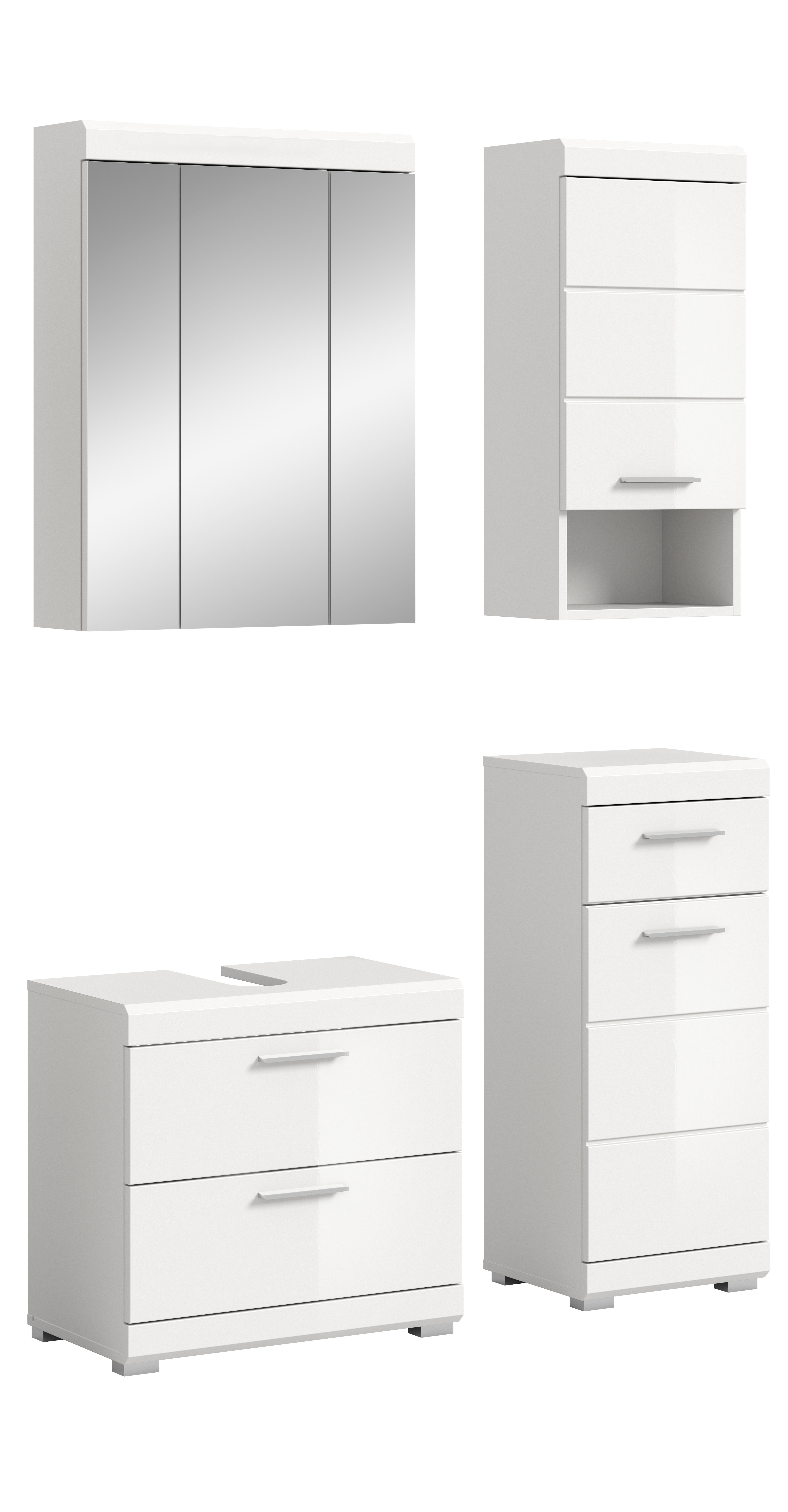 Verleihe deinem Badezimmer den ultimativen Style mit unserer Badkombination in angesagtem weiß Nachbildung und weißem Hochglanz tiefgezogenem Finish. Mit ihrem trendigen Design und der hochwertigen Verarbeitung setzt sie ein modernes Statement in deinem Zuhause. Entdecke jetzt die perfekte Verbindung von Coolness und Funktionalität für dein Badezimmer!