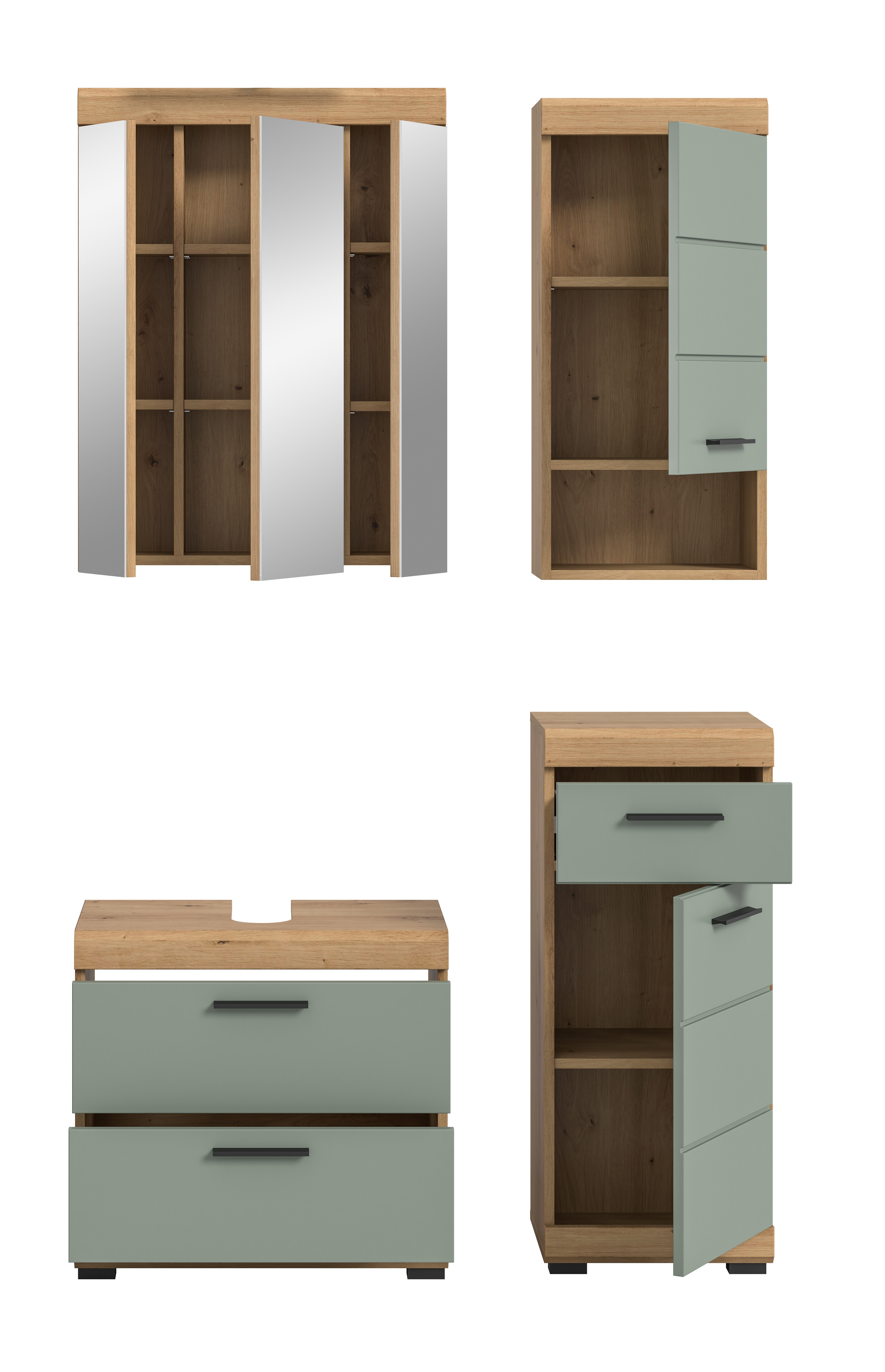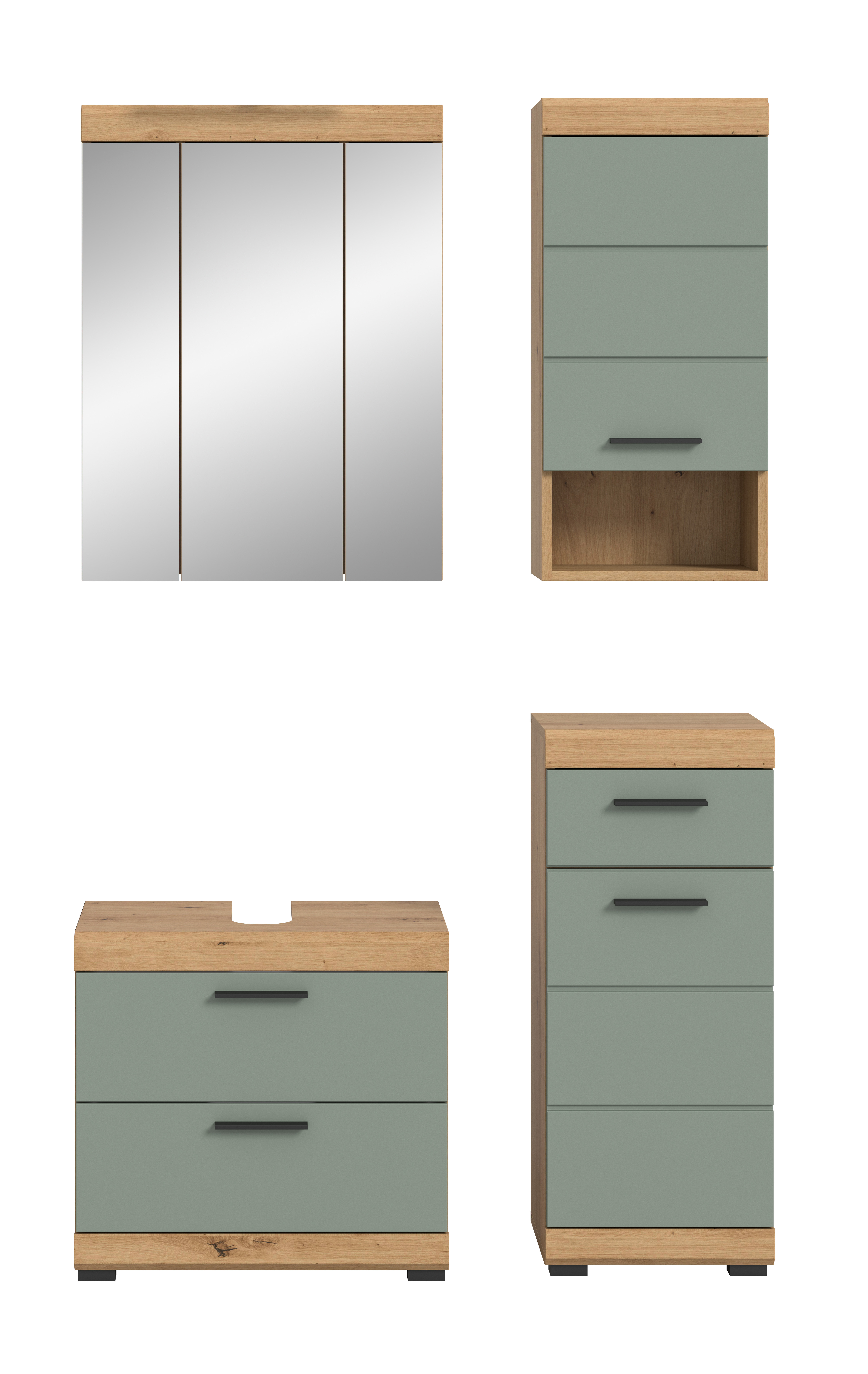 Verleihe deinem Badezimmer den ultimativen Style mit unserer Badkombination in angesagter salbei Nachbildung und Artisan Eiche Nachbildung. Mit ihrem trendigen Design und der hochwertigen Verarbeitung setzt sie ein modernes Statement in deinem Zuhause. Entdecke jetzt die perfekte Verbindung von Coolness und Funktionalität für dein Badezimmer!