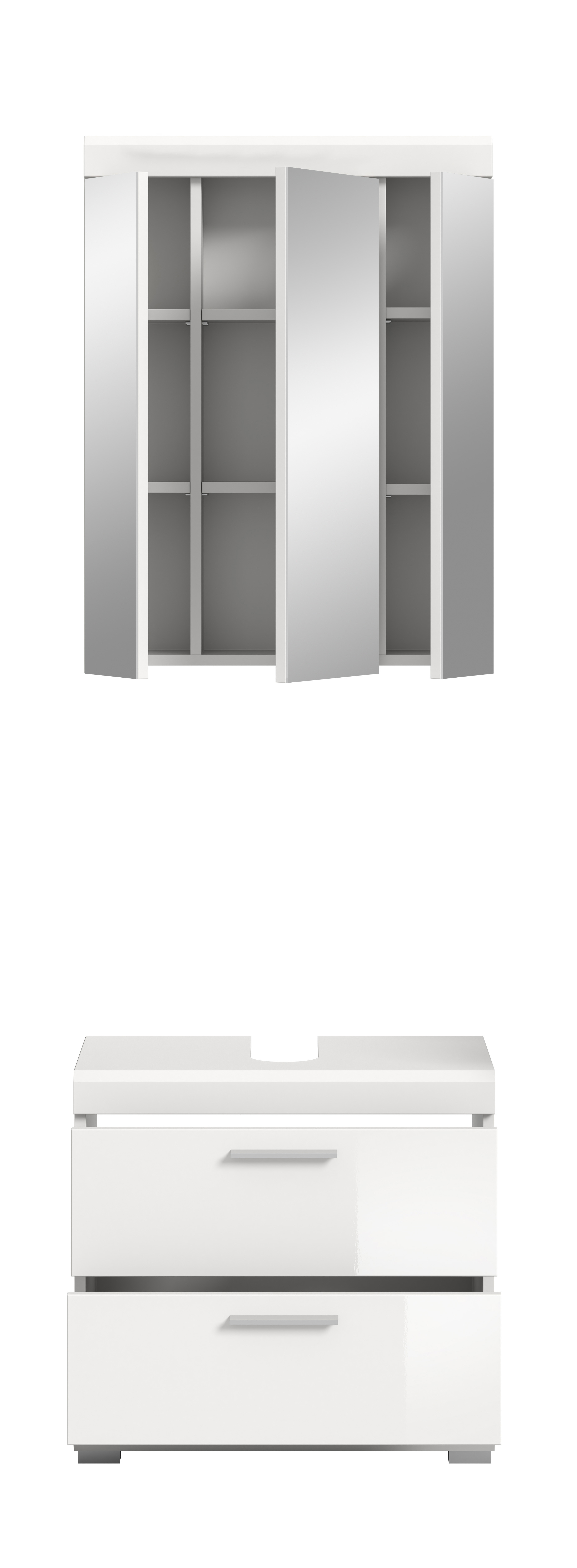 Verleihe deinem Badezimmer den ultimativen Style mit unserer Badkombination in angesagtem weiß Nachbildung und weißem Hochglanz tiefgezogenem Finish. Mit ihrem trendigen Design und der hochwertigen Verarbeitung setzt sie ein modernes Statement in deinem Zuhause. Entdecke jetzt die perfekte Verbindung von Coolness und Funktionalität für dein Badezimmer!