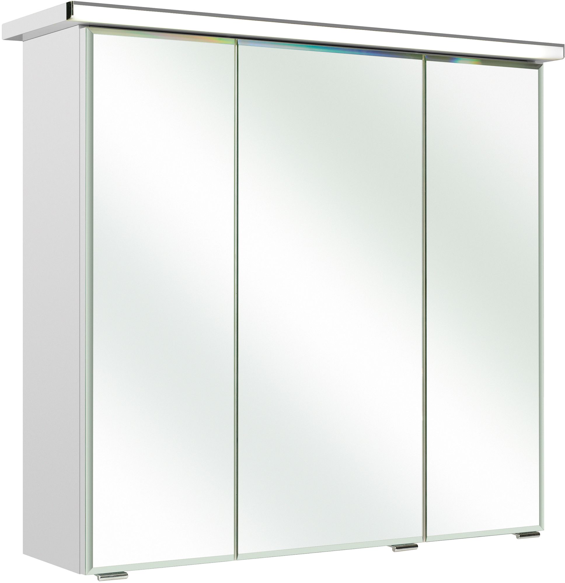 1 Spiegelschrank mit 3 Spiegeltüren, 6 Glaseinlegeböden, inklusive LED-Profil, mit Schalter/Steckdose