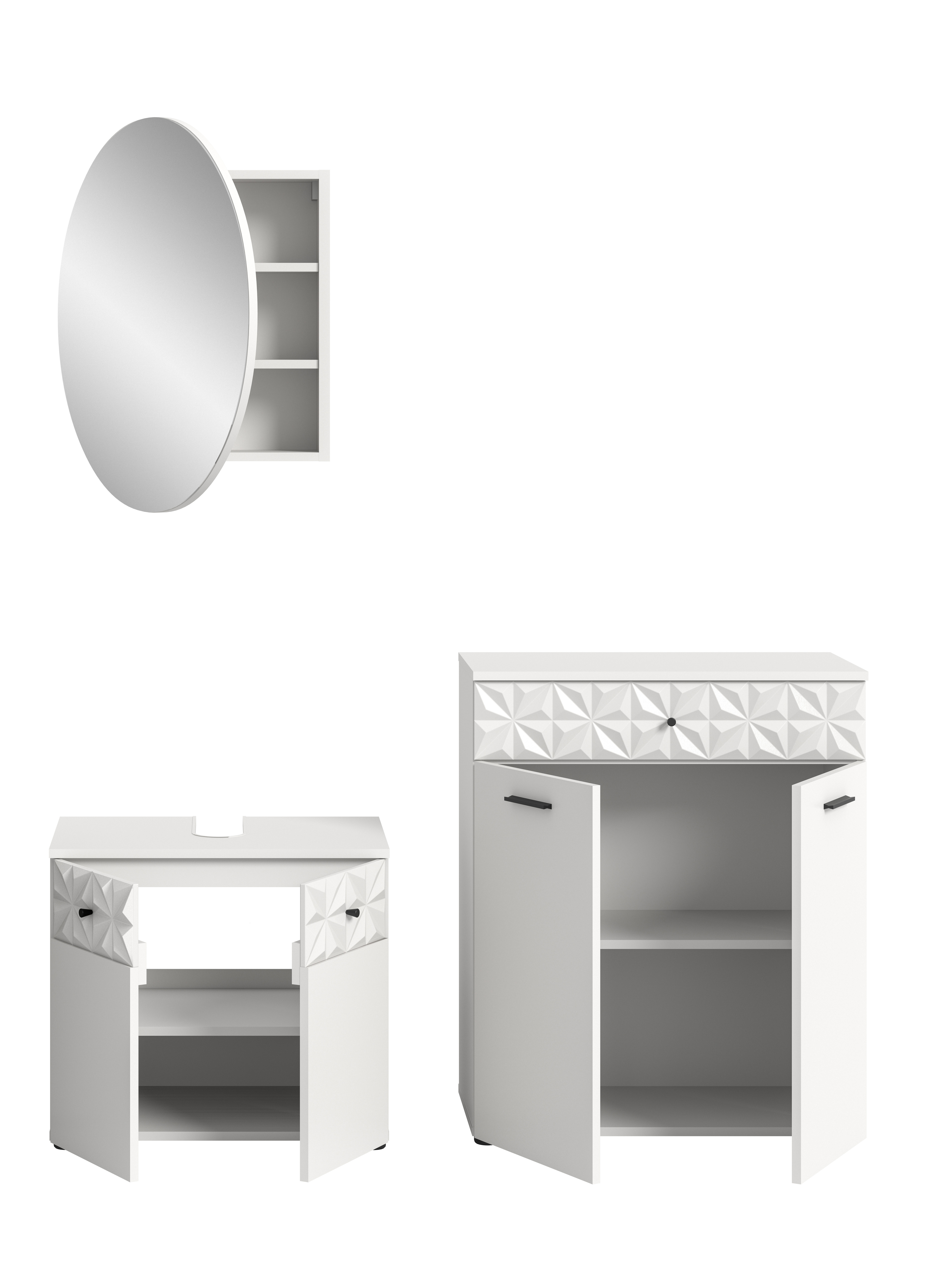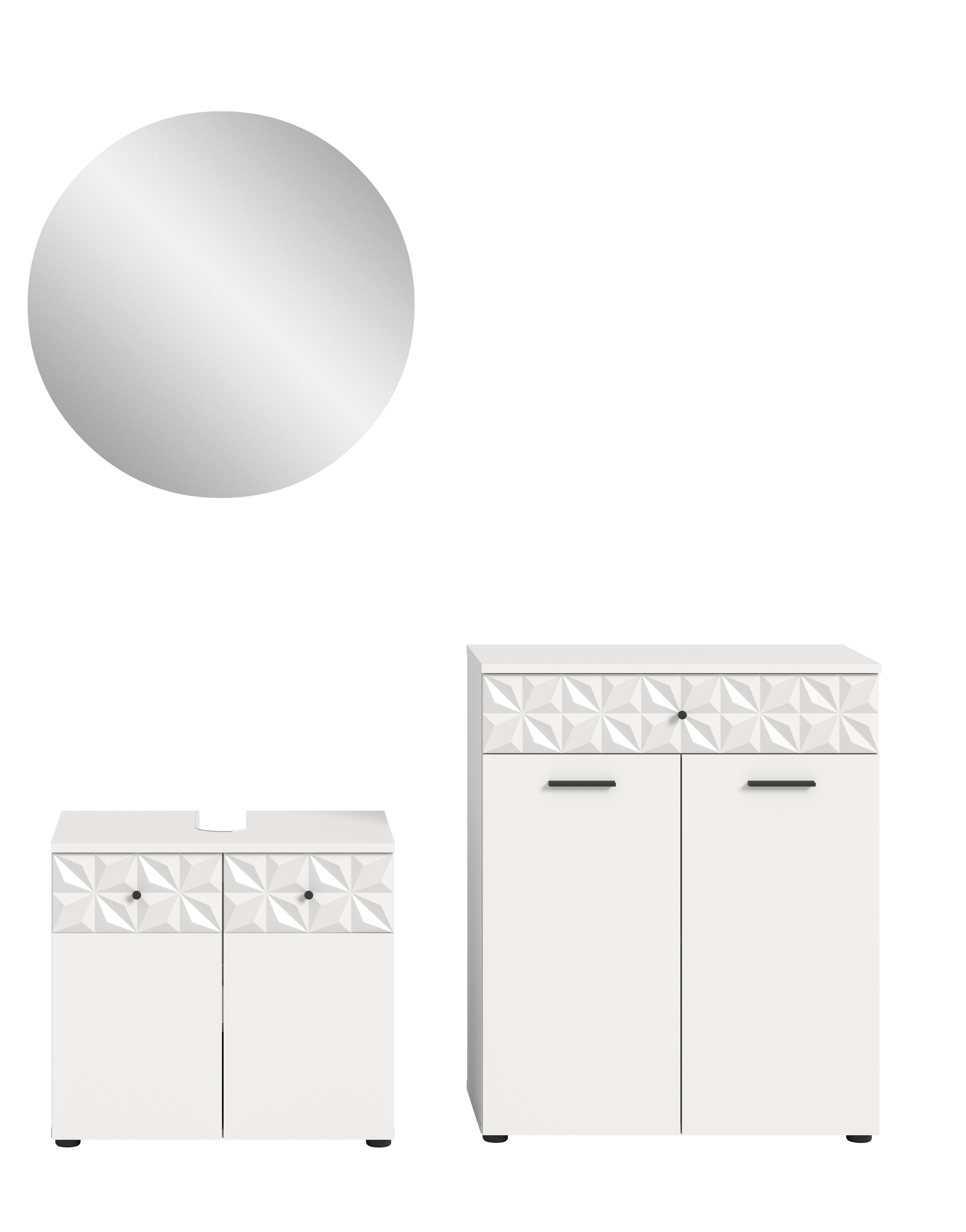 Die Badkombination in weißer Nachbildung verbindet modernes Design mit hoher Funktionalität und nachhaltiger Verarbeitung. Perfekt geeignet, um Ihr Badezimmer stilvoll zu gestalten. Diese stilvolle Badkombination bringt Ordnung und Eleganz in Ihr Badezimmer und unterstützt gleichzeitig einen nachhaltigen Lebensstil. Kombinieren Sie modernes Design mit praktischen Funktionen für eine Wohlfühloase in Ihrem Zuhause!