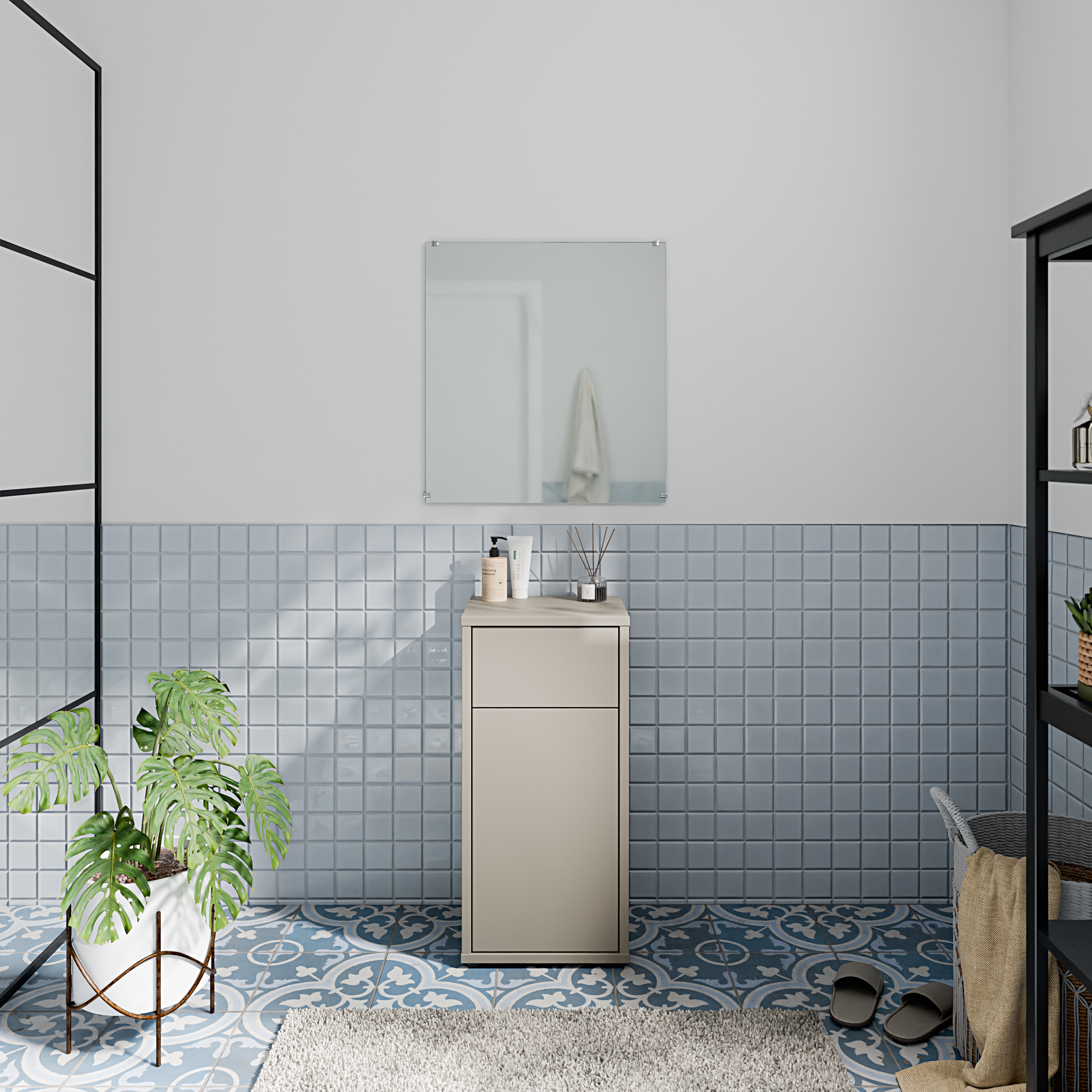 Diese Badkommode in der Farbgebung Taupe (U88) überzeugt mit kompakter Form und praktischer Ausstattung. Hinter der Tür mit einem Einlegeboden sowie in einem zusätzlichen Schubkasten lassen sich Pflegeartikel, Handtücher oder Reinigungsutensilien ordentlich und griffbereit verstauen. Das schlichte, einheitliche Design fügt sich harmonisch in moderne Bäder ein und lässt sich leicht mit weiteren Badmöbeln kombinieren. Durch ihre platzsparende Bauweise eignet sich die Kommode auch ideal für kleinere Räume. Eine funktionale Lösung für den täglichen Gebrauch - zum günstigen Preis bei MEGA Möbel, online oder vor Ort in Ihrer Filiale.