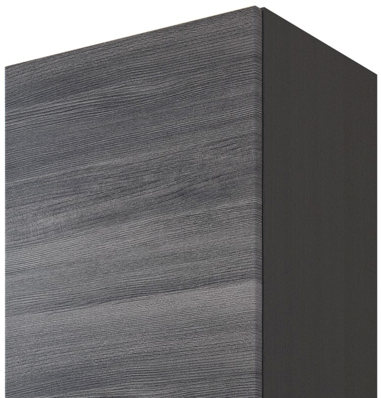 Front: MDF (Mitteldichte Holzfaserplatte) Eiche rauchsilber Holznachbildung