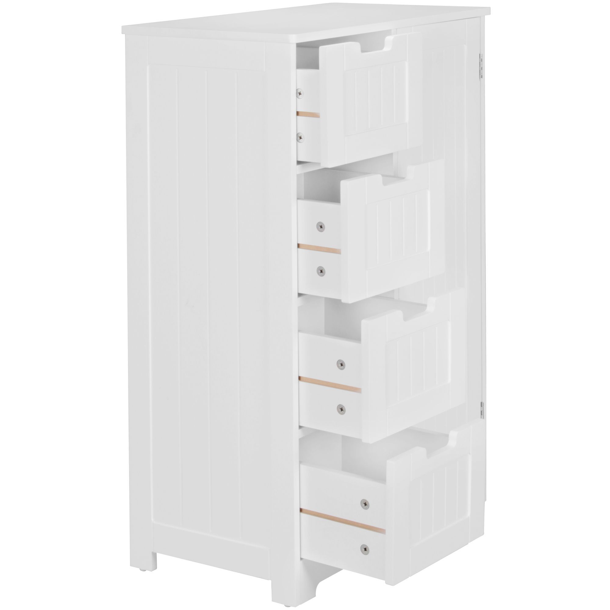 - DESIGN ✔ Weißer Badschrank im Landhausstil // 4 Schubladen und eine Tür // Stilvolle Einkerbungen als Schubladengriffe