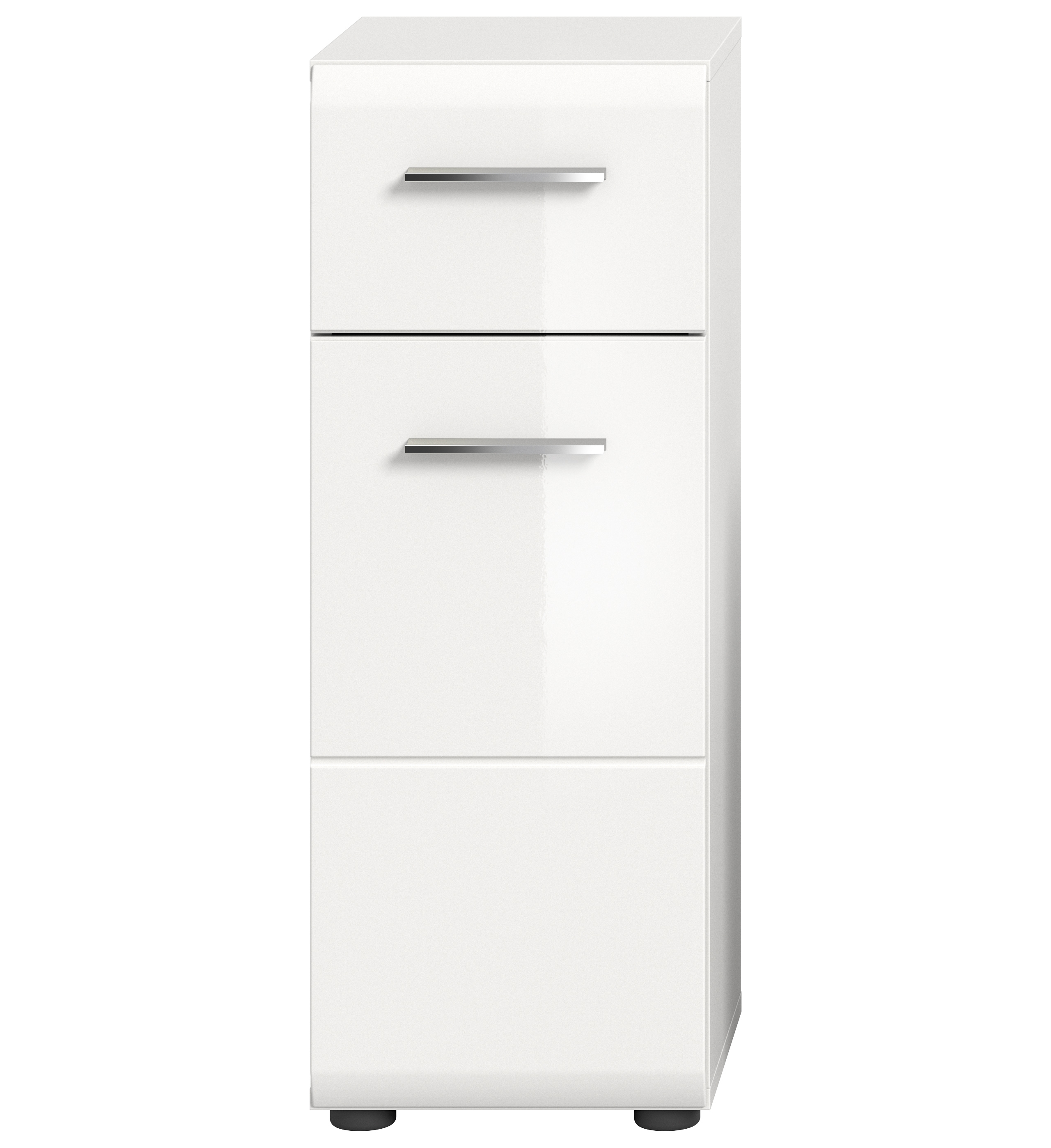 Entdecken Sie unseren platzsparenden Badezimmer Standschrank in strahlendem Weiß, vereint mit hochglänzenden tiefgezogenen Elementen für zeitlose Eleganz. Mit den kompakten Maßen von 30x80x30 cm bietet er nicht nur ausreichend Stauraum für Ihre Badutensilien, sondern setzt auch einen modernen Akzent in Ihrem Badezimmer.